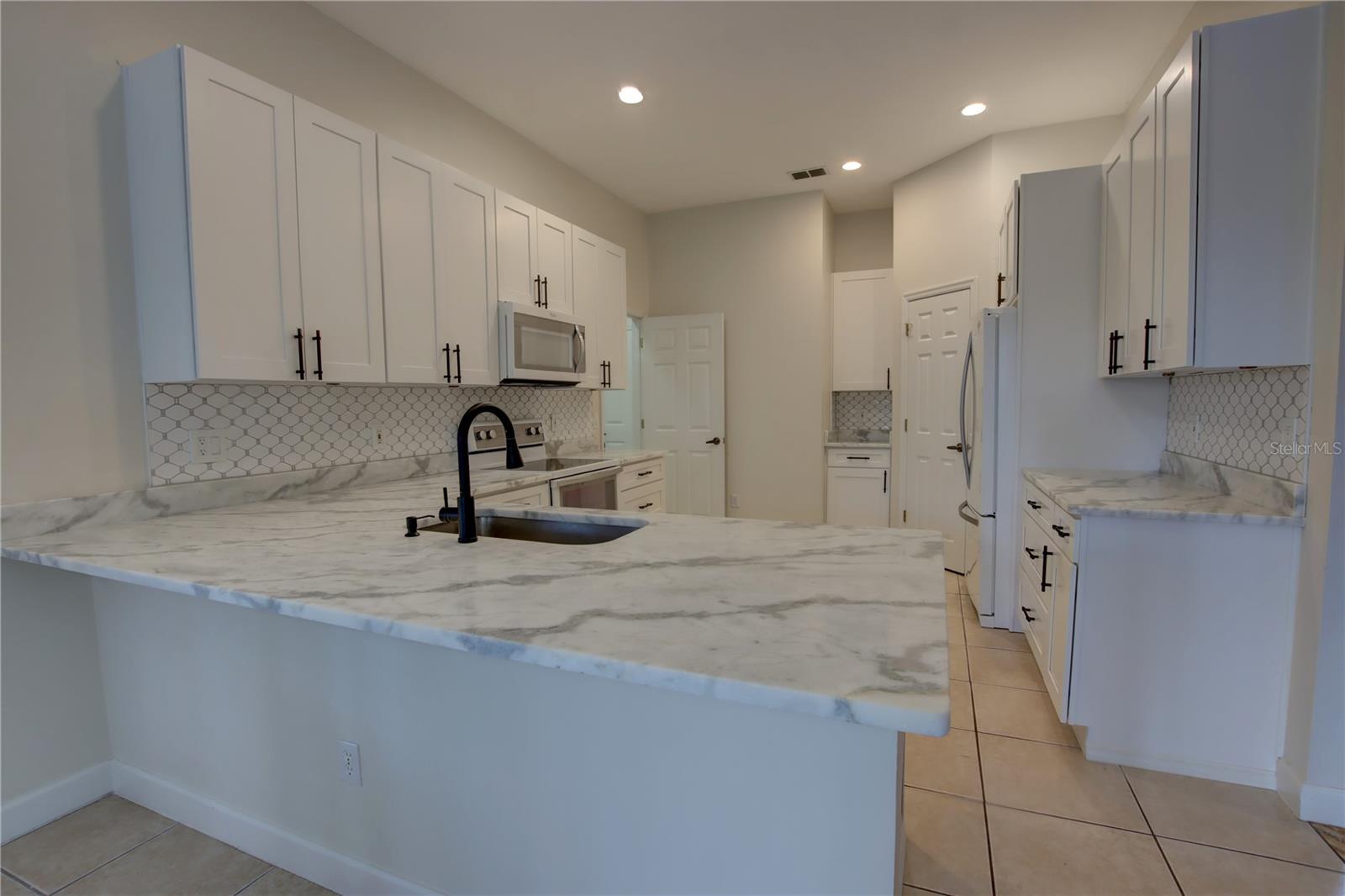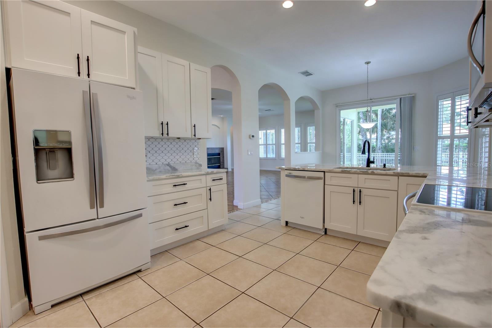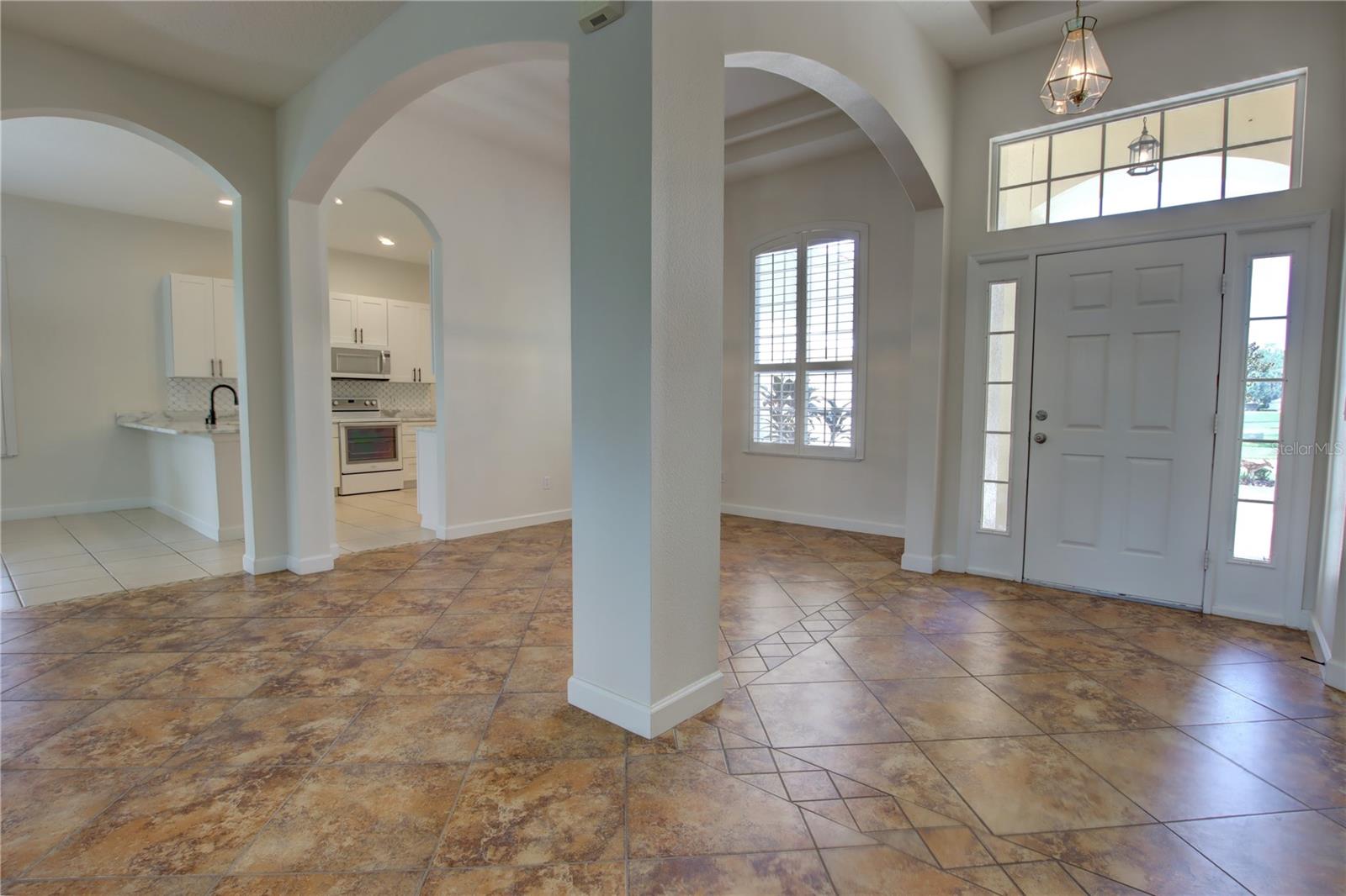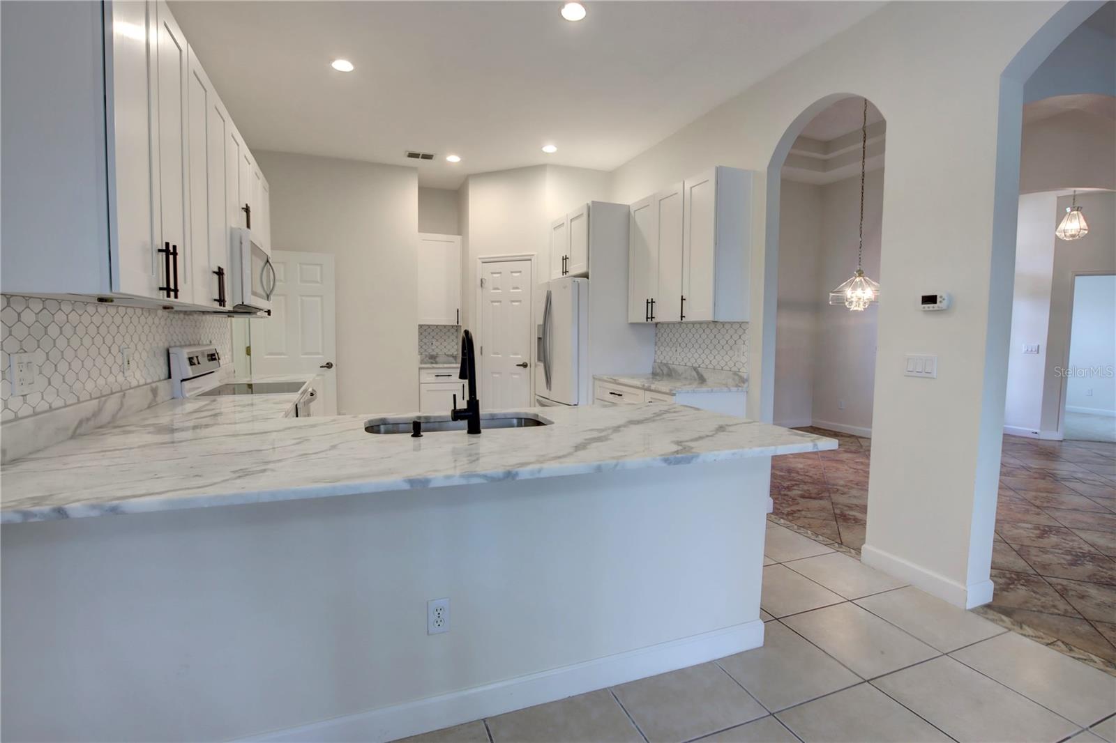 Luxo que vive na Magnolia Plantation-Retiro renovado de 4 quartos em quase meio hectare. Bem-vindo ao seu santuário particular na comunidade de guarda de Magnolia Plantation, onde a natureza e a elegância convergem. Esta casa lindamente atualizada de 4 quartos e três banheiros está situada em quase meio hectare, oferecendo uma rara mistura de privacidade, espaço aberto e conforto moderno. À medida que você chega, uma entrada de automóveis no pátio o convida, preparando o cenário para uma planta baixa de conceito aberto com tetos altos, persianas de plantações e pisos de ladrilhos que fluem nos principais espaços de estar, criando uma atmosfera arejada e sofisticada. A cozinha recém -renovada é um showstopper, com uma grande bar de café da manhã, backsplash moderno, torneira Kohler e bancadas em granito. 42” cabinets and a walk-in pantry offer generous storage, while a charming beverage nook is perfect for your morning coffee or evening wine. The eat-in kitchen flows seamlessly into the main living room, with views extending out to the screened lanai and private backyard. Sliding glass doors offer private access to the backyard, while the updated ensuite bath includes dual vanities, a separate shower, water closet, and a garden tub for indulgent relaxation. Two Os quartos secundários estão escondidos em sua própria asa, compartilhando um banho de hóspedes completo Os recursos incluem: cozinha e banheiros recentemente com acessórios de encanamento atualizados. Miles para o Aeroporto Internacional da Disney, Universal e Orlando (MCO), 40 milhas para as praias primitivas da Flórida. Ferramentas