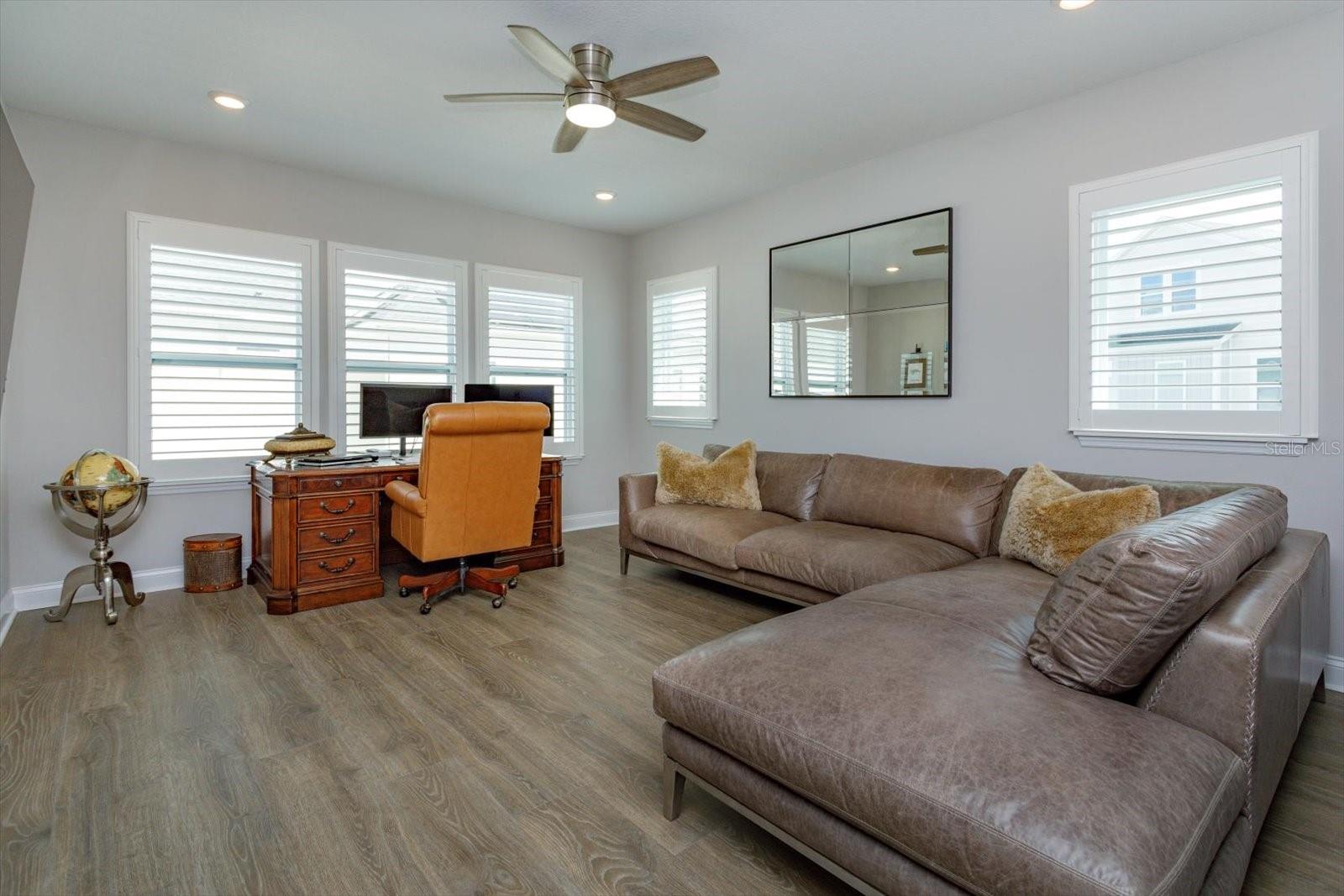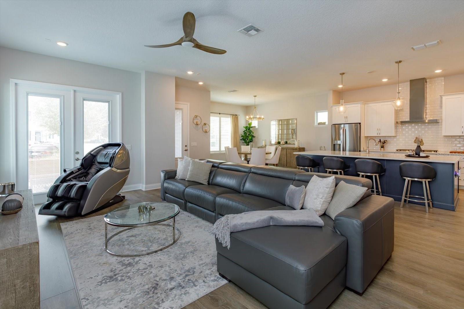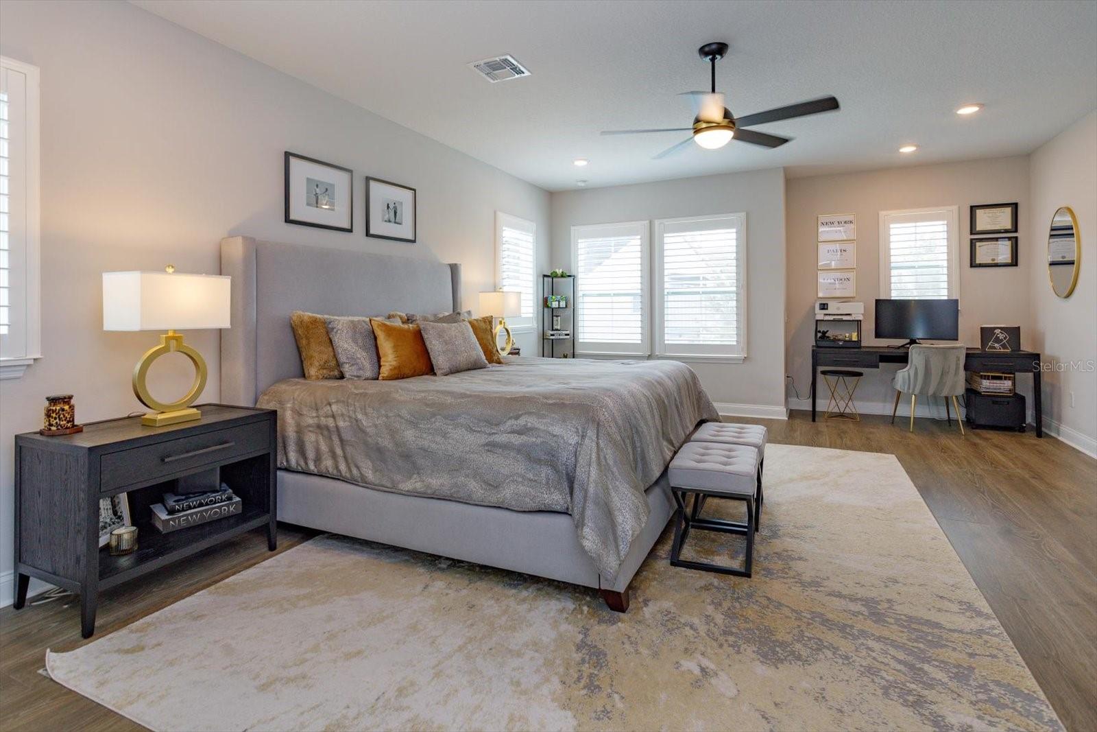 Impressionante casa de 4 quartos e 3 banheiros em um lote de esquina premium de grandes dimensões na altamente desejável comunidade de Griffin Park. A casa recebe você com iluminação exterior elegante, um pátio espaçoso para entretenimento, uma área gramada cercada com cerca invisível e câmeras de segurança externas. No interior, desfrute de luxuosos pisos de vinil, iluminação embutida e venezianas em todas as janelas. A cozinha gourmet de conceito aberto é perfeita para entretenimento, com bancadas de quartzo, fogão a gás, central de bebidas e acabamentos de alta qualidade. Sala de estar ensolarada com grandes janelas e som surround pré-cabeado cria uma atmosfera calorosa e convidativa. O quarto e o banheiro do andar principal oferecem versatilidade para hóspedes ou residências multigeracionais. No andar de cima, um loft bem iluminado oferece espaço para um escritório, sala de jogos ou escritório, enquanto o amplo retiro principal possui uma banheira estilo spa com pias duplas, penteadeira, banheira de imersão, chuveiro sem moldura e um closet personalizado com embutidos e ilha central. Os destaques adicionais incluem lavanderia no andar de cima com armários personalizados, piso de garagem em epóxi e armazenamento suspenso na garagem. As comodidades da comunidade incluem piscina, parque para cães e acesso conveniente a lojas e principais rodovias. Pronto para morar com acabamentos de luxo e design atencioso por toda parte.