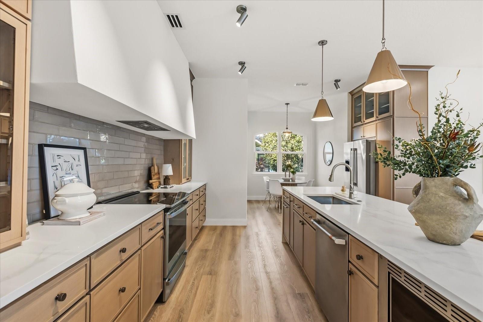 Bem-vindo à experiência de vida sofisticada no 847 Ashbrooke Ct, uma residência de design totalmente reinventada no coração de Heathrow. Recentemente concluída com um designer de interiores, esta casa de quatro quartos, mais escritório e três banheiros oferece o que há de melhor em luxo moderno a um preço abaixo de reformas personalizadas comparáveis. Entre para encontrar tetos altos de 12' a 10', abundância de luz natural proveniente de novas janelas com eficiência energética e espaços de convivência de conceito aberto que irradiam sofisticação arquitetônica. Divirta-se e relaxe em torno da lareira modernizada, da área de jantar formal ou da sala familiar flexível - tudo centrado em uma cozinha gourmet projetada por D'Nook com armários de fechamento suave, eletrodomésticos premium integrados, copa personalizada, iluminação arquitetônica e um exaustor de gesso veneziano exclusivo. A enorme ilha de quartzo em cascata cria um ponto focal impressionante tanto para refeições casuais quanto para reuniões memoráveis. Cada superfície apresenta detalhes de designer - desde bancadas de quartzo e luxuosos pisos de pranchas de vinil até armários personalizados e detalhes em madeira - espelhando acabamentos vistos em propriedades maiores e mais caras. A ampla suíte do proprietário evoca a serenidade de um spa com banheira de imersão independente, closets duplos, luz natural abundante e um retiro de banho personalizado. Saia para quase um terço de um acre, com uma piscina reformada (2025), banheira de piscina dedicada e um exuberante espaço ao ar livre ideal para entretenimento. A garagem para dois carros oferece uma entrada lateral independente e espaço dedicado para um carrinho de golfe – um recurso raro e muito procurado em Heathrow. Grandes atualizações garantem tranquilidade a longo prazo, incluindo um telhado mais novo (2022), sistemas de AC (2025), janelas personalizadas (2025) e aquecedor de água (2025). Aproveite a exclusividade do portão de segurança tripulado 24 horas, acesso a parques comunitários e playgrounds e associações opcionais ao Heathrow Country Club que oferecem golfe, tênis, fitness e comodidades estilo resort. Com acesso fácil à I-4, SR-417 e Wekiva Parkway, esta casa equilibra perfeitamente luxo sereno com conectividade urbana.