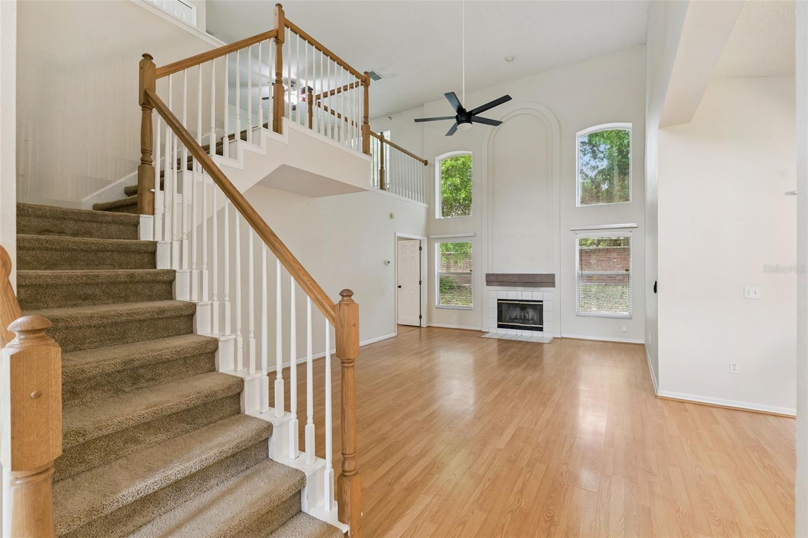 Comunidade Manderley do Lago Mary! Esta casa de dois andares lindamente projetada oferece 3 quartos, 2,5 banheiros, garagem para 2 carros e aproximadamente 1.952 pés quadrados de espaço confortável. No interior, você encontrará um layout espaçoso com uma acolhedora sala de estar com lareira, área para refeições separada, cozinha para refeições e uma cozinha de tamanho generoso completa com fogão, geladeira, micro-ondas e lava-louças. No andar de cima, um loft versátil oferece o espaço perfeito para um escritório doméstico, área de mídia ou espaço adicional. O piso inclui uma mistura de laminado, azulejo e carpete. Os destaques adicionais incluem uma despensa interna com secadora incluída, um pátio com tela ideal para relaxar e um quintal cercado que oferece privacidade e espaço para desfrutar do ar livre. Convenientemente localizado perto de lojas, restaurantes, principais estradas e das principais comodidades do Lago Mary.