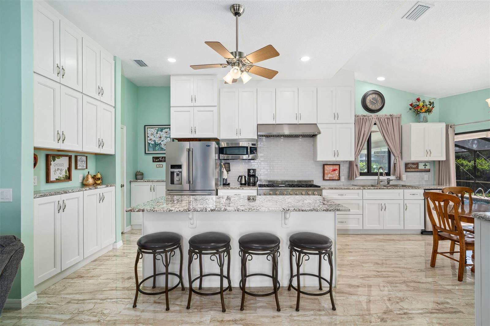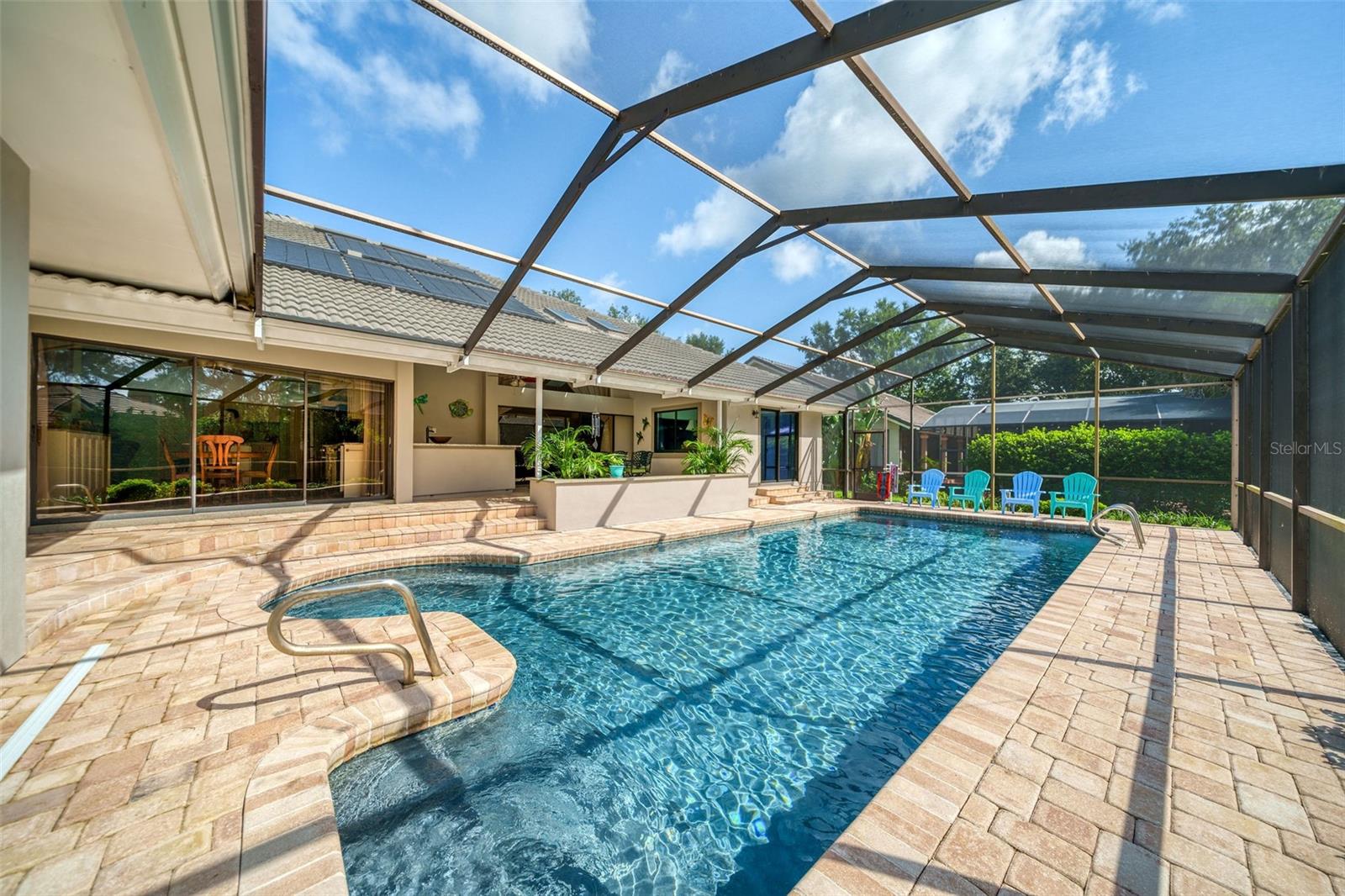 Esta casa lindamente paisagística de quatro quartos, com grande escritório, foi completamente reformada e atualizada (2022), teto recentemente inspecionado. Lavanderia/sala de artesanato possui 8 armários, 9 gavetas e contador de 9 pés. A Gigantic Family Room possui uma nova lareira a gás e 12 pés. Windows. Três armários de linho, dois armários de salão e um armário de passo no mestre de banho oferecem armazenamento abundante, além do Master Closet. Todos os novos fãs de isolamento, dutos CA e tetos ao longo de (2022) mantêm esta casa executiva confortável o ano todo. Todas as novas luzes e painel elétrico proporcionam manutenção futura despreocupada. Grande sala de estar se abre para Lanai a 12 pés. Sliders de bolso. Sala de jantar Facilmente assentos 10. Lanai coberto espaçoso e bar grande e molhado oferecem ao ar livre gracioso entretenando em torno de 15x35 água salgada/piscina aquecida solar 4 pés. Deep - Great para jogos de piscina e mantendo as crianças pequenas seguras. A piscina foi redigida com tela de proteção especial em UV e refinada (2022) com todos os novos equipamentos. A área da piscina apresenta armazenamento fechado para suprimentos e equipamentos de piscina e quintal. Dois dos grandes quartos secundários se abrem na piscina através do controle deslizante do bolso. O quintal grande é lindamente paisagístico e possui um sistema de aspersão totalmente novo (2022). A garagem de dois carros de grandes dimensões possui piso de vinil pesado, 17'ft.fOl de armazenamento e espaço do chão fechado para um espaço para uma bancada de trabalho. Os vendedores estão dispostos a participar do Programa de Compras de Empréstimos para Compradores ... Esta pode ser sua casa e seu negócio!