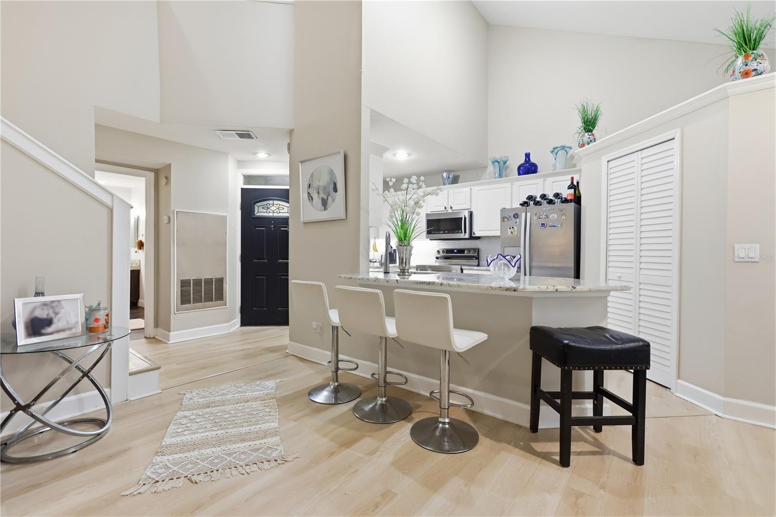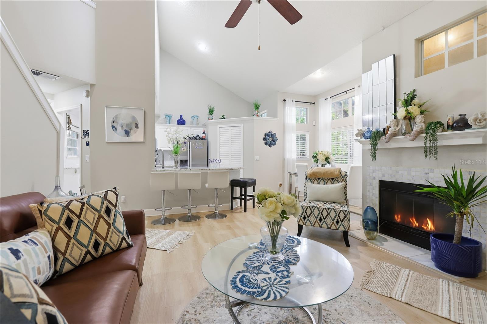 Situado dentro do condomínio fechado do Barclay Place em Heathrow, este condomínio elegantemente atualizado em estilo de moradia geminada combina privacidade tranquila com um layout moderno e descontraído. A área de estar principal se abre sob tetos abobadados dramáticos, fundamentados por uma lareira a lenha e um conveniente bar de café da manhã que conecta a cozinha à ação. Duas verdadeiras suítes primárias resultando em uma vida flexível – uma no primeiro andar. A segunda suíte principal fica no andar de cima, conectada por um banheiro completo ao loft/arrumos. O loft/escritório ou área de arrumos era um TERCEIRO quarto e pode facilmente funcionar como um terceiro quarto com um armário existente. Facilmente convertido em três quartos, se necessário. Acabamentos cuidadosos elevam o dia a dia: bancadas de granito na cozinha e nos banheiros, eletrodomésticos de aço inoxidável e design nítido e coeso por toda parte. Os espaços ao ar livre são um destaque - há um pátio traseiro protegido sem vizinhos atrás para manhãs tranquilas, além de um pátio frontal privado perfeito para socializar ou relaxar após o dia. Os principais itens externos foram manuseados em abril de 2023, incluindo um novo telhado, pintura nova e calhas atualizadas, adicionando confiança ao apelo do meio-fio. LVP adicionado ao longo de novembro de 2025. As vantagens da comunidade ficam exatamente onde você deseja: a piscina e o clube ficam do outro lado da rua, com quadras de tênis a poucos minutos de distância. Para quem procura uma vida elegante e de baixa manutenção em um endereço importante em Heathrow, esta casa oferece. Marque uma exibição hoje mesmo!!!