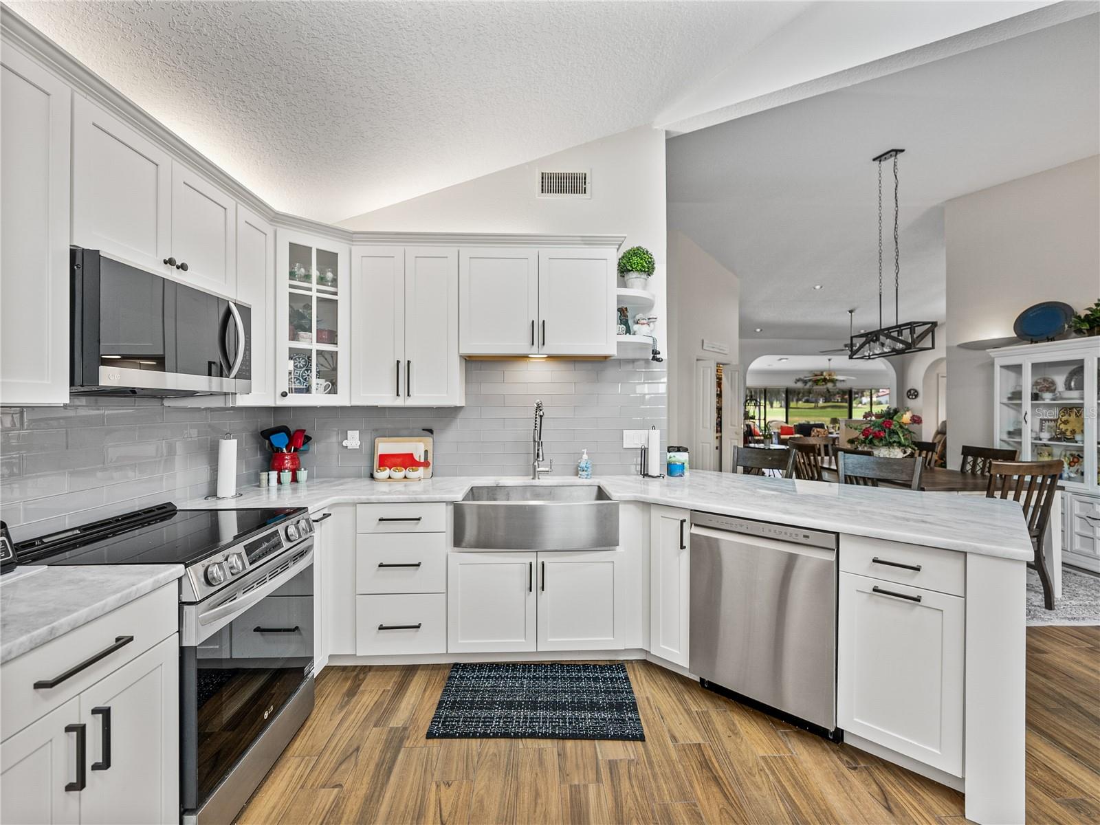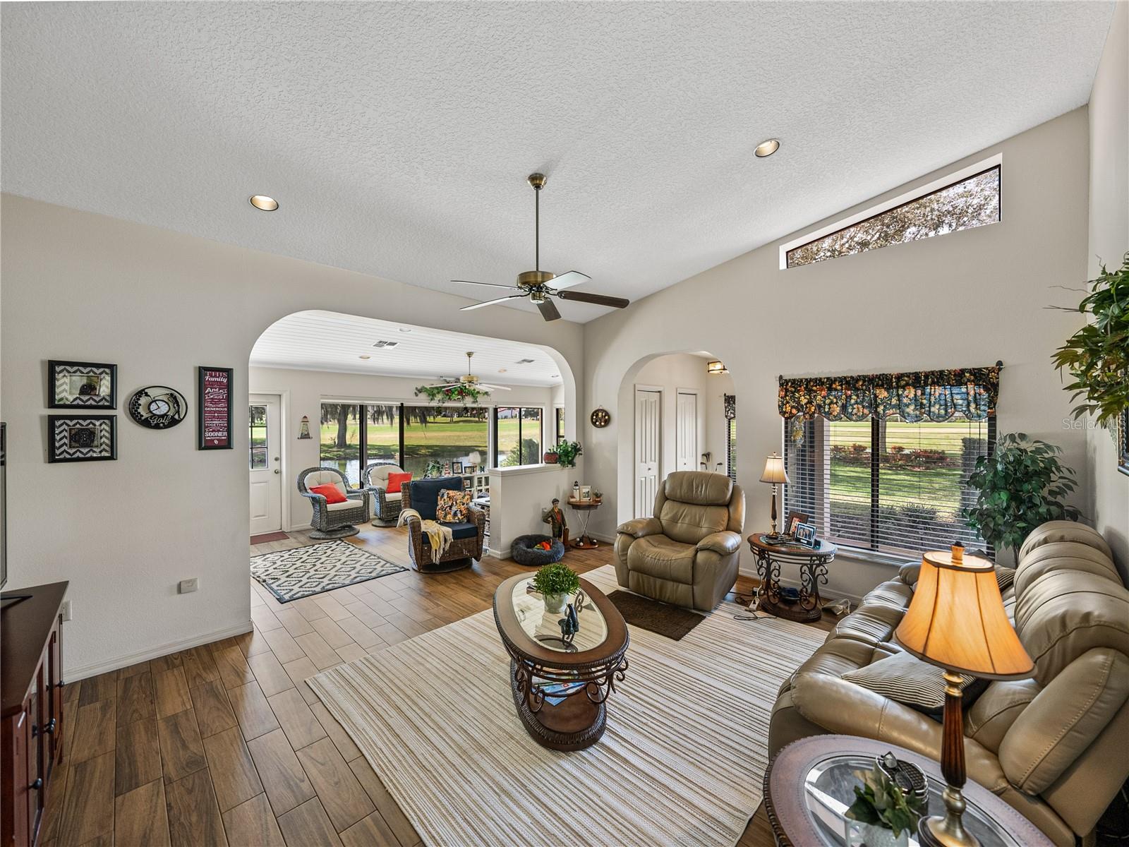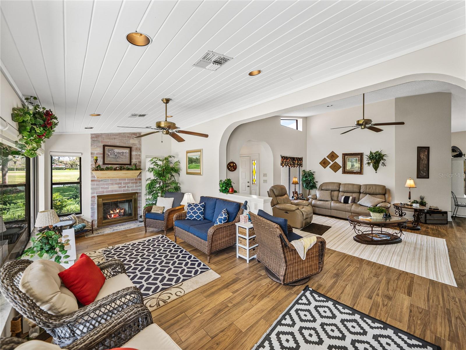 Um favorito para muitos! Você encontrará esse lar de 2.462 pés quadrados oferece um tema fabuloso para a Florida Living, com uma excelente vista do campo de golfe em um lago de fonte. Situado em um ambiente encantador e tranquilo, aproveite a piscina comunitária aquecida e o acesso a quadras de tênis e muito mais. Esta casa brilhante e arejada tem tetos abobadados, um plano de divisão com 3 BD /2 BA, uma sala da Flórida e um átrio encantador. Algumas características excepcionais desta casa incluem 2023 telhado novo, pisos de prancha de ladrilhos encantadores, aberturas em arco, iluminação moderna com muitas luzes de lata e luz natural de clarabóias e janelas grandes. Um bar molhado bem equipado faz entreter um prazer enquanto seus convidados se misturam por uma lareira confortável e vista pitoresca do lago e campo de golfe. A cozinha para comer se abre para o átrio exibida e foi projetada com uma nova cozinha impressionante, bar de café da manhã, balcões de pedra, backsplash elegante e uma despensa, dando ótima função ao espaço; A lavanderia adjacente oferece pia, armários e bancadas de pedra. Uma sala relaxante da Flórida oferece uma lareira aconchegante, vista fabulosa da lagoa e acesso ao lanai coberto. O quarto mestre en suíte tem um espaçoso closet e seu banheiro tem uma vaidade de pia dupla, chuveiro e armário de linho. Um quarto de hóspedes atraente se abre para o átrio e compartilha o segundo banheiro com o terceiro quarto com vista para a água. Esta bela casa do pátio oferece muitos prazeres e conveniências ... Aproveite a piscina e cabana, lojas, escolas e restaurantes próximos. Faça sua ligação para agendar uma visualização, ela será vendida rapidamente! Venha para um tour nesta linda casa, em um ambiente tranquilo da Flórida Central, com fácil acesso a Tampa, Orlando e Miami.