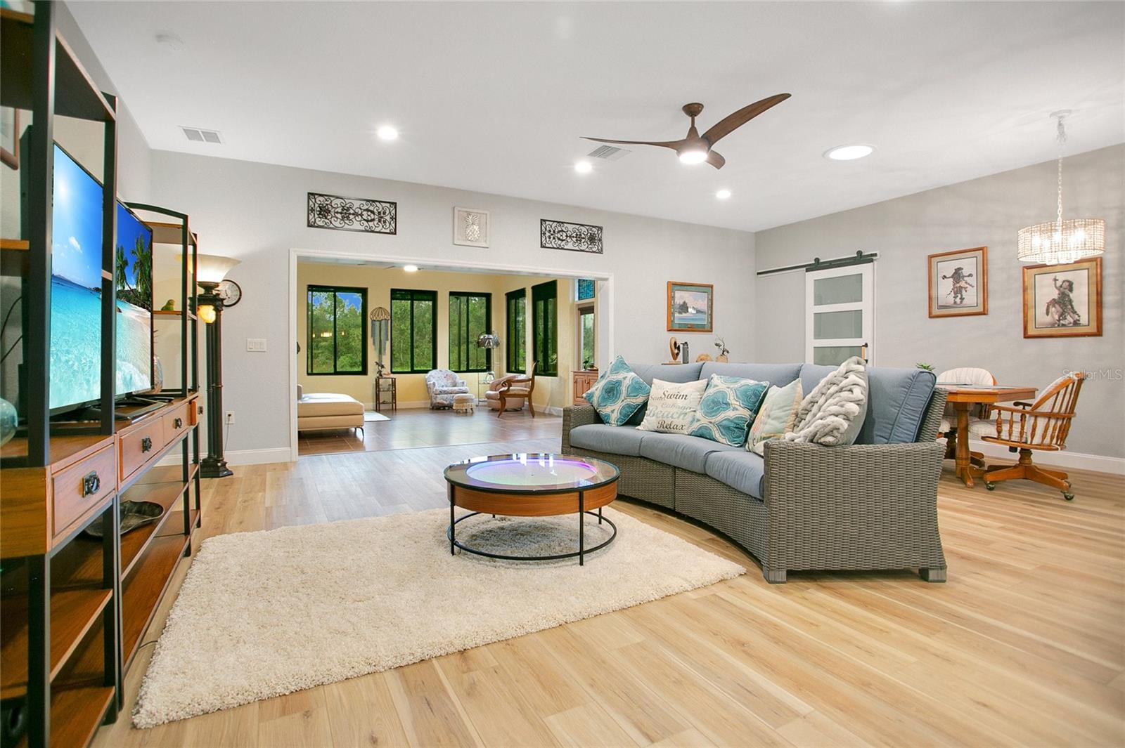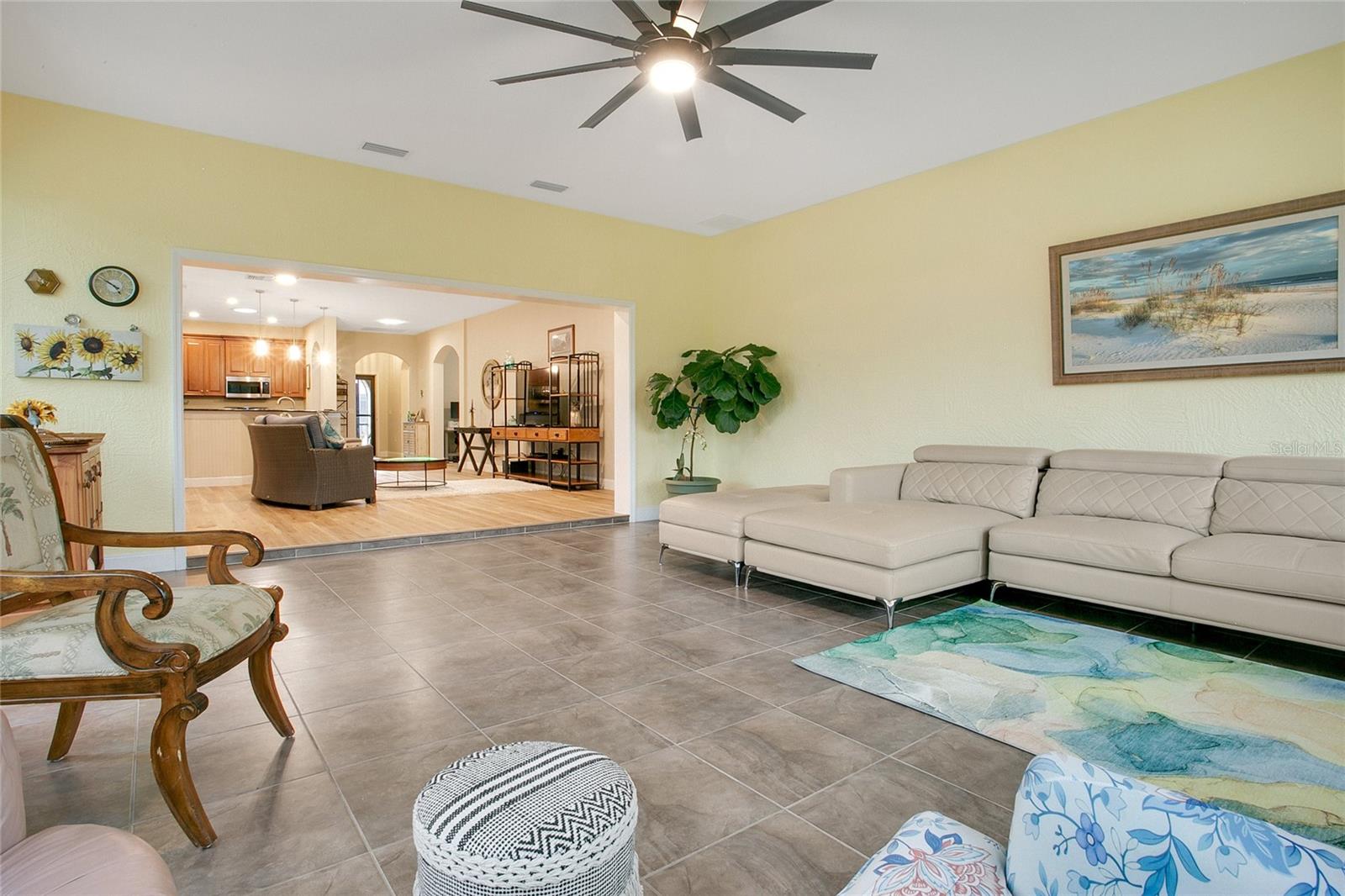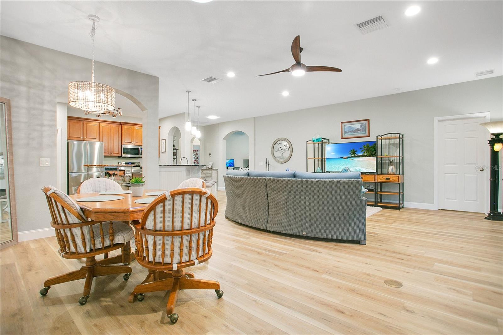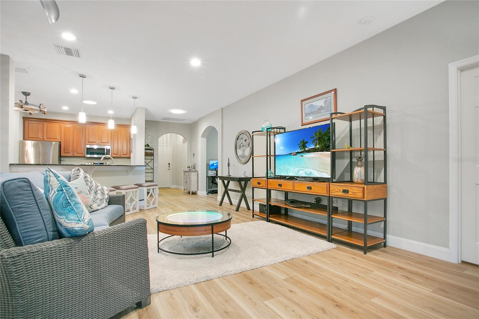 * Empréstimo de VA assumido de baixo interesse. O piso plano aberto apresenta pisos LVP de grãos de madeira (2022), portas arqueadas elegantes e luz natural abundante. The kitchen boasts 42” wood cabinets with crown molding, stone countertops, a new walk-in pantry (2024), new stainless-steel appliances, a built-in wine rack, and a custom coffee bar. The primary suite includes a sitting/office area, pond views, an en-suite bath with double vanities, Corian countertops, a tiled shower with seating, and custom wainscoting. A flex room offers versatility as a third bedroom, Escritório ou espaço para refeições. As atualizações incluem: novo telhado (2023), janelas com classificação de tempestades (2023), aquecedor de água novo (2024), tubos solares para luz natural (2022) Comunidades comunitárias: dois campos de golfe de 18 buracos | Jóia de boliche | Clubhouse com restaurante e entretenimento Dock de barco e armazenamento de RV | Piscina aquecida, sauna e fitness center | Tênis, bocha e mais Não perca esta rara oportunidade - escaste sua exibição hoje!