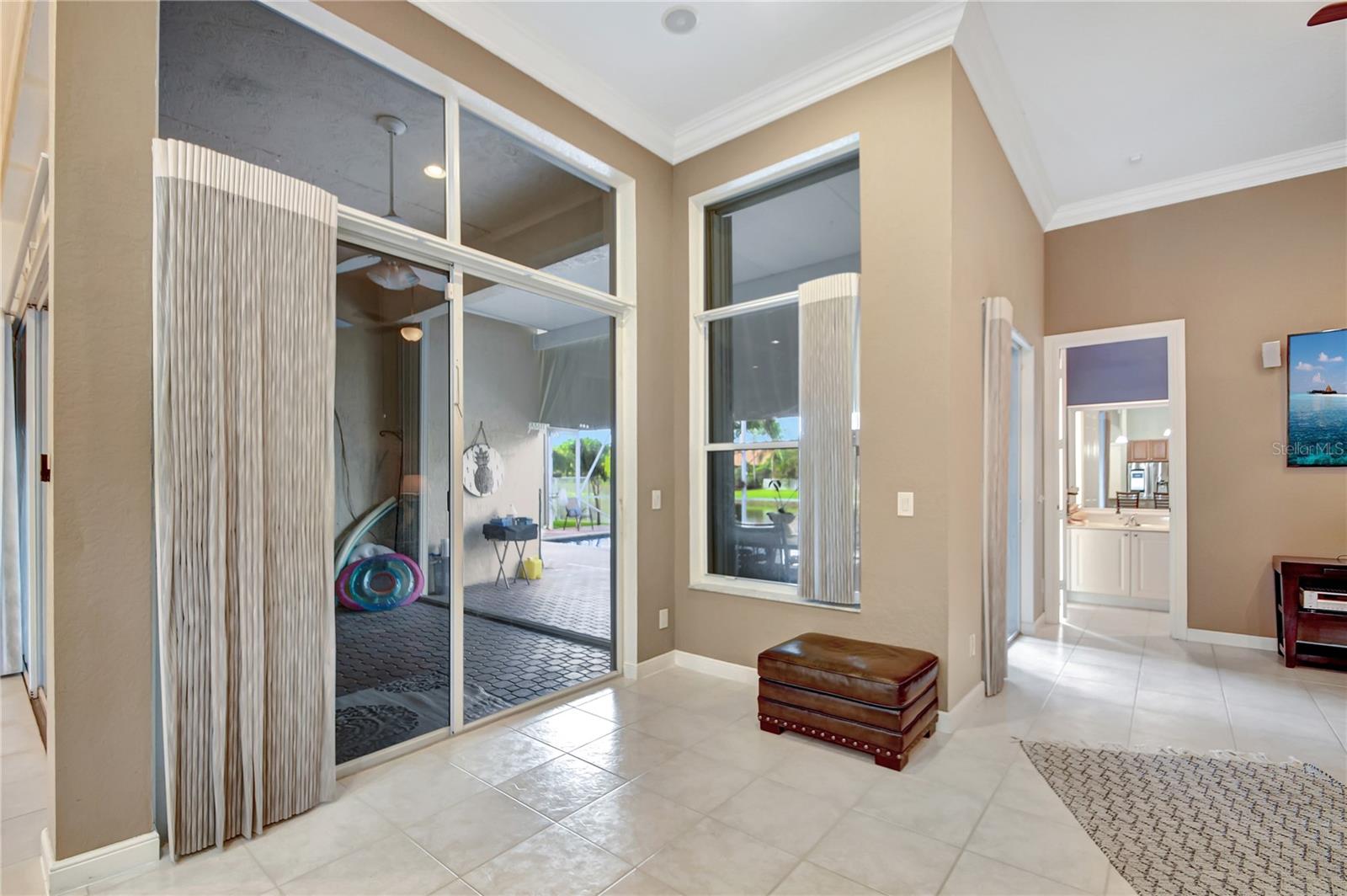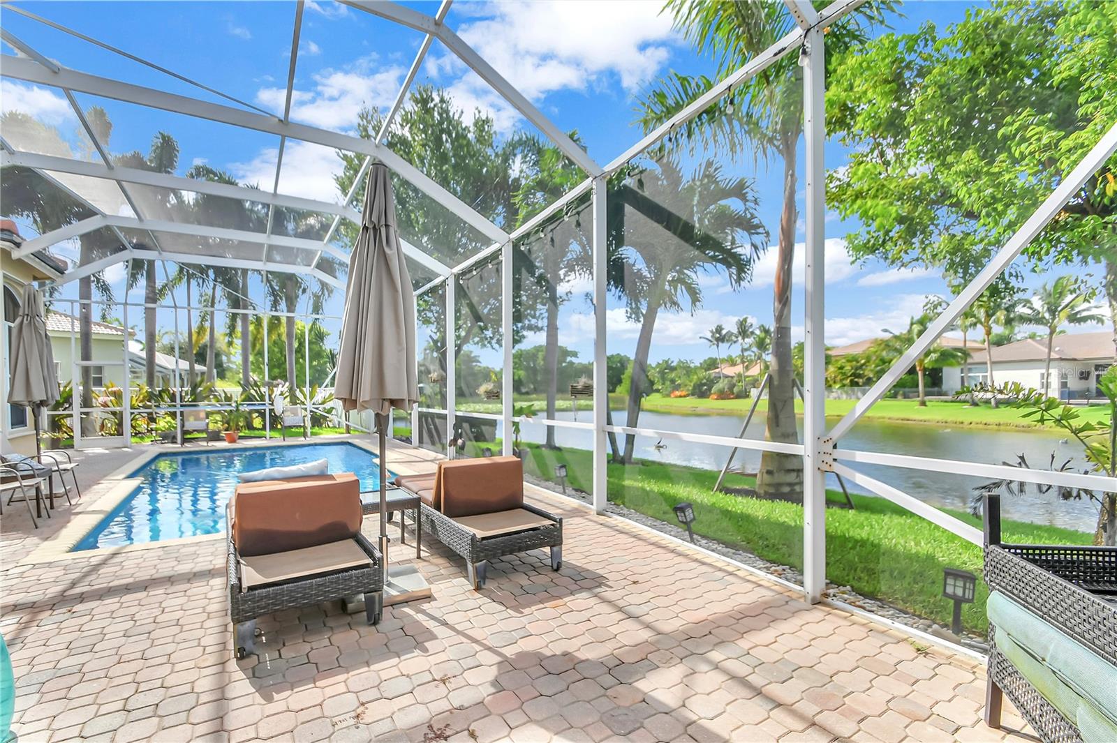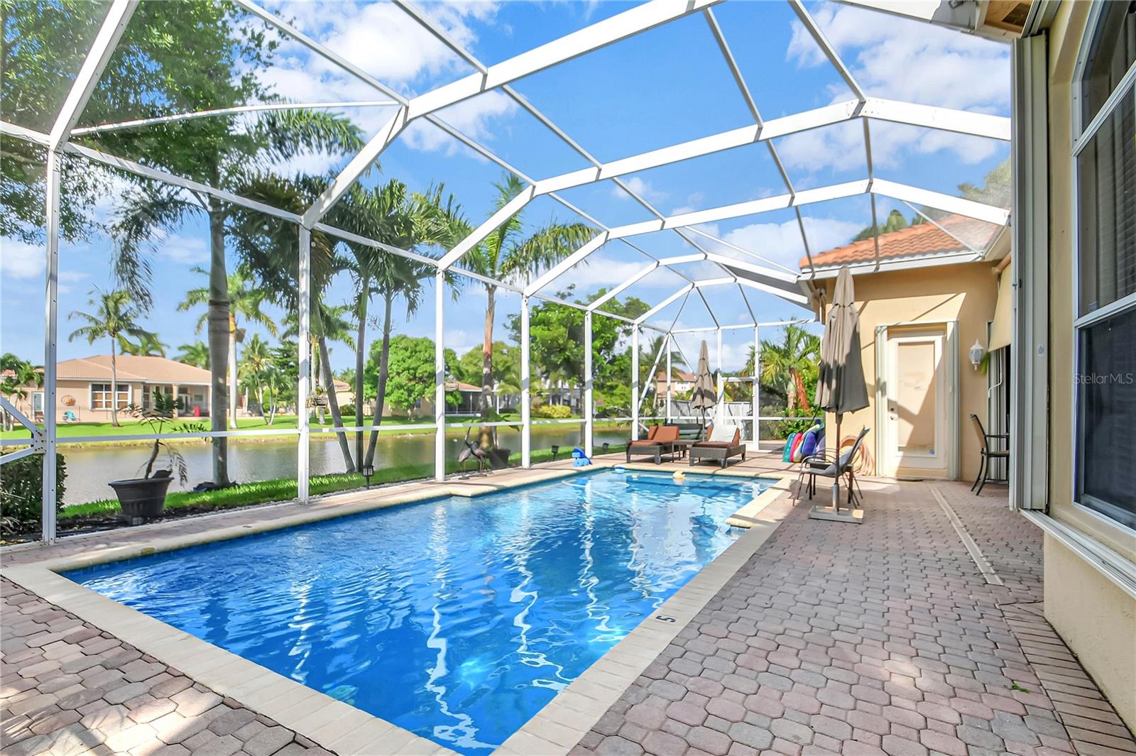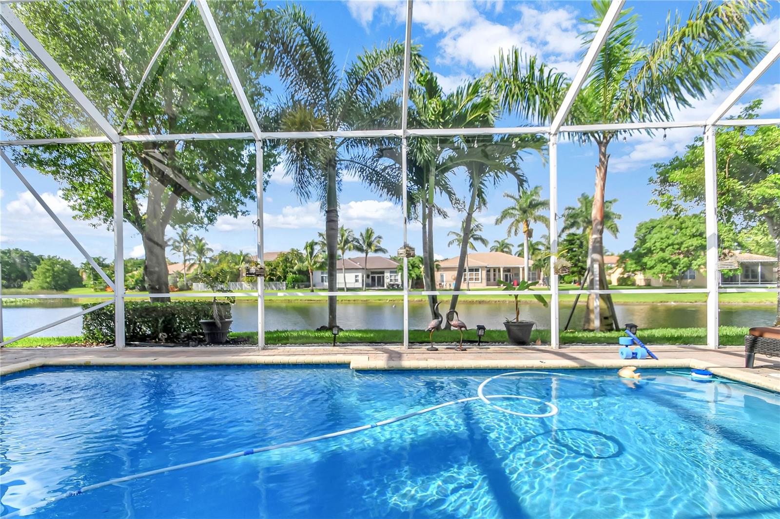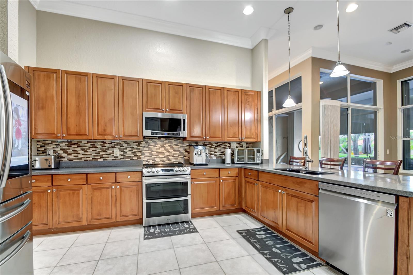 Bem-vindo a esta deslumbrante casa localizada em Estates of Journey's End. Situada num lago sereno, esta residência oferece vistas deslumbrantes e um ambiente tranquilo. A piscina recém-reformada com aquecedor elétrico e toldo personalizado, com janela meteorológica, permite a diversão durante todo o ano. Ao entrar pela entrada com tela, você notará imediatamente os interiores recém-pintados e a textura desmontada, adicionando um toque de elegância à casa. Os tetos de 3,6 metros e as sancas requintadas aumentam a sensação de espaço e luxo por toda parte. A casa possui piso de cerâmica por toda parte, garantindo uma aparência limpa e moderna. A espaçosa área de estar é adornada com persianas Hunter Douglas, que vêm com garantia vitalícia, agregando estilo e funcionalidade. O quarto principal é um verdadeiro retiro com janela saliente, armário personalizado e toque luxuoso. Os quartos de hóspedes possuem armários personalizados, garantindo muito espaço de armazenamento para todas as suas necessidades. A cozinha é o sonho de um chef, com armários de madeira, eletrodomésticos de aço inoxidável, fogão de cerâmica com forno duplo (incluindo forno convencional) e micro-ondas/forno de convecção. As bancadas Corian oferecem amplo espaço de trabalho e a geladeira é equipada com uma televisão embutida para maior comodidade e entretenimento. As características práticas desta casa incluem um novo aquecedor de água, um novo sistema de ar condicionado e um aquecedor de água a gás de tamanho comercial. A lavanderia está convenientemente localizada no interior e vem com pia e secadora a gás. Além disso, a propriedade possui uma plataforma para gerador (gerador não incluído). O exterior é igualmente impressionante, com um telhado novo, venezianas sanfonadas e uma garagem estendida com pavimentação para acomodar até quatro carros. A garagem para dois carros oferece armazenamento adicional e conveniência. A propriedade também beneficia de um sistema de irrigação que utiliza a água do lago, proporcionando uma solução ecológica para o cuidado do gramado. Como parte desta comunidade exclusiva, os residentes desfrutam de uma variedade de comodidades incluídas nas taxas HOA de US$ 400,00 por mês. Essas comodidades incluem TV a cabo básica via Hotwire, internet de alta velocidade, acesso ao clube recentemente reformado, piscina comunitária, estacionamento infantil, academia, portão de entrada e patrulhas do xerife 8 horas por dia em turnos variados. Com seu lindo design, acabamentos de alto padrão e localização privilegiada, esta casa é perfeita para quem busca luxo e conforto em um ambiente à beira do lago.