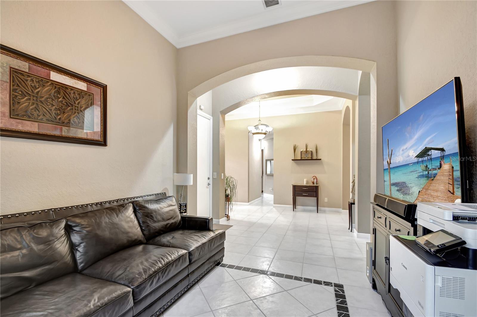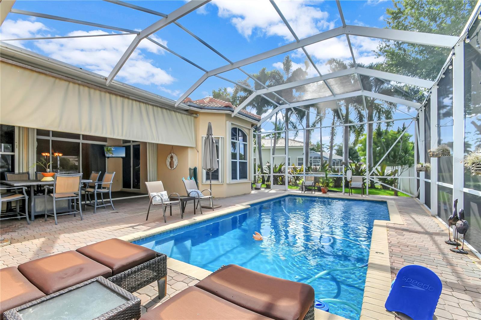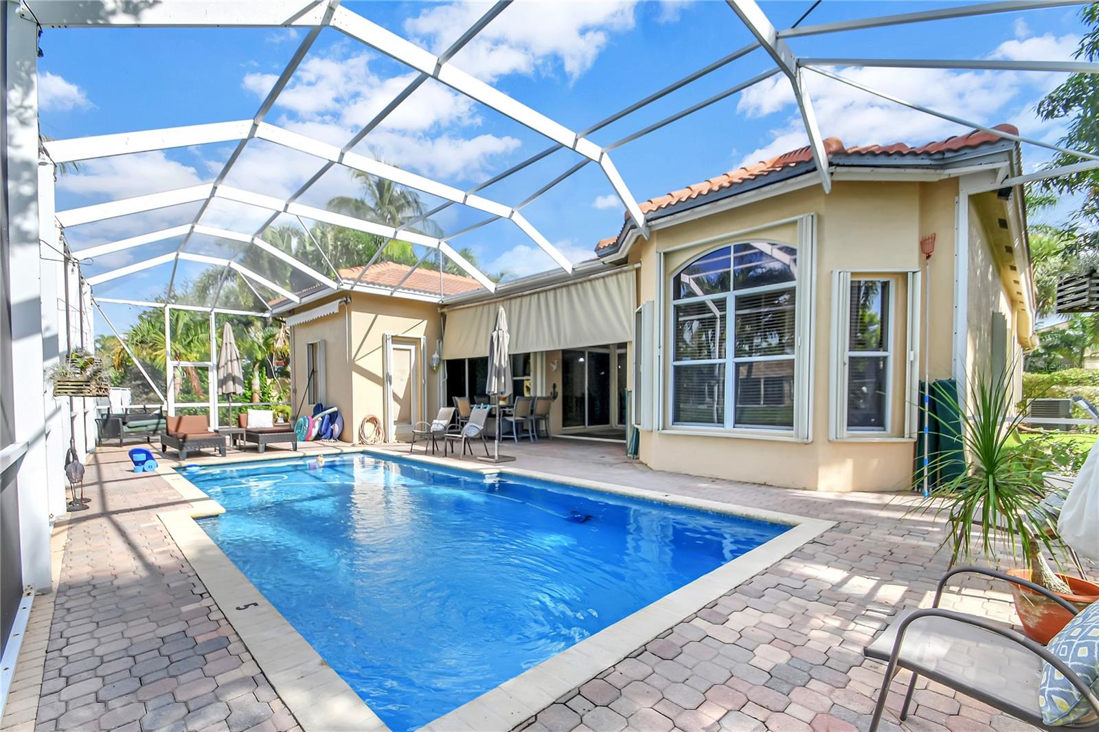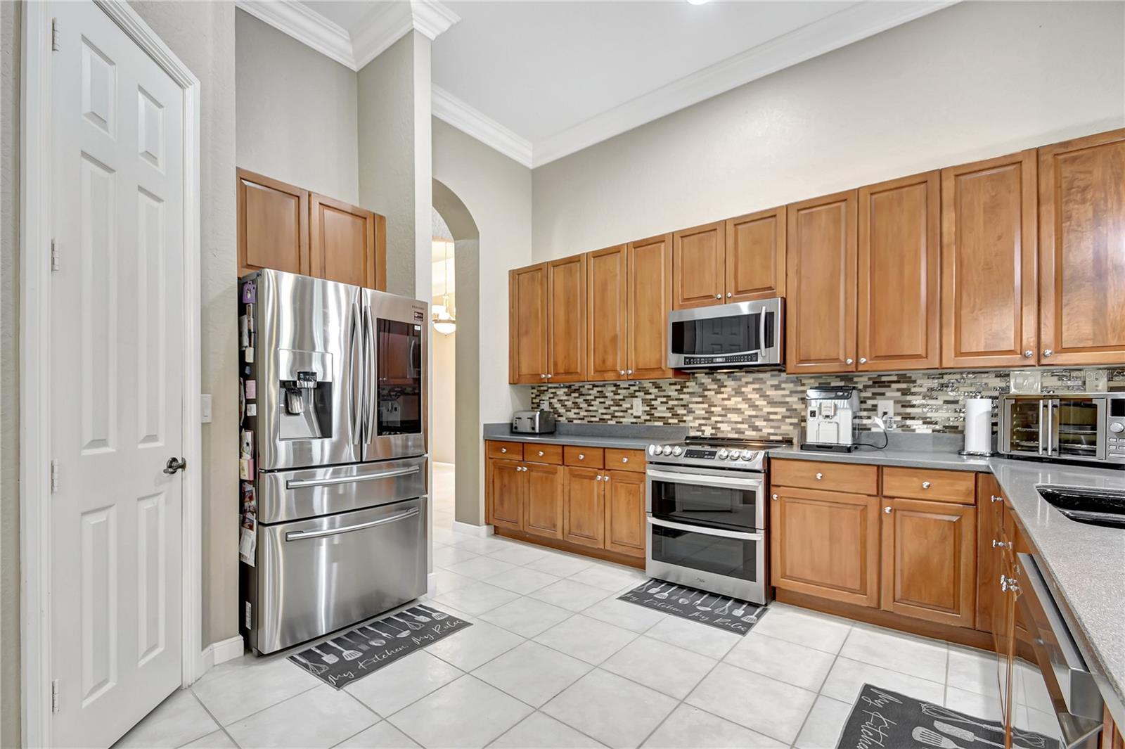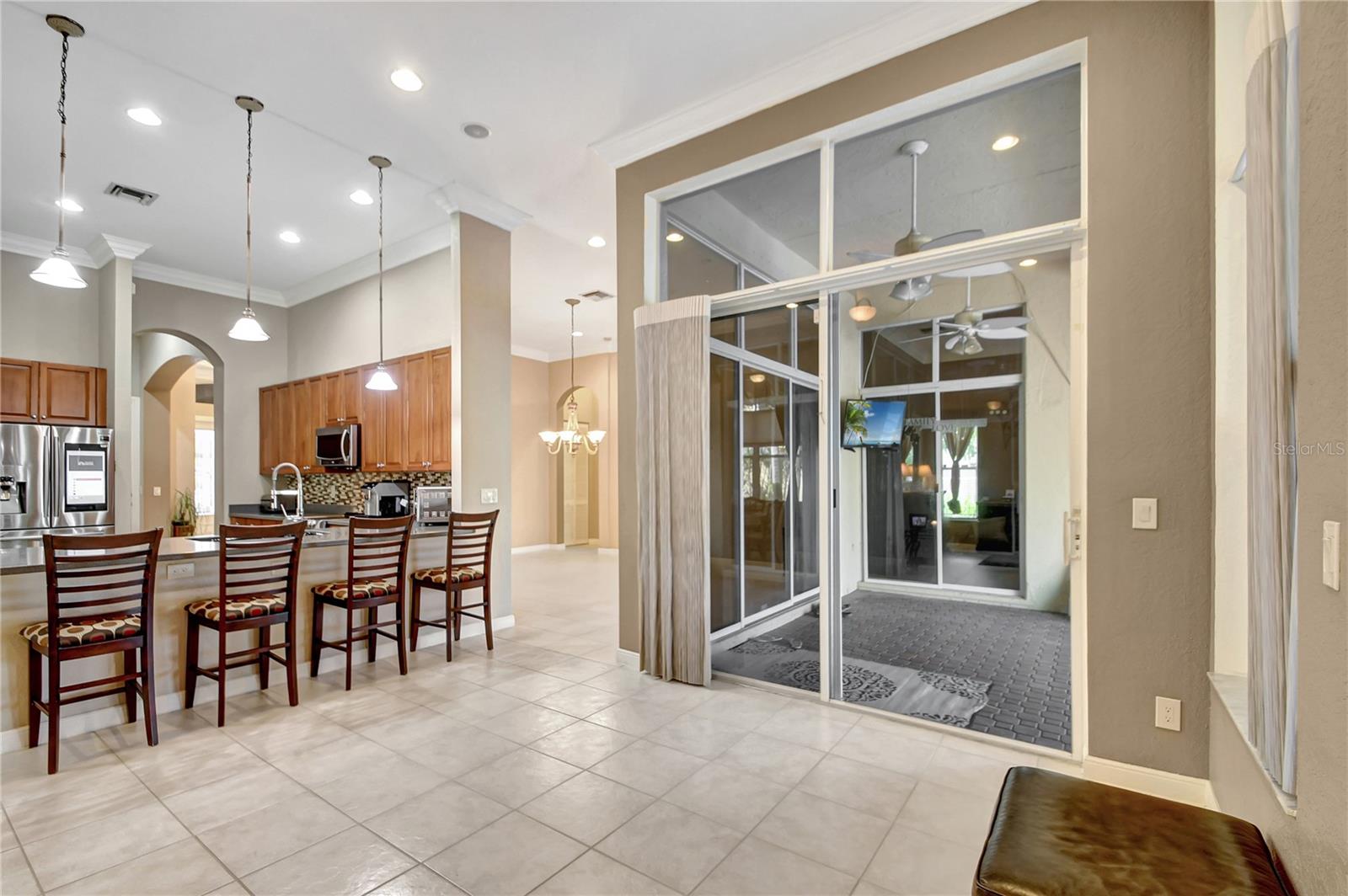 Bem-vindo a esta deslumbrante casa localizada em Estates of Journey's End. Situada num lago sereno, esta residência oferece vistas deslumbrantes e um ambiente tranquilo. A piscina recém-reformada com aquecedor elétrico e toldo personalizado, com janela meteorológica, permite a diversão durante todo o ano. Ao entrar pela entrada com tela, você notará imediatamente os interiores recém-pintados e a textura desmontada, adicionando um toque de elegância à casa. Os tetos de 3,6 metros e as sancas requintadas aumentam a sensação de espaço e luxo por toda parte. A casa possui piso de cerâmica por toda parte, garantindo uma aparência limpa e moderna. A espaçosa área de estar é adornada com persianas Hunter Douglas, que vêm com garantia vitalícia, agregando estilo e funcionalidade. O quarto principal é um verdadeiro retiro com janela saliente, armário personalizado e toque luxuoso. Os quartos de hóspedes possuem armários personalizados, garantindo muito espaço de armazenamento para todas as suas necessidades. A cozinha é o sonho de um chef, com armários de madeira, eletrodomésticos de aço inoxidável, fogão de cerâmica com forno duplo (incluindo forno convencional) e micro-ondas/forno de convecção. As bancadas Corian oferecem amplo espaço de trabalho e a geladeira é equipada com uma televisão embutida para maior comodidade e entretenimento. As características práticas desta casa incluem um novo aquecedor de água, um novo sistema de ar condicionado e um aquecedor de água a gás de tamanho comercial. A lavanderia está convenientemente localizada no interior e vem com pia e secadora a gás. Além disso, a propriedade possui uma plataforma para gerador (gerador não incluído). O exterior é igualmente impressionante, com um telhado novo, venezianas sanfonadas e uma garagem estendida com pavimentação para acomodar até quatro carros. A garagem para dois carros oferece armazenamento adicional e conveniência. A propriedade também beneficia de um sistema de irrigação que utiliza a água do lago, proporcionando uma solução ecológica para o cuidado do gramado. Como parte desta comunidade exclusiva, os residentes desfrutam de uma variedade de comodidades incluídas nas taxas HOA de US$ 400,00 por mês. Essas comodidades incluem TV a cabo básica via Hotwire, internet de alta velocidade, acesso ao clube recentemente reformado, piscina comunitária, estacionamento infantil, academia, portão de entrada e patrulhas do xerife 8 horas por dia em turnos variados. Com seu lindo design, acabamentos de alto padrão e localização privilegiada, esta casa é perfeita para quem busca luxo e conforto em um ambiente à beira do lago.