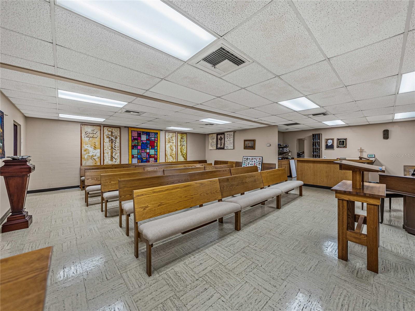 Faith Lutheran é uma instalação religiosa estabelecida que atua em Lakeland há várias décadas. As estruturas foram construídas no início dos anos 80, e seu design incomum e icônico, em parte, deve -se a Frank Lloyd Wright Protege Nils M. Schweizer, cujo nome está listado nos projetos originais. A parte principal da propriedade apresenta um maravilhoso e exclusivo prédio do santuário, com um teto abobadado e com vigas e espaço para aprox. 250. Um belo órgão de tubos se destaca neste espaço único único. A segunda parte dos principais edifícios são os escritórios tradicionais, uma capela, uma sala de irmandade, que abriga uma reunião de bingo de quase capacidade toda segunda -feira e vários outros espaços flexíveis, incluindo escritórios privados e salas de aula. A cozinha comercial supera o espaço do salão da irmandade e abriga um capô comercial e refrigeradores comerciais. Finalmente, uma estrutura de 1.000 SF completa a propriedade. Este edifício pode ser considerado espaço flexível e atualmente é usado como um brechó. Os motivos da propriedade são muito bem conservados, com áreas de caminhada e assentos. Os espaços de estacionamento estão em todos os lados da propriedade.