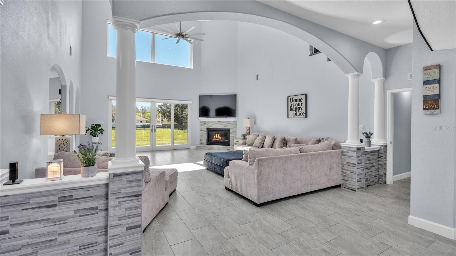 Propriedade de luxo na Flórida Central com empréstimo assumivel VA a uma taxa de 2,5, zoneada para cavalos e aprovada para um negócio doméstico. Situada em quase dois hectares em North Lakeland, esta propriedade oferece privacidade em uma viagem tranquila com apenas sete casas na comunidade - proporcionando um ambiente rural tranquilo e ao mesmo tempo convenientemente localizada perto de comodidades locais com acesso a Tampa ou Orlando. Passe pelas novas portas francesas de 2,5 metros até um grande hall de entrada com tetos altos de 7,5 metros, onde você será recebido por uma convidativa área de estar - perfeita para entretenimento - com uma impressionante lareira a gás para noites aconchegantes. A cozinha remodelada do chef apresenta bancadas de quartzo, armários de madeira maciça, eletrodomésticos de aço inoxidável, fogão a gás e exaustor personalizado. A suíte principal está convenientemente localizada no primeiro andar e inclui closets espaçosos. Outro quarto separado está localizado no primeiro andar e é perfeito como suíte para sogros. No andar de cima, você encontrará cinco quartos adicionais, um banheiro Jack-and-Jill e um amplo closet. Os recursos de desempenho incluem janelas e portas Anderson Categoria 5, um telhado mais novo (2021), três unidades de A/C (2022), isolamento de sótão atualizado (2023) e um novo aquecedor de água a gás propano de 74 galões. Atualizações adicionais incluem persianas eletrônicas, câmeras de segurança Ring e uma rampa dupla de lavanderia conectando-se à lavanderia do primeiro andar. Os destaques externos incluem uma conexão para trailer de 50 A, um galpão com eletricidade e uma garagem grande. A vida ao ar livre é reforçada por duas varandas cobertas, um pátio lateral e um sistema de irrigação bem alimentado. O melhor de tudo é que não há HOA ou CDD.
