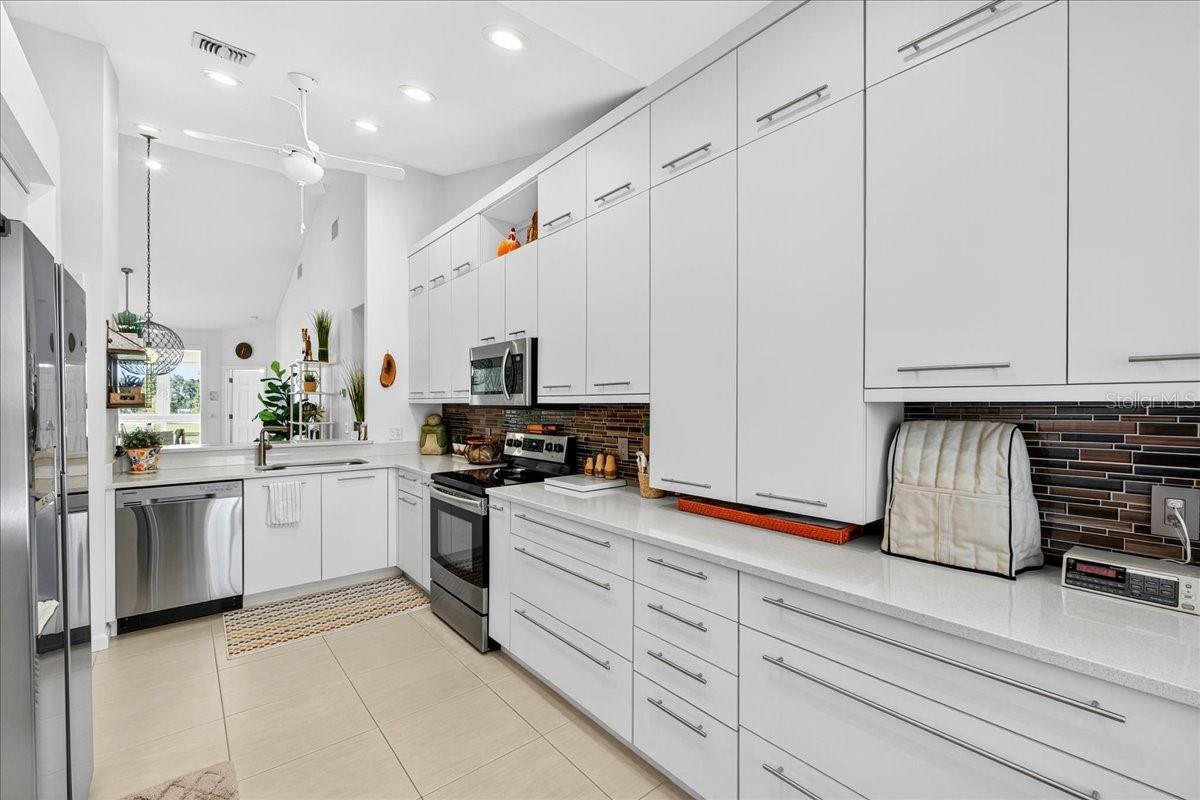 Condomínio 2BR/2BA lindamente atualizado com vista para o fairway no Grasslands Golf & Country Club. Esta unidade no segundo andar oferece 1.448 pés quadrados de área útil e possui uma antiga varanda que foi totalmente fechada e perfeitamente integrada ao interior da casa, completa com aquecimento e ar condicionado com janelas de impacto para conforto durante todo o ano, perfeita para desfrutar de vistas serenas do campo de golfe. O banheiro principal inclui armários Keene Design, enquanto a cozinha e o segundo banheiro foram reformados com armários Valcourt, todos com bancadas de quartzo branco. O armário da lavanderia foi reformado para acomodar uma lavadora e uma secadora. As atualizações adicionais incluem um termóstato programável, canalizações atualizadas nas casas de banho e na cozinha, AC substituído em 2016 com manutenção regular, esquentador de 2014 e um telhado novo em 2016. Renovada com acabamentos de qualidade bem acima dos padrões da área, esta casa oferece um valor excepcional. A uma curta caminhada da sede do clube e das instalações de prática (é necessário ser membro) e convenientemente localizado perto de Lakeside Village, das lojas de Oakbridge, dos parques e da Polk Parkway. Pronto para morar em um dos condomínios fechados de golfe mais desejáveis de Lakeland. Um 4 pontos satisfatório foi alcançado.