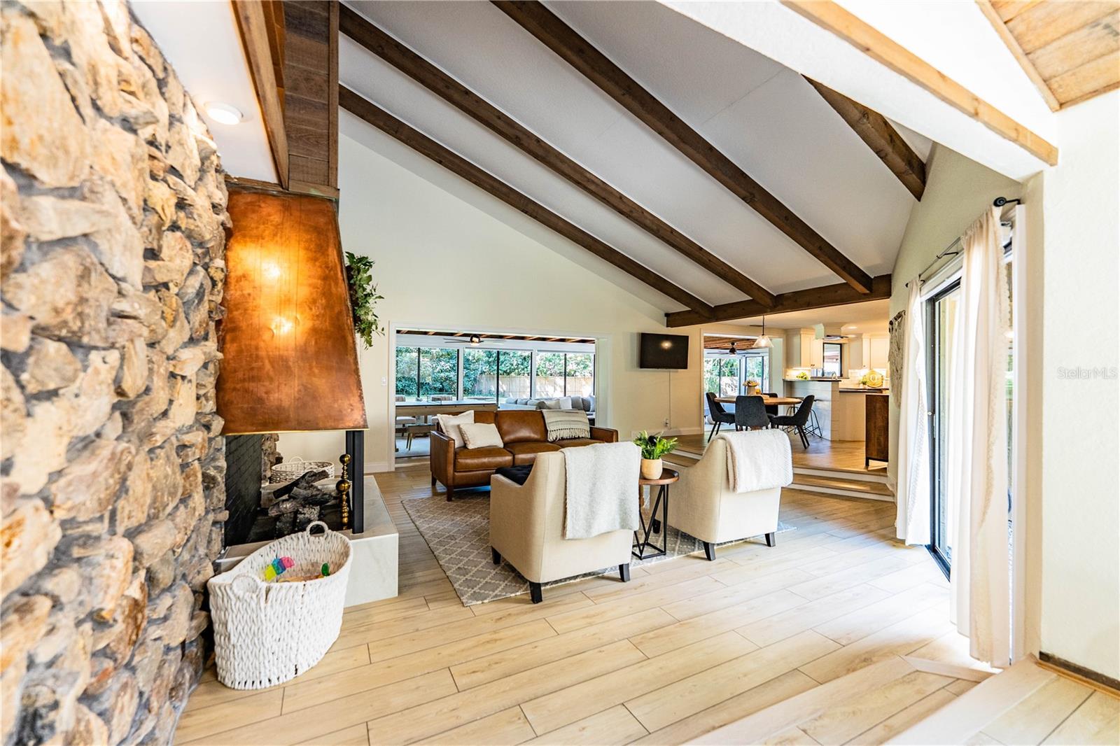 REDUÇÃO DE PREÇO!!! Bem-vindo a esta deslumbrante casa moderna de meados do século, com 3 quartos e 2,5 banheiros, no prestigiado bairro de Christina, em South Lakeland, uma das comunidades mais procuradas da região, conhecida por suas escolas de primeira linha e ambiente tranquilo. Cada detalhe desta casa foi cuidadosamente atualizado nos últimos três anos, combinando design atemporal com conveniência moderna. A convidativa planta aberta apresenta tetos abobadados, uma grande lareira de pedra e amplas janelas traseiras com vista para o sereno quintal arborizado. A cozinha gourmet é uma peça de vitrine - completa com bancadas em granito, cooktop e forno duplo, além de armários personalizados projetados para funcionalidade e estilo. A espaçosa suíte principal no primeiro andar dispõe de um pátio privativo fechado com pavimentação, pia dupla e box amplo. No andar de cima, dois quartos adicionais e um banheiro completo oferecem muito espaço para família ou convidados. Outros destaques incluem um home office dedicado, ampla lavanderia com pia e um impressionante quarto Florida com ar-condicionado de 42' x 12' - perfeito para relaxar enquanto desfruta de vistas tranquilas do exuberante quintal. As melhorias recentes nos últimos três anos incluem um novo telhado, unidades duplas de AC, aquecedor de água sem tanque, eletrodomésticos atualizados, sistema de calhas, pintura interna e externa fresca, motor de portão privativo com controles remotos e novo piso por toda parte. A propriedade também dispõe de estacionamento para trailers, garagem para dois carros, paisagismo maduro e fica em um terreno de meio acre totalmente cercado no final de um beco sem saída tranquilo para maior privacidade. Localizada na bela Lakeland, Flórida, esta casa oferece o melhor dos dois mundos: uma vida suburbana tranquila com fácil acesso às conveniências da cidade. Lakeland está idealmente posicionada entre Tampa e Orlando, oferecendo charmosas lojas locais, restaurantes, parques, campos de golfe e mais de 30 lagos pitorescos. Com escolas altamente avaliadas, um centro vibrante e acesso conveniente à Polk Parkway e à I-4, esta joia de South Lakeland realmente oferece um equilíbrio perfeito entre estilo, conforto e localização.