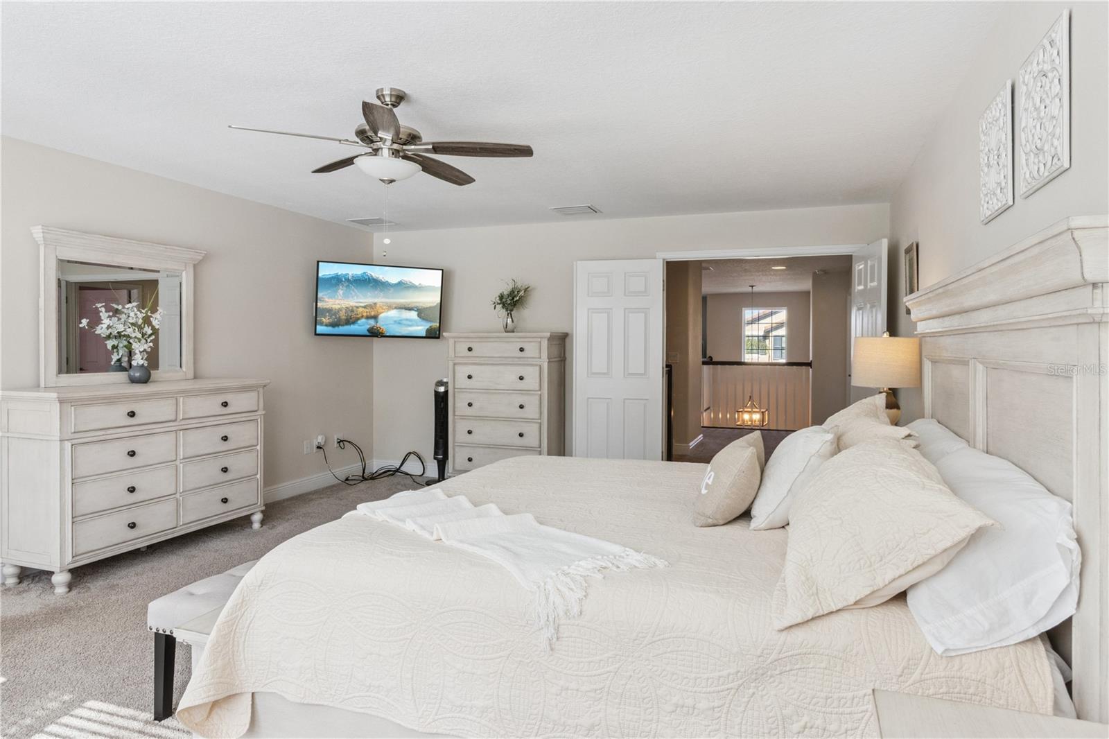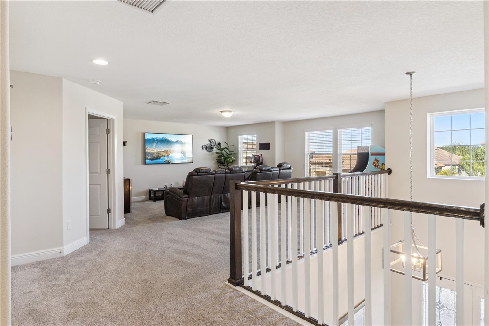 Requintada propriedade M/I Homes localizada no cobiçado condomínio fechado de TerraLargo! Esta elegante casa de loft/sala de mídia com 5 quartos e 4 banheiros oferece duas luxuosas suítes principais - uma no andar de cima e outra no andar de baixo - ideais para uma vida multigeracional refinada. Um impressionante hall de entrada de 18 pés com vista para a varanda e uma porta de entrada de vidro atualizada de 8 pés proporcionam uma excelente primeira impressão. Cada quarto possui closet, com bancadas de granito nas cozinhas e banheiros. A cozinha do chef é lindamente decorada com armários moldados em forma de coroa, exaustor, forno de convecção, área de mordomo dedicada e uma ampla despensa. Ladrilhos com aparência de madeira fluem pelas principais áreas de estar, complementados por iluminação de design, escadas de madeira maciça e elegantes grades de madeira. O retiro principal no andar de baixo oferece banheiro privativo inspirado em spa com box amplo de azulejos, pia dupla, penteadeira de maquiagem e closet grande. A suíte principal no andar de cima impressiona com portas de entrada duplas e um banheiro privativo tipo spa que oferece banheira de imersão, chuveiro separado, penteadeira e amplo closet. As comodidades de estilo resort no TerraLargo incluem entrada com portão duplo, clubhouse, piscina de entrada zero com raias e spa, academia, pickleball, quadras de tênis e basquete, playground e gazebo de pesca. Idealmente localizado perto da I-4, com acesso conveniente a lojas, restaurantes e atrações de classe mundial. Além disso, esta casa vem com garantia estrutural de 15 anos, sendo 8 anos restantes. (expira em 29/01/34). IMPERDÍVEL HOJE!