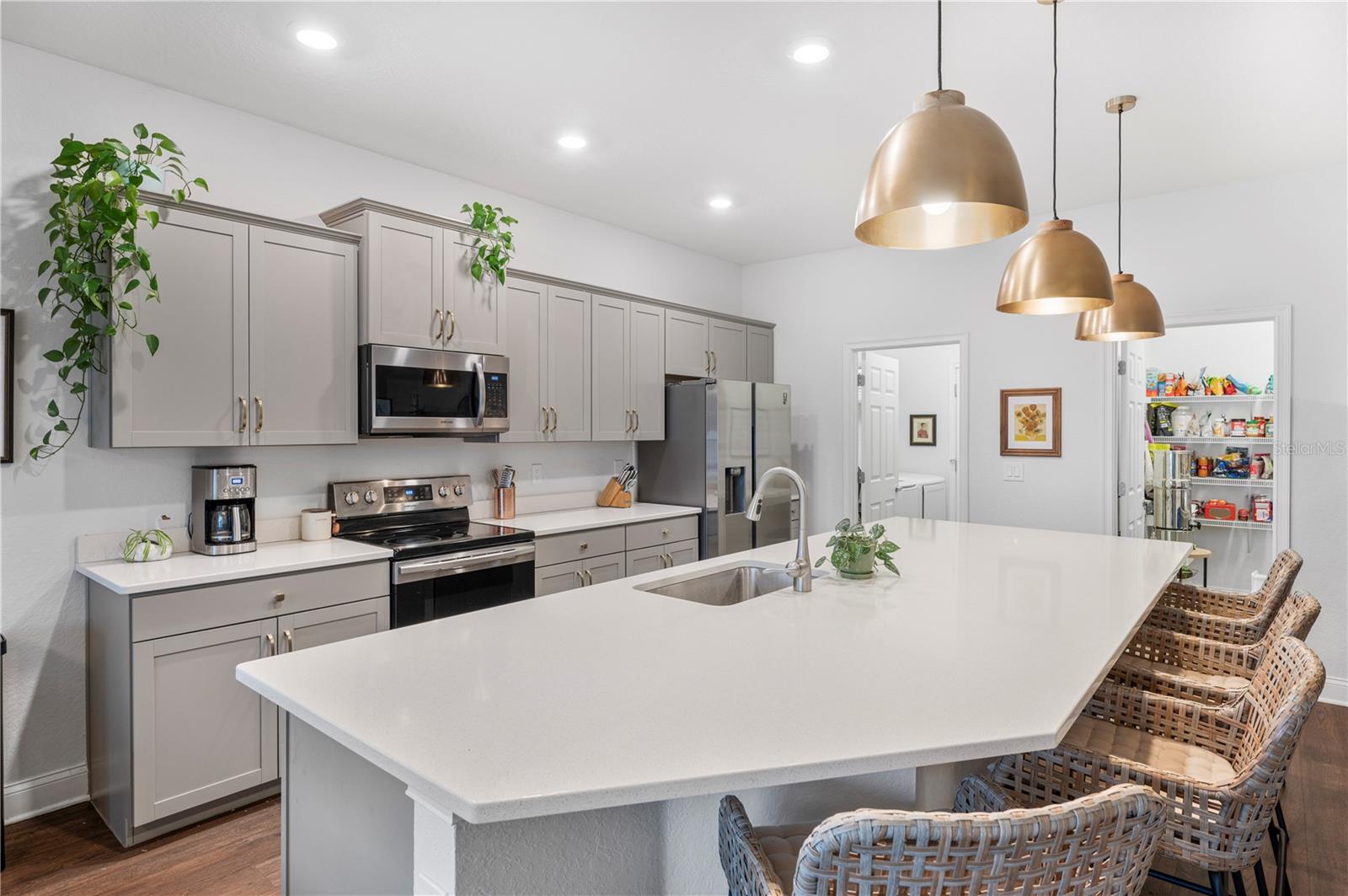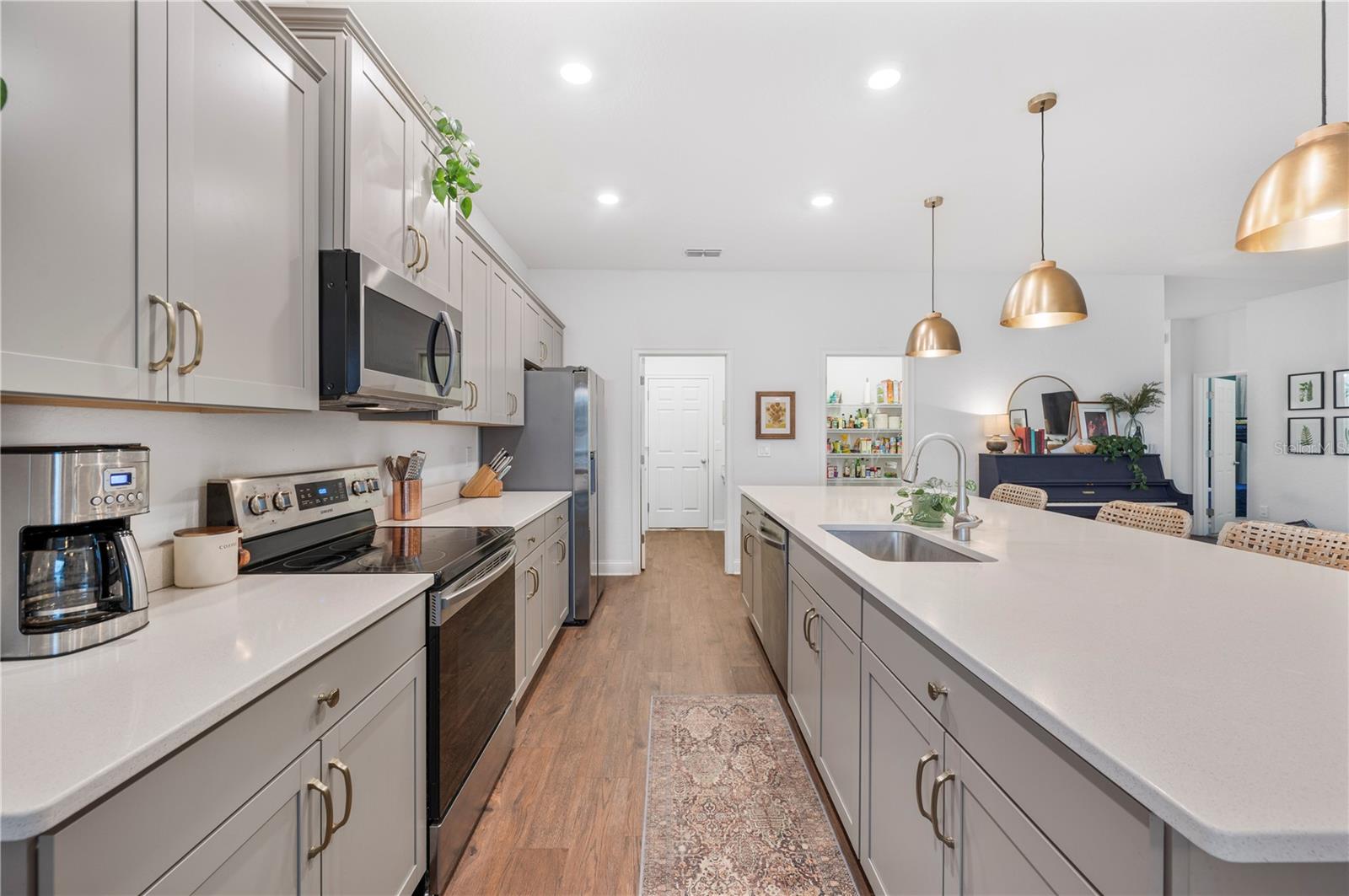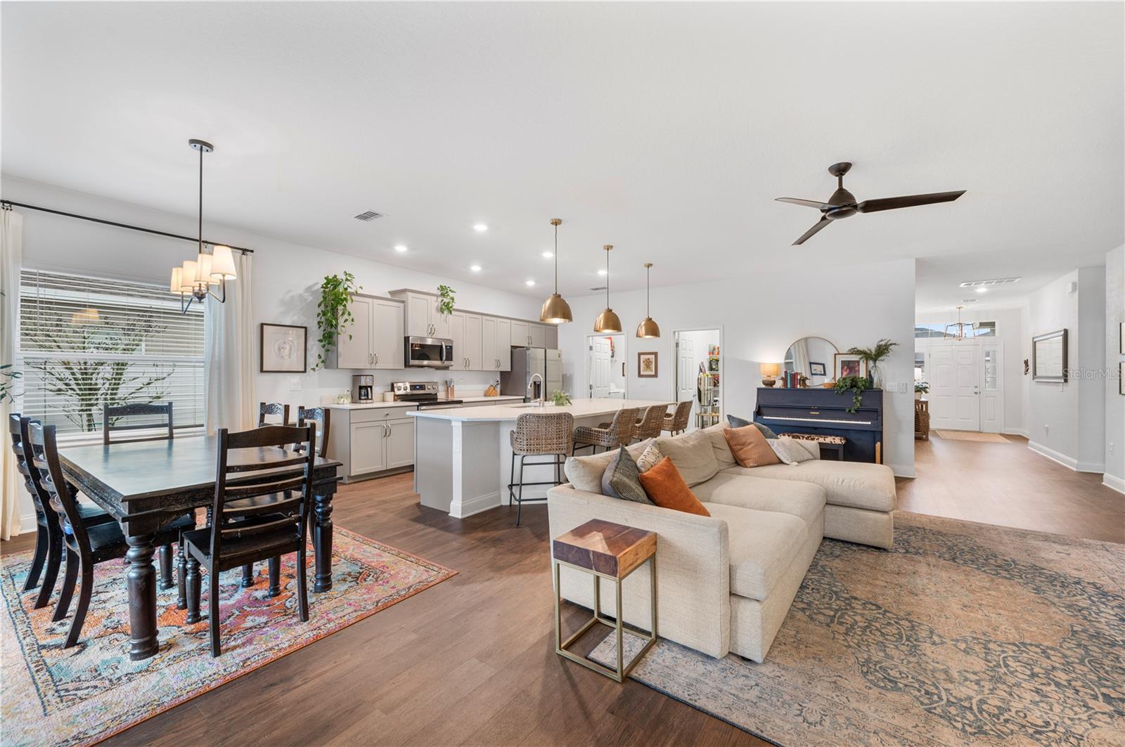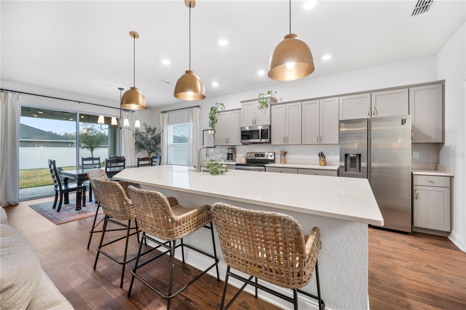 Bem-vindo a esta casa construída em 2021, lindamente mantida, no condomínio fechado Lakeside Preserve, em South Lakeland! Oferecendo pouco mais de 2.000 pés quadrados de área útil, esta residência cuidadosamente projetada possui 4 quartos e 2,5 banheiros com um layout que equilibra estilo e funcionalidade. Aventure-se em um grande hall de entrada com tetos de mais de 2,7 metros e um corredor amplo e convidativo que dá o tom da casa. A área de estar de conceito aberto é inundada de luz natural e apresenta grandes portas de vidro deslizantes, uma impressionante ilha de cozinha de quartzo de 3,5 metros e um pacote completo de eletrodomésticos em aço inoxidável. Detalhes de design cuidadosos brilham por toda parte, incluindo iluminação personalizada, portas com detalhes escuros e tratamentos de janela suaves e neutros que adicionam calor e personalidade. A suíte principal é um retiro privado, destacado por elegantes portas francesas, um espaçoso closet e um banheiro privativo com pia dupla. Os 3 quartos adicionais estão localizados na frente da casa, com dois quartos compartilhando um banheiro Jack-and-Jill completo, ideal para famílias ou convidados. Aproveite a vida ao ar livre na Flórida na varanda coberta, completa com charmosa iluminação de mercado e um amplo quintal! Lakeside Preserve oferece aos residentes uma piscina comunitária, playground, calçadas por toda parte e a tranquilidade do acesso fechado - tudo com um HOA excepcionalmente baixo de apenas US$ 450/ano. Idealmente localizado próximo às lojas, restaurantes e entretenimento de Lakeside Village, bem como acesso rápido à Polk Parkway, facilitando o deslocamento e a conveniência do dia a dia. Moderna, aconchegante e pronta para morar, esta casa em South Lakeland realmente tem tudo!