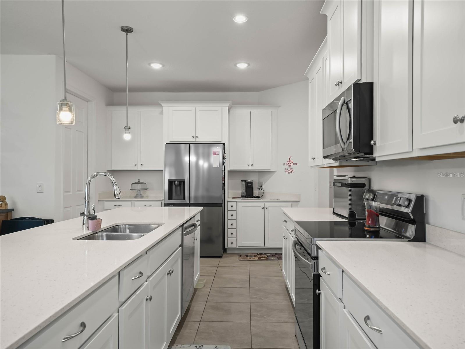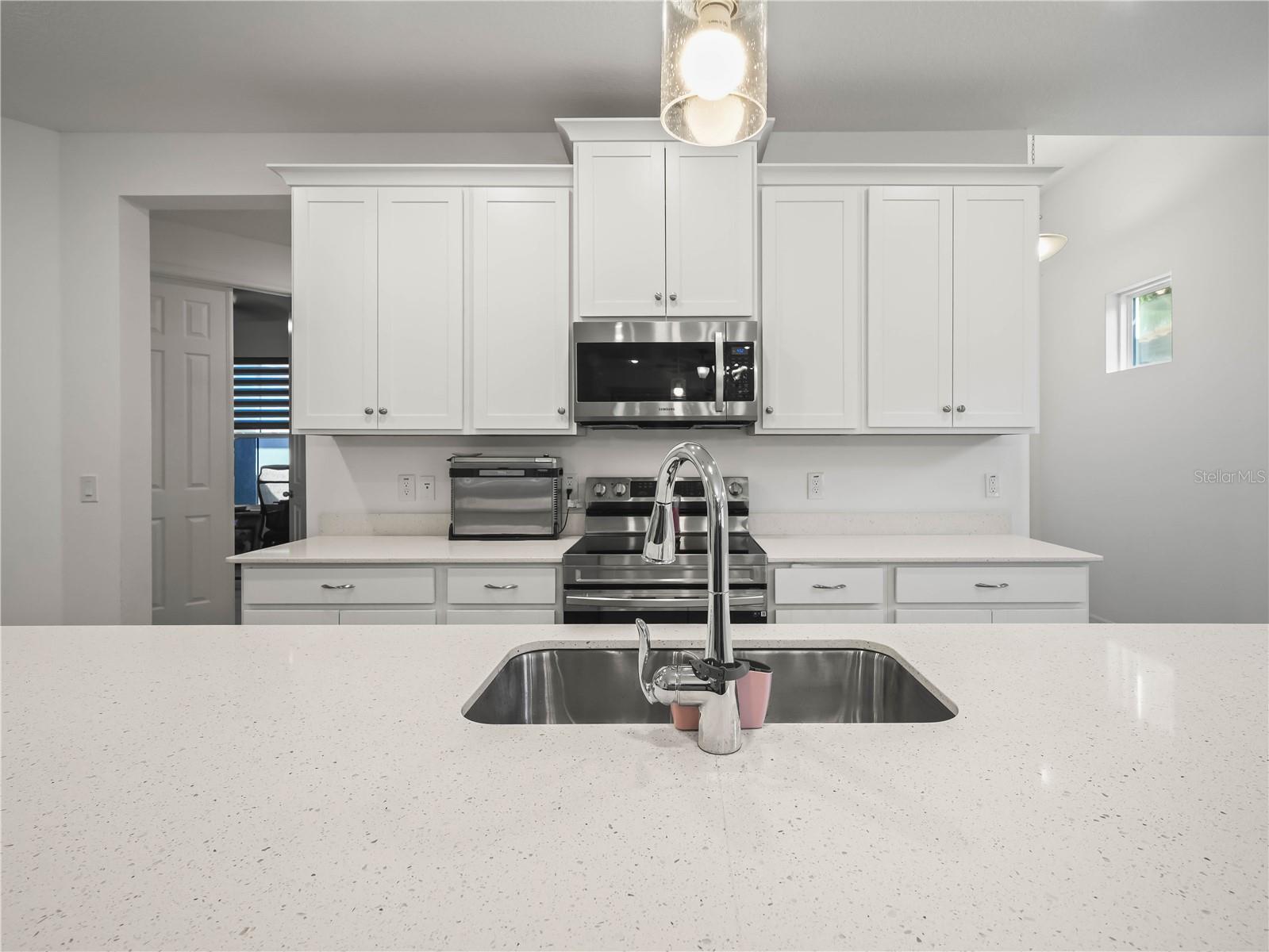 PREÇO REDUZIDO! 4136 Solamor Street Lakeland, Florida 33810 está localizado em Terralargo, um condomínio fechado com comodidades em estilo resort. Esta é uma villa deslumbrante de 3 quartos e 2 banheiros na muito procurada comunidade de Terra Largo em Lakeland e foi construída em 2022. NÃO HÁ VIZINHOS DE QUINTAL nesta casa. Esta casa em planta ATLANTIC foi construída pela Park Square Homes e tem 1.584 pés quadrados. Possui uma planta aberta que conecta perfeitamente a cozinha moderna à sala familiar, criando o espaço perfeito para entretenimento e vida cotidiana. A cozinha é o sonho de um chef com armários de 42", ilha de cozinha independente, eletrodomésticos de aço inoxidável, micro-ondas acima do fogão, iluminação pendente acima da ilha de cozinha, bancadas de quartzo e muitos armários para armazenamento. O quarto 2 e o quarto 3 estão localizados na frente da casa e estão convenientemente localizados no espaçoso banheiro de hóspedes com combinação de chuveiro/banheira. A entrada da garagem para a casa está convenientemente localizada no quarto 2, no quarto 3 e na cozinha. Localizado na parte de trás da casa você encontrará a suíte principal. É o retiro privado perfeito com banheiro privativo com pia dupla elevada, box amplo e um grande closet. Os destaques adicionais incluem: ventiladores de teto por toda parte, portas de vidro deslizantes que levam a um pátio coberto e com tela e uma garagem para dois carros. de Terra Largo desfrute de comodidades em estilo resort, incluindo clube, academia, piscina, playground, quadras de pickleball, basquete e tênis. As taxas HOA mensais incluem: TV a cabo, internet e cuidados com o gramado. Esta casa está convenientemente localizada perto de lojas, restaurantes e principais rodovias.
