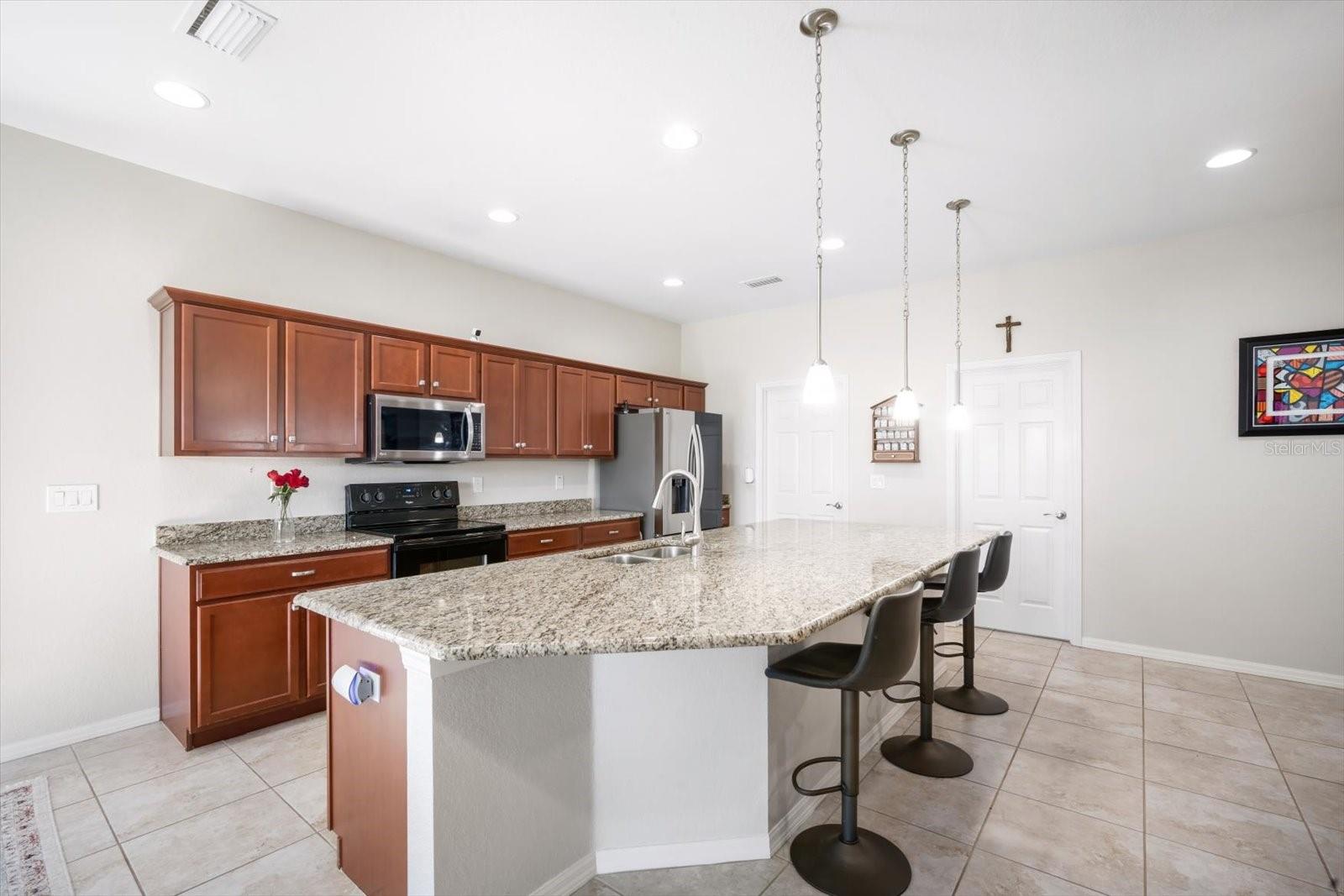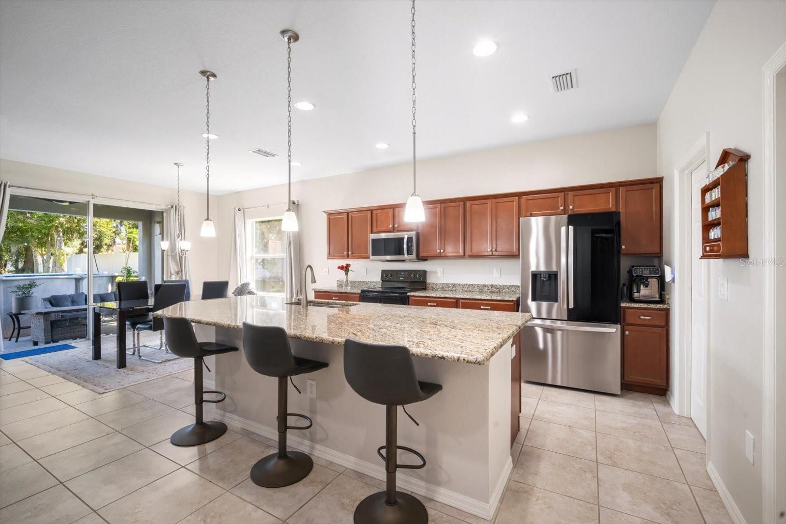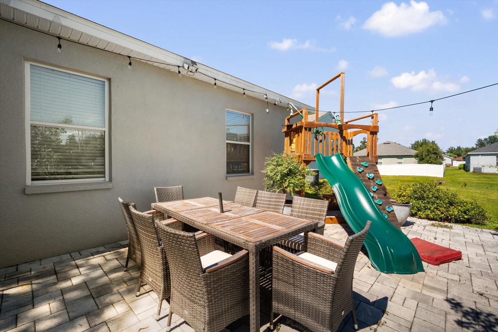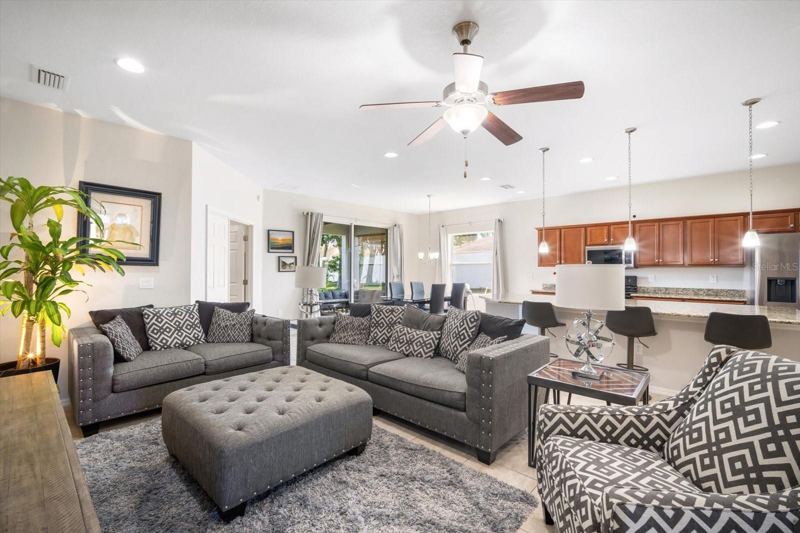 Não perca esta casa deslumbrante com bônus incríveis! Ao chegar ao final do beco sem saída, você notará que o lote é superdimensionado. Ele se apoia em uma propriedade de propriedade (e mantida) do HOA, o que faz com que pareça que seus quintais traseiros e laterais estão totalmente afastados dos vizinhos. Home atualizou a calçada de pavimentação para lhe dar um pouco mais de espaço para navegar sem pisar na grama. O pátio pavimentado também fica no quintal, permitindo espaço coberto ou para sentar ao sol. O paisagismo exuberante oferece um pouco mais de privacidade e a estação de carregamento de veículos elétricos traz um toque moderno. O interior da entrada é totalmente revestido a azulejos e abrange as principais áreas da casa. A cozinha possui balcões e armários atualizados e uma despensa ABSOLUTAMENTE ENORME. A lavanderia possui pia e balcão de açougue com armazenamento. Os quartos secundários são todos espaçosos, com amplo espaço no armário. Os quartos 3 e 4 compartilham um banheiro estilo "jack and jill". A planta aberta permite flexibilizar o espaço ao redor da cozinha conforme necessário; sala de estar, sala de jantar, espaço de entretenimento e muito mais. A suíte principal pode acomodar móveis grandes (sim, esse é um "Rei da Flórida"!), E tem um closet. O banheiro principal possui pias separadas, banheira de imersão e chuveiro recém-reformado. Painéis Solares serão quitados no fechamento; não se preocupe, apenas se beneficie. Existem tantos recursos nesta casa que são verdadeiramente apreciados pessoalmente. Por último, pergunte sobre a possibilidade de assumir o empréstimo e obter uma taxa de juros estelar!