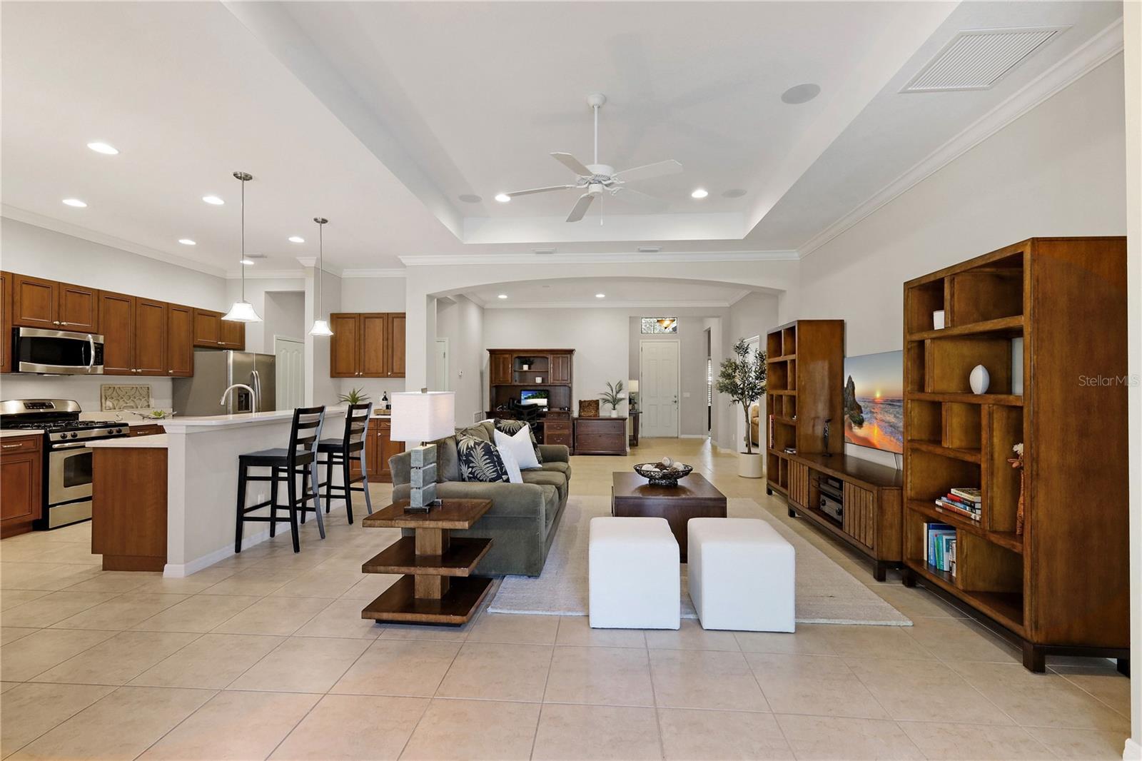 Situada no pitoresco Lakewood Ranch Golf and Country Club, esta casa meticulosamente mantida em Neal é uma verdadeira joia. Com 2 quartos, mais um salão que pode ser usado como 3º quarto, 2 banheiros, a residência se abre para uma varanda esplêndida com piscina aquecida de água salgada e spa, proporcionando um cenário cativante do campo de golfe King Dunes e uma reserva imaculada. Os tetos de 3 metros, juntamente com portas deslizantes, fundem perfeitamente os espaços internos e externos, criando um refúgio ideal para receber os hóspedes. O espaço ao ar livre é aprimorado com uma churrasqueira ao ar livre embutida e um conveniente minigeladeira, garantindo experiências gastronômicas ao ar livre perfeitas. A cozinha apresenta impressionantes bancadas de quartzo que foram renovadas há apenas três anos e é complementada por um esquentador recentemente instalado, realçando a funcionalidade e o estilo. A suíte do proprietário é um retiro de sofisticação, com pia dupla, box amplo e dois armários embutidos. Persianas em toda a casa adicionam um toque elegante, melhorando ainda mais a estética geral. Incluídos nas comodidades da associação de proprietários (HOA) estão serviços de manutenção de solo, TV a cabo básica, piscina comunitária e Wi-Fi, garantindo um estilo de vida livre de preocupações. Além da propriedade, os residentes desfrutam de acesso conveniente a praias de renome mundial, lojas de luxo e viagens tranquilas para os aeroportos de Sarasota e Tampa. Esta residência combina perfeitamente vida luxuosa com praticidade, oferecendo uma casa requintada em uma localização invejável, completa com comodidades externas excepcionais para o estilo de vida perfeito na Flórida.