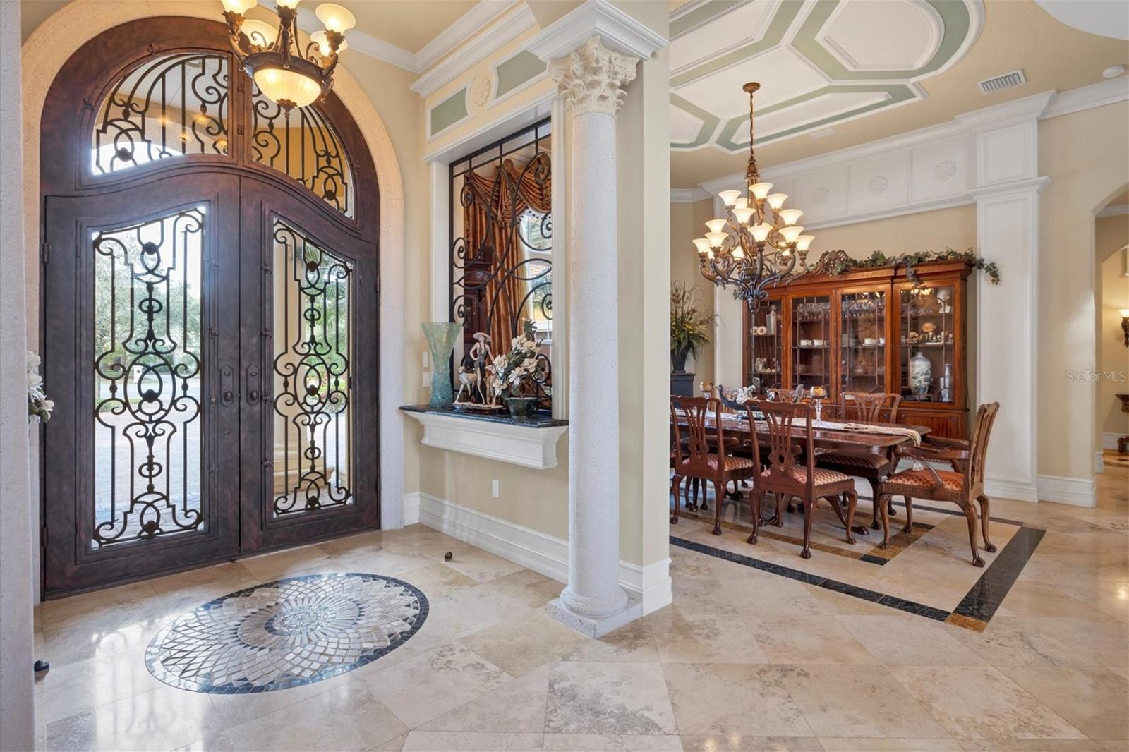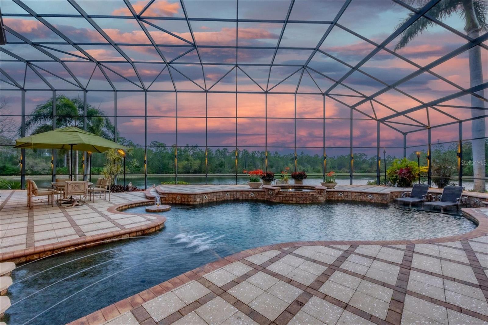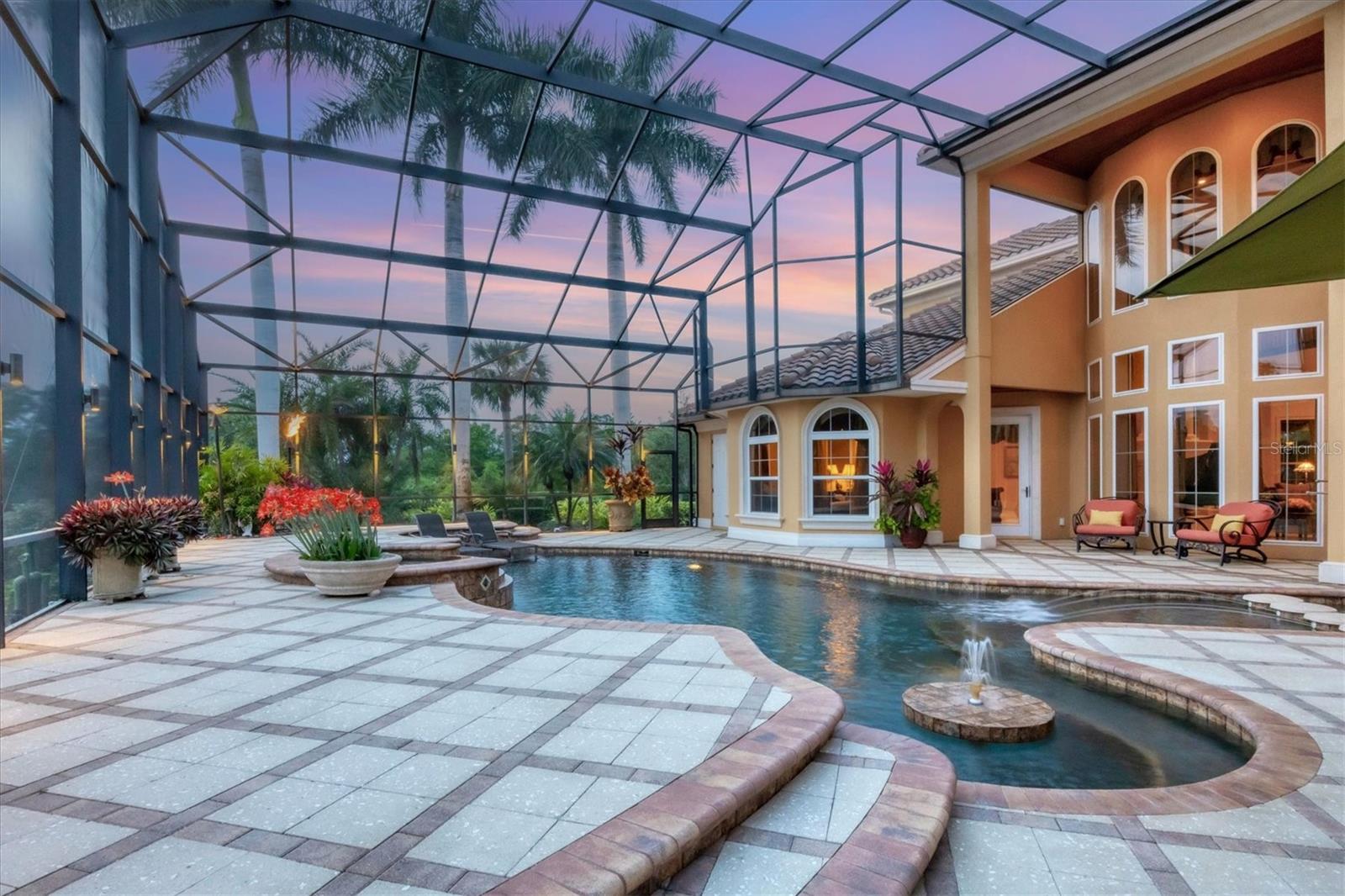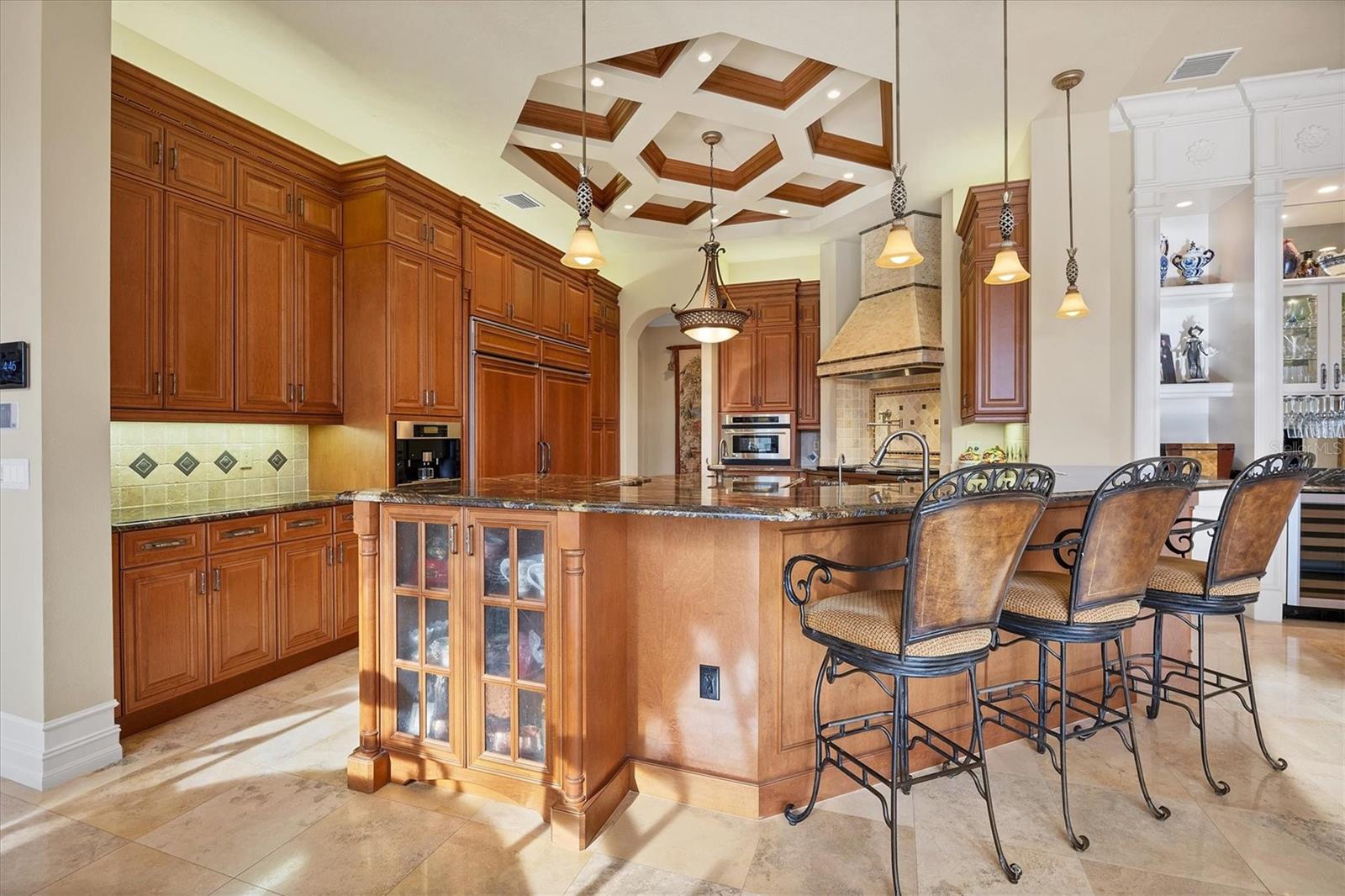 Localizado atrás dos portões da concessão, 8341 Farrington Court incorpora o luxo que vive no seu melhor. Esta propriedade excepcional repousa em um lote de grandes dimensões, oferecendo vistas sem paralelo e ao pôr do sol. A residência abrange mais de 8.000 pés quadrados, com seis quartos e seis banheiros e meio, todos meticulosamente criados por Pruett Custom Homes. Desde o momento em que você entra, um grande hall de entrada recebe você com uma porta de ferro dupla, piso de travertino e prateleiras elegantes de arte em granito. A sala de estar exala sofisticação com sua entrada em pilares em arco e a intrincada ferro, e a escada luxuosa, com risers de azulejos de ardósia e um ferro de folha de ouro e corrimão de madeira, acrescenta um toque de grandeza. A cozinha é uma obra-prima culinária, com armários de madeira personalizados, bancadas de granito grossas e aparelhos de aço inoxidável de primeira linha. Adjacente à cozinha, a área de café da manhã oferece um cenário sereno com uma janela de aquário com vista para a pitoresca margem e paisagem. O quarto principal e o escritório adjacente fazem um retiro luxuoso, com uma área de estar elevada, uma parede de janelas com painéis de cisalhamento motorizado e um armário excepcional com armários de madeira personalizados. O banho principal é igualmente convidativo, com piso de travertino, uma banheira de jacuzzi e um chuveiro romano com várias cabeças de chuveiro. O espaço ao ar livre é um refúgio de relaxamento, destacado por uma piscina e spa aquecida com água salgada em estilo resort, uma área de entretenimento coberta com lareira a gás e uma cozinha ao ar livre. O Lanai oferece vistas desobstruídas do lago, fornecendo um cenário sereno para reuniões ao ar livre. A segunda história da casa mostra uma infinidade de opções de entretenimento e relaxamento. A área do bar apresenta piso de travertino, assento de barra com uma bancada em granito e armários elegantes. Adjacente ao bar, a sala de bônus é um espaço versátil com pisos de madeira, um teto dividido e um nicho arqueado embutido para uma TV. Ele também possui portas de vidro deslizantes de canto zero, levando a um terraço do segundo andar com trilhos de ferro, oferecendo vistas deslumbrantes dos arredores. A residência inclui cinco quartos de hóspedes, além de um escritório e um cinema no andar de cima, conectados por uma varanda interior com piso de madeira, trilhos de madeira de folha de madeira e folhas de ouro e estantes personalizadas. Outras atualizações incluem um novo telhado em 2020, três novos sistemas HVAC em 2023, portas de garagem atualizadas, um novo aquecedor de água em 2024, duas novas bombas de piscina em 2023, re-régua de Lanai inteira em 2023 e muito mais. A concessão é uma das comunidades de golfe de maior prestígio da região e foi o local do Campeonato Mundial de Golfe do PGA Tour 2021 e da Copa dos Campeões Mundiais da PGA de 2023. Verdadeiramente um cenário sereno e tranquilo para o entusiasta do golfe ou para aqueles que desfrutam de uma infinidade de espaço verde. Com seu design impecável, atenção aos detalhes e localização incomparável, esta casa é uma verdadeira obra -prima que oferece a melhor experiência de vida de luxo.