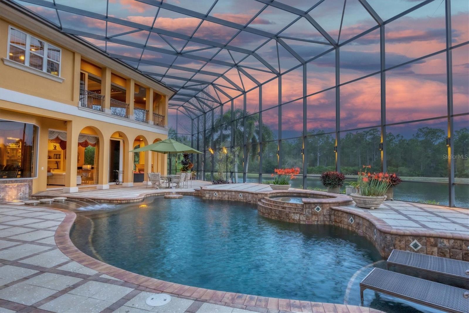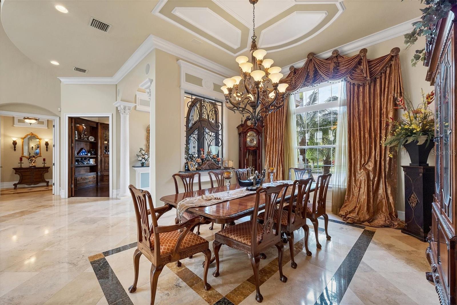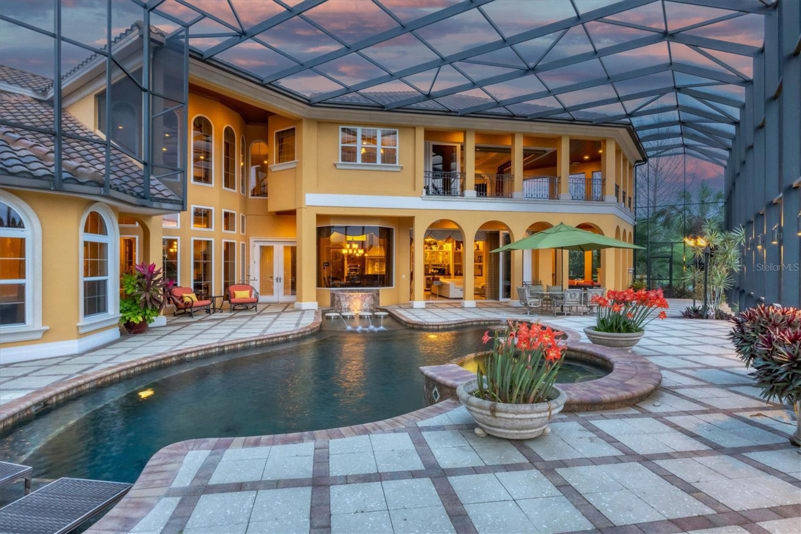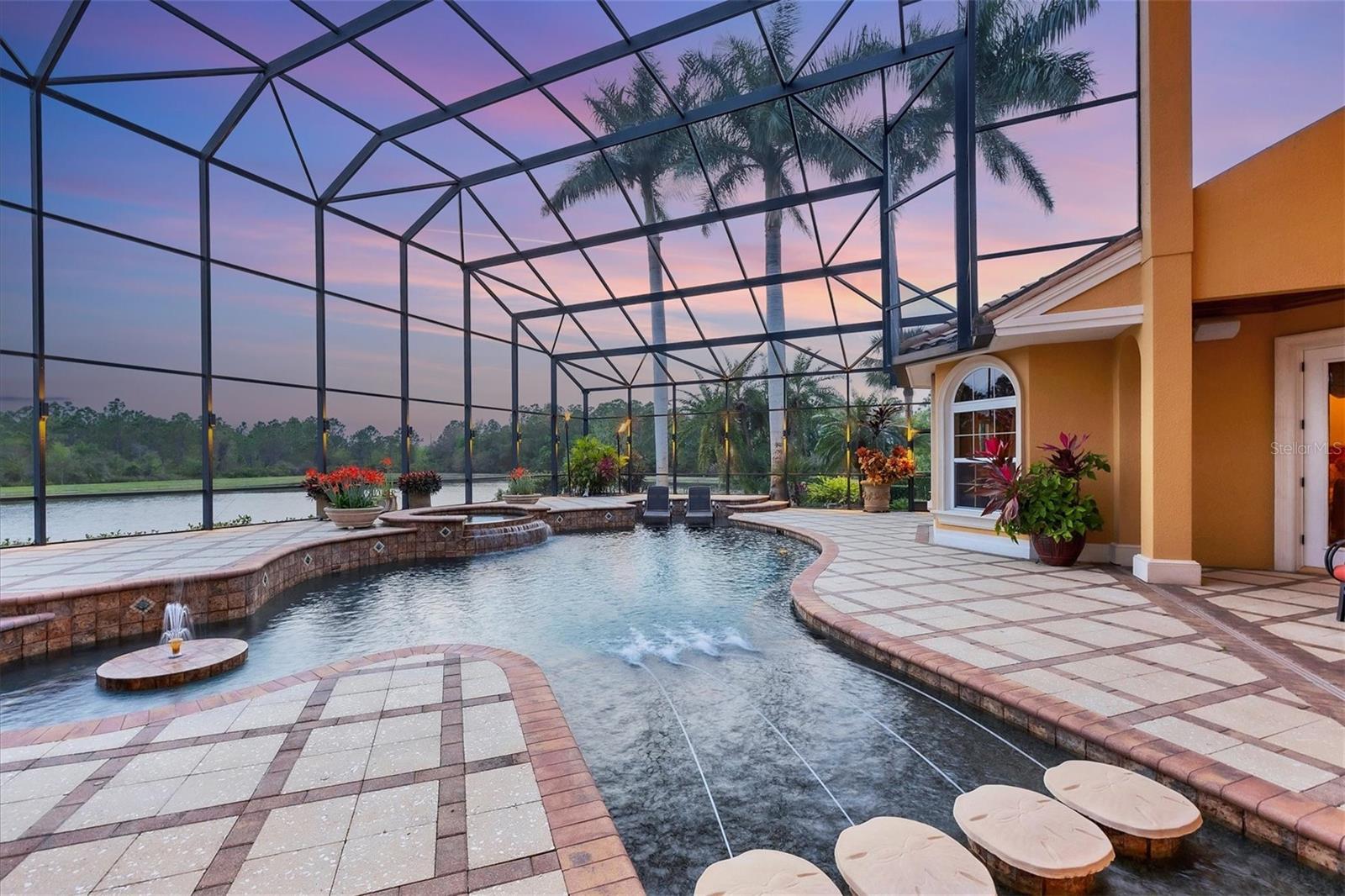 Localizado atrás dos portões da concessão, 8341 Farrington Court incorpora o luxo que vive no seu melhor. Esta propriedade excepcional repousa em um lote de grandes dimensões, oferecendo vistas sem paralelo e ao pôr do sol. A residência abrange mais de 8.000 pés quadrados, com seis quartos e seis banheiros e meio, todos meticulosamente criados por Pruett Custom Homes. Desde o momento em que você entra, um grande hall de entrada recebe você com uma porta de ferro dupla, piso de travertino e prateleiras elegantes de arte em granito. A sala de estar exala sofisticação com sua entrada em pilares em arco e a intrincada ferro, e a escada luxuosa, com risers de azulejos de ardósia e um ferro de folha de ouro e corrimão de madeira, acrescenta um toque de grandeza. A cozinha é uma obra-prima culinária, com armários de madeira personalizados, bancadas de granito grossas e aparelhos de aço inoxidável de primeira linha. Adjacente à cozinha, a área de café da manhã oferece um cenário sereno com uma janela de aquário com vista para a pitoresca margem e paisagem. O quarto principal e o escritório adjacente fazem um retiro luxuoso, com uma área de estar elevada, uma parede de janelas com painéis de cisalhamento motorizado e um armário excepcional com armários de madeira personalizados. O banho principal é igualmente convidativo, com piso de travertino, uma banheira de jacuzzi e um chuveiro romano com várias cabeças de chuveiro. O espaço ao ar livre é um refúgio de relaxamento, destacado por uma piscina e spa aquecida com água salgada em estilo resort, uma área de entretenimento coberta com lareira a gás e uma cozinha ao ar livre. O Lanai oferece vistas desobstruídas do lago, fornecendo um cenário sereno para reuniões ao ar livre. A segunda história da casa mostra uma infinidade de opções de entretenimento e relaxamento. A área do bar apresenta piso de travertino, assento de barra com uma bancada em granito e armários elegantes. Adjacente ao bar, a sala de bônus é um espaço versátil com pisos de madeira, um teto dividido e um nicho arqueado embutido para uma TV. Ele também possui portas de vidro deslizantes de canto zero, levando a um terraço do segundo andar com trilhos de ferro, oferecendo vistas deslumbrantes dos arredores. A residência inclui cinco quartos de hóspedes, além de um escritório e um cinema no andar de cima, conectados por uma varanda interior com piso de madeira, trilhos de madeira de folha de madeira e folhas de ouro e estantes personalizadas. Outras atualizações incluem um novo telhado em 2020, três novos sistemas HVAC em 2023, portas de garagem atualizadas, um novo aquecedor de água em 2024, duas novas bombas de piscina em 2023, re-régua de Lanai inteira em 2023 e muito mais. A concessão é uma das comunidades de golfe de maior prestígio da região e foi o local do Campeonato Mundial de Golfe do PGA Tour 2021 e da Copa dos Campeões Mundiais da PGA de 2023. Verdadeiramente um cenário sereno e tranquilo para o entusiasta do golfe ou para aqueles que desfrutam de uma infinidade de espaço verde. Com seu design impecável, atenção aos detalhes e localização incomparável, esta casa é uma verdadeira obra -prima que oferece a melhor experiência de vida de luxo.