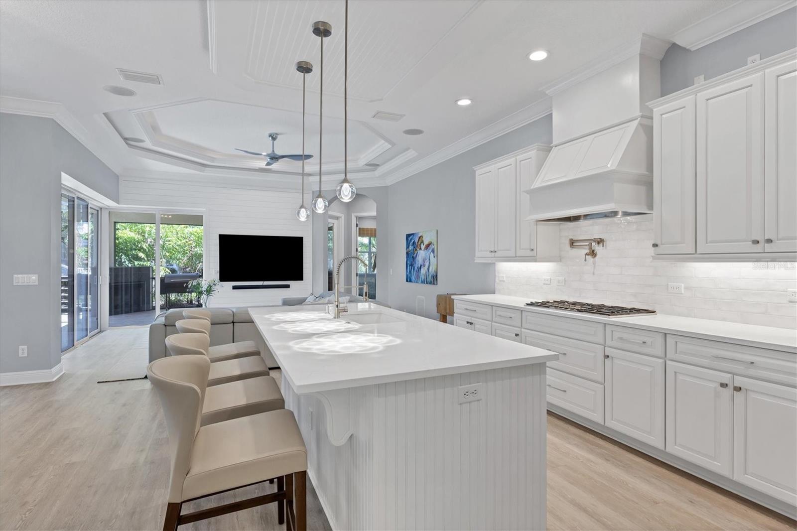 Bem -vindo ao 14721 Bowfin Terrace, uma casa de Lee Wetherington, lindamente atualizada em Greenbrook, em Lakewood Ranch. Uma garagem expansiva de pavimentadora e um novo paisagismo o recebem em casa. Uma vez lá dentro, o plano de piso plano aberto reúne perfeitamente os generosos espaços, tornando -o perfeito para relaxar e divertir. O impressionante novo piso de tábua de vinil de luxo por toda parte cria um palato coeso e atrai você em direção à extensa piscina e área de Lanai, com vistas para o lago além. Seja você um chef ou aspira, a cozinha é tão esteticamente cativante quanto funcional. Armários personalizados, bancadas de quartzo, utensílios de luxo, incluindo uma fogão a gás com um enchimento de panela, grande despensa e assentos convenientes de barra com nova iluminação, são alguns dos recursos. Sala de estar separada e espaços da sala da família, bem como espaços de jantar casuais e formais são definidos, mas abertos um ao outro, criando uma sensação casual e confortável. A suíte primária é um oásis que oferece um grande armário e banho com banheira de pé livre, chuveiro grande fechado de vidro e vaidades separadas. Existem dois quartos adicionais, bem como uma sala de bônus com acesso deslizante ao espaço ao ar livre coberto. Lee Wetherington Homes é conhecido por seus espetaculares espaços ao ar livre e esta casa oferece. Aproveite a piscina e o spa brilhante, bem como o espaço externo coberto significativo, completo com lareira e cozinha de verão. Ver é acreditar-os recursos e atualizações são numerosos e incluem moldagem por coroa, recursos de teto personalizados e embutidos, bancadas de quartzo, nova tinta, acessórios de encanamento, luminárias e muito mais. Uma garagem de três carros e um paisagismo exuberante completam o pacote. Desfrute de dois parques comunitários de Greenbrook Village com pavilhões, basquete, vôlei, futebol, playgrounds, um parque de cães e um extenso sistema de trilhas. Tudo isso e perto de ótimas escolas, compras, restaurantes e tudo o que morar em Lakewood Ranch tem a oferecer.