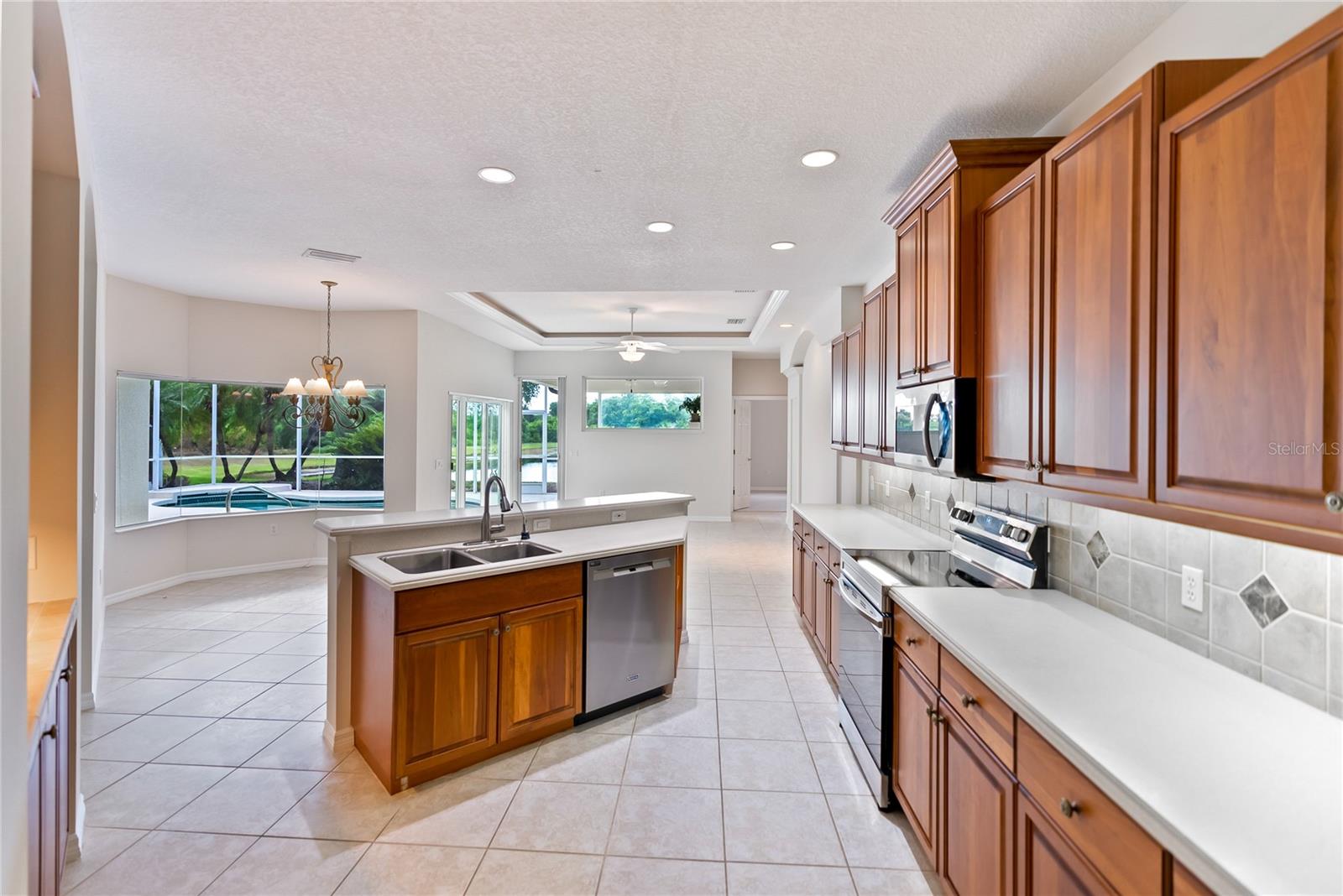 Uma ou mais fotos foram praticamente encenadas. *** Novo teto de telha *** Experimente a vida serena nesta ampla casa aninhada em um lago tranquilo e preserva o lote de Riverwalk Ridge, no coração do Lakewood Ranch. Com o renomado artesanato de Lee Wetherington, esta casa abrange 2.992 pés quadrados, oferecendo 4 quartos, 3 banheiros completos, um estudo e uma expansiva garagem de 3 carros. Entre em tetos altos, tons neutros e luz natural abundante. A cozinha do chef, decorada com utensílios de aço inoxidável mais novos, bancadas de coria, prateleiras e um backsplash de azulejos convida a exploração culinária. Entregue sem esforço na sala de estar formal e na área de jantar. Misture perfeitamente a vida interna e externa na sala da família com controles deslizantes que se abrem para vistas panorâmicas de carvalhos majestosos e o oásis ao ar livre. A expansiva Lanai coberta, completa com uma área de estar, uma cozinha ao ar livre e uma piscina espumante, acena o relaxamento e as reuniões sociais. Retire para a suíte primária, com um teto de bandeja e um banheiro no estilo de spa com um chuveiro de grandes dimensões e dois grandes armários. Os hóspedes apreciarão o conforto dos grandes quartos secundários e dois banheiros de hóspedes. Um estudo generosamente proporcionado e lavanderia completa o espaço de vida. Os recursos adicionais incluem nova tinta interior, moldagem da coroa, tetos de bandeja, um passe para a sala de jantar e uma estação de trabalho embutida. Riverwalk Ridge possui algumas das taxas mais baixas do HOA da região e está localizado centralmente na parte original do Lakewood Ranch. Desfrute da proximidade de fazer compras, restaurantes, entretenimento, escolas com classificação A, assistência médica, natureza e opções recreativas. Explore as praias de classe mundial e atrações próximas, como a Lakewood Ranch Main Street, o Lakewood Ranch Waterside e a vibrante cena cultural de Sarasota. Agende sua visualização privada hoje!