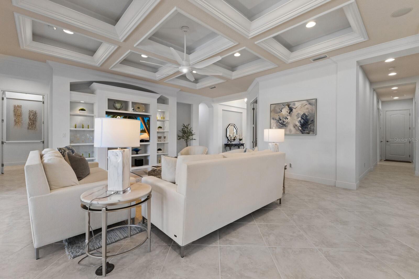 Pronto, esta linda casa de Lee Wetherington foi atualizada e pintada recém-pintada por dentro e por fora. Esta casa combina perfeitamente com a vida ao ar livre. Ao entrar, você é imediatamente atraído pela tranquilidade e privacidade da reserva natural e da Lanai através da ampla parede de vidro. Saia do seu oásis privado, completo com piscina/spa e cachoeira aquecida com água salgada, cozinha ao ar livre com telha decorativa nova, meio banho e uma generosa área de entretenimento coberta com teto de acento de madeira encantador, poço de incêndio e alto-falantes externos recém-instalados-perfeitos para desfrutar durante todo o ano. As áreas de estar, restaurantes e cozinha de conceito aberto exalam elegância e sofisticação com detalhes arquitetônicos, incluindo tetos altos em capitadas e molduras de coroa por toda parte. O coração da casa é a cozinha com uma despensa, aparelhos de aço inoxidável, geladeira de vinho, bancadas de quartzo e armários de madeira maciça de perto. O piso principal tem três quartos, 3 banheiros, meio banho, covil/escritório e lavanderia atualizada. Delicie-se com a luxuosa suíte do proprietário com tetos de bandeja, chuveiro de vidro, jacuzzi, vaidade de maquiagem, pias duplas e armários duplos. Construído para o entretenimento, o espaçoso segundo andar possui tetos altos, portas de vidro deslizantes, pia, geladeira de barra e banho completo. Aproveite seus filmes/esportes favoritos com amigos/família ou relaxe na varanda e aprecie a bela vista da reserva e/ou do pôr do sol romântico. Este piso também pode funcionar como uma suíte sogra/convidada. Os recursos adicionais desta casa excepcional incluem janelas de vidro de impacto, gerador de casas inteiras, iluminação paisagística, luzes de lanai da gaiola da piscina de LED e armazenamento de controle climático. As atualizações recentes incluem novas portas de garagem com classificação de furacões, recém-instaladas fora das lanternas, ventiladores de teto e carpete em quartos e 2º andar. O paisagismo foi aprimorado com as palmas das mãos exuberantes, proporcionando beleza e privacidade. O Country Club East oferece aos residentes o máximo em um condomínio fechado, com comodidades como três piscinas comunitárias, Fitness Center e Community Clubhouse. Esta localização fantástica fica perto de tudo, incluindo compras de classe mundial, praias, restaurantes, instalações médicas e aeroportos.
