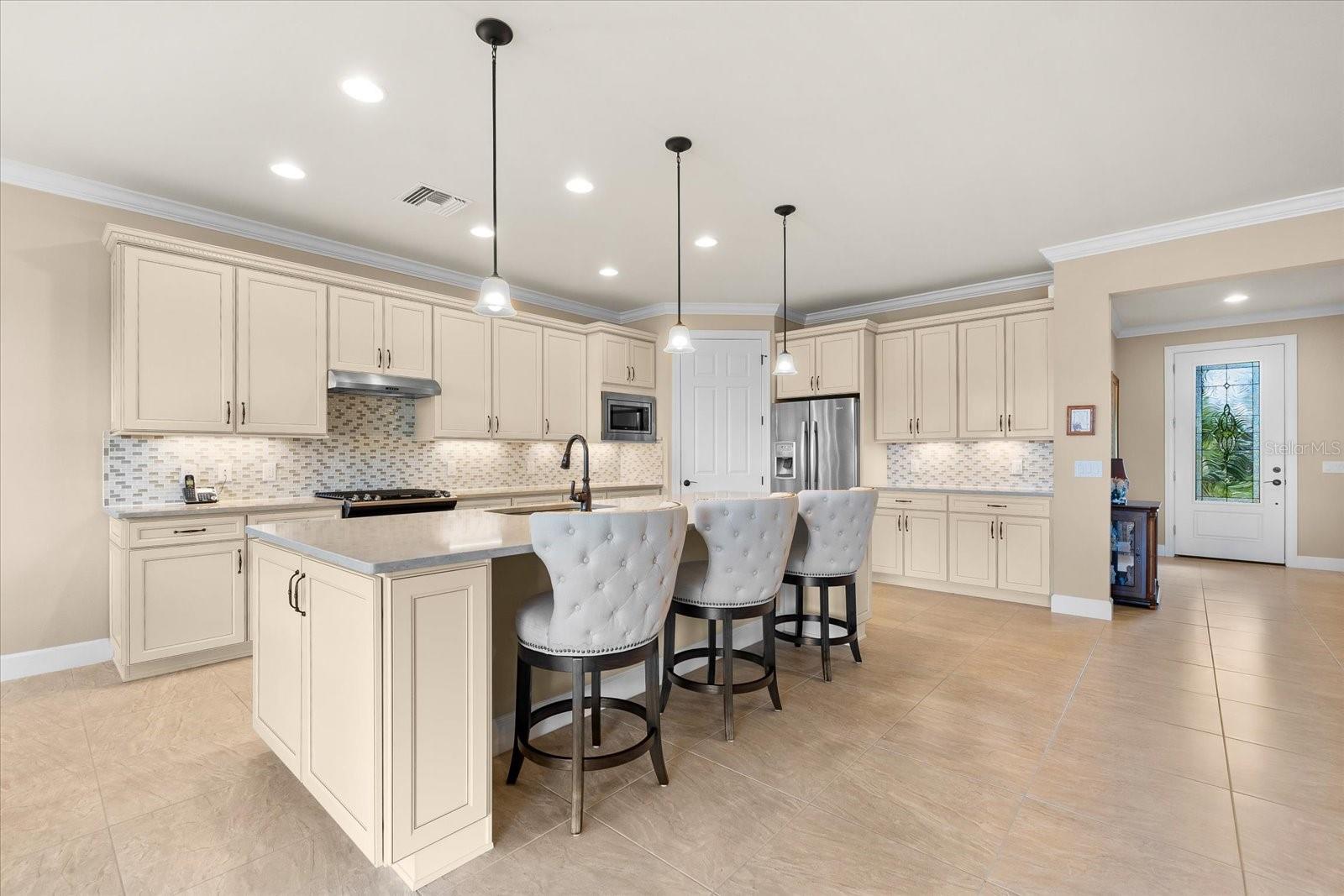 Este impressionante modelo Pinnacle é um trio de perfeição: a localização perfeita, as vistas perfeitas e a planta baixa perfeita. Esta é a sua oportunidade de possuir o modelo mais procurado na altamente popular comunidade de Del Webb, com mais de 55 anos, situada no Lakewood Ranch - o principal empreendimento multigeracional do país. Abrangendo 2.488 pés quadrados de espaço luxuoso, esta casa oferece 3 quartos, 3 banheiros e uma sala versátil que pode ser personalizada para atender às suas necessidades específicas. A cozinha é o sonho de qualquer chef, com bancadas de quartzo, backsplash de vidro, armários neutros e fogão a gás. O projeto arquitetônico e o uso inteligente do espaço tornam esta planta ideal para receber e receber familiares e amigos. A generosa área de estar está perfeitamente situada em um terreno aquático, oferecendo vistas pitorescas do lago. Esta casa foi meticulosamente mantida e está pronta para seu novo proprietário. Para os entusiastas do ar livre, a casa inclui conexões de encanamento para uma cozinha externa e o lote pode acomodar uma piscina, se desejado. As portas deslizantes de canto zero abrem para o exterior, onde você passará a maior parte do tempo desfrutando do estilo de vida quintessencial da Flórida. A grande suíte do proprietário possui banheiro privativo com pias duplas, box amplo e closet grande que certamente impressionará. As características adicionais incluem uma elegante porta francesa de vidro para a sala, uma lavadora e secadora atualizada, piso de garagem pintado, armários de armazenamento e uma mistura de bom gosto de piso de cerâmica nas principais áreas de estar com carpete macio nos quartos. A paleta neutra da casa é perfeita como está ou pode servir como uma tela em branco para você adicionar seus toques pessoais. Não perca esta incrível oportunidade de possuir um pedaço do paraíso em Del Webb. Agende sua visita hoje e personalize este deslumbrante modelo Pinnacle.