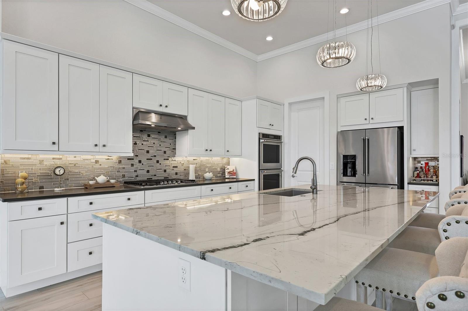 Onde sua casa reflete seu estilo. Excelente elegância de seu grande design e cobiçado lote de água pitoresca. A cama de 4 camas, 4 banheiro completo e 1 planta de elite Avery de meio banho da Toll Brothers garante um layout que maximize o espaço e a funcionalidade. O hall de entrada congratula -se com portas francesas duplas convidadas com vidro de chuva e janelas de popa acima, teto alto adornado com moldagem por coroa e uma luminária de grife. A grande sala oferece uma mistura de conforto e luxo, uma luminária de grife pendurada acima, lançando luz na deslumbrante lareira com beadboard e pedra. Grandes janelas que flanqueiam a lareira permitem que a luz natural inunde o espaço, enquanto as persianas de controle remoto garantem privacidade e sombra ao longo da parede de controles deslizantes que fornecem uma transição perfeita para o exterior. A cozinha possui bancadas de quartzo, um backsplash de ladrilhos de vidro, uma ilha flutuante com armários, armários brancos personalizados com fechos e puxões suaves e aparelhos de cozinha. Os destaques incluem dois fornos de parede embutidos, um capuz de ventilação sobre o fogão a gás de 5 queimadores e uma despensa personalizada com uma geladeira adicional e um refrigerador de vinho. Na sala de jantar, uma grande janela de imagens com uma janela de popa acima oferece vistas pitorescas do lago e pôr do sol deslumbrante a oeste, além de uma parede de controles deslizantes equipados com persianas de controle remoto, permitindo fácil acesso à vida ao ar livre. A suíte primária é um retiro privado, acessado através de uma porta de vidro fosco. No interior, uma porta francesa com painéis de vidro com tons, um teto de bandeja alta com moldagem por coroa e uma área de estar aconchegante e duas janelas. O banheiro principal possui um chuveiro com um banco de bancada, uma vaidade com duas pias, iluminação de grife, uma janela de popa, um armário de água privado e um espaçoso closet com organização personalizada. As duas suítes de convidados bem equipadas apresentam molduras de coroa, armários organizados personalizados e banheiros com banho com um chuveiro ou banheira/chuveiro, vaidades com armazenamento e bancadas de granito. No andar de cima, leva a um espaço de bônus voltado para o leste com piso de vinil, um armário expansivo com prateleiras embutidas, um banho completo com vaidade, bancada de granito, banheira/chuveiro e piso de ladrilho. A área externa é um verdadeiro oásis com vistas privadas de água e pôr do sol, uma piscina e um spa com uma prateleira de sol, pavimentadoras de mármore de arenito e áreas de estar e jantar cobertas e descobertas. Uma lareira com brechas e armários com bancadas em granito de ambos os lados fornece um ponto focal para reuniões. A gaiola panorâmica de Lanai inclui três telas de privacidade com controle remoto e um toldo de controle remoto para sombra. A expansiva exposição voltada para o oeste oferece vistas de pôr do sol de tirar o fôlego sobre o espaçoso quintal. As características adicionais desta casa incluem um meio banho conveniente localizado no hall de entrada, uma pia de pedestal e uma luminária de grife, uma garagem de três carros com um mini-divisão CA, piso de epóxi e prateleiras embutidas, um armário de armazenamento no corredor próximo à garagem, duas unidades de CA (um nível integral), os fatores de compressão. Uma lavanderia bem equipada com pia, armários e bancadas em granito. 17654 Azul Drive simboliza a vida de luxo, onde todos os detalhes oferecem um estilo de vida incomparável. As Ilhas do Lakewood Ranch oferecem um clube com uma sala social e uma cozinha de catering, uma piscina em estilo resort, um centro de fitness, um píer de calçadão e pesca, basquete, tênis e quadras de pickleball e um parque de cães.