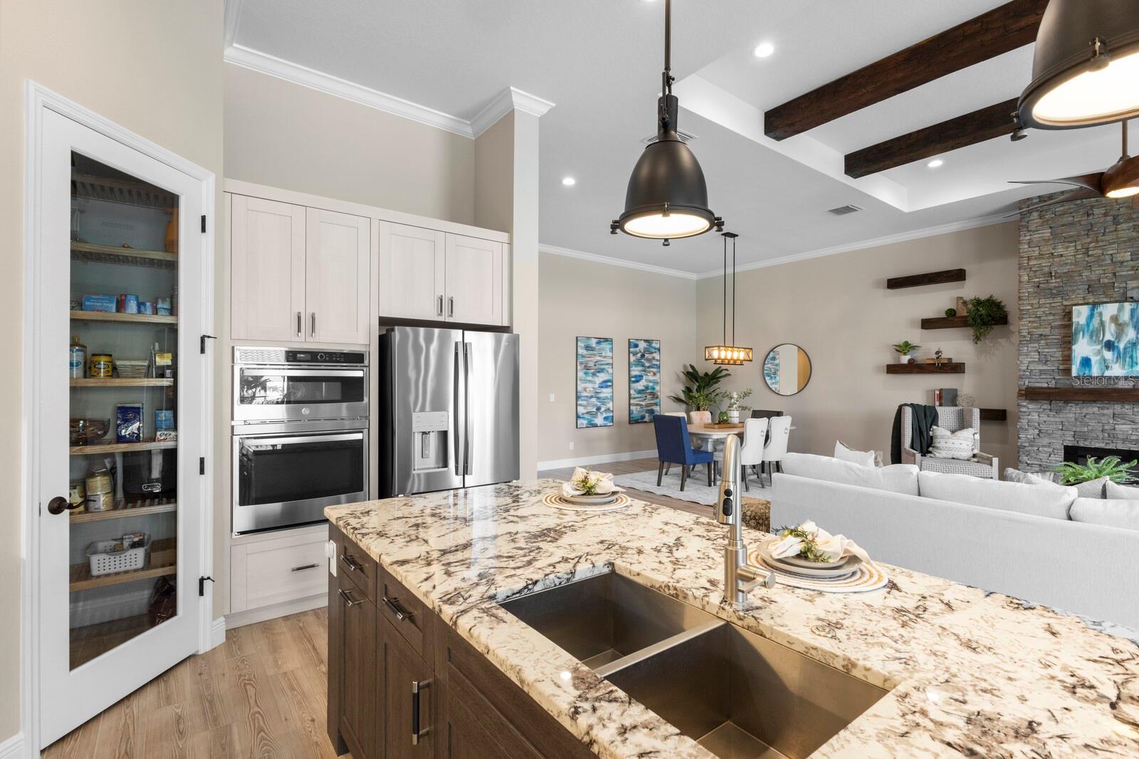 Bem-vindo a esta casa de 4 quartos e 3,5 banheiros, meticulosamente mantida, de 2022, construída sob medida, no muito procurado bairro de Prestbury, em Country Club East. Esta residência cuidadosamente projetada oferece tetos altos e oferece vida interna e externa perfeita. Ao entrar, você será cativado pela grande sala e cozinha com uma mistura harmoniosa de teto com vigas de madeira, janelas abundantes, conjunto duplo de controles deslizantes com janelas de popa e ampla e bela luz natural. A cozinha do chef possui eletrodomésticos de aço inoxidável, fogão a gás, despensa, bancadas de quartzo, lindo backsplash e uma impressionante ilha de 2,5 metros. O espaçoso quarto principal inclui tetos altos, um espaço de escritório secundário, um closet gigante/ampliado e um luxuoso banheiro tipo spa. Um escritório privado com venezianas e piso de cerâmica torna o trabalho em casa um prazer. Os destaques adicionais incluem uma linda piscina / spa personalizado, uma cozinha externa e uma garagem ampliada para dois carros e meio que oferece amplo espaço para veículos e armazenamento extra. O Country Club East oferece comodidades de alto nível, como uma academia comunitária, trilhas para caminhada, piscinas comunitárias, entradas fechadas e o clube Retreat. A associação opcional ao Lakewood Ranch Country Club concede acesso a três (3) campos de golfe profissionais de 18 buracos, tênis, pickleball, dois clubes para jantar, uma academia de ginástica de última geração e muito mais. Lakewood Ranch é uma comunidade planejada de primeira linha, conhecida por sua proximidade com lojas premiadas, restaurantes, escolas com classificação A, parques e praias próximas mundialmente famosas.