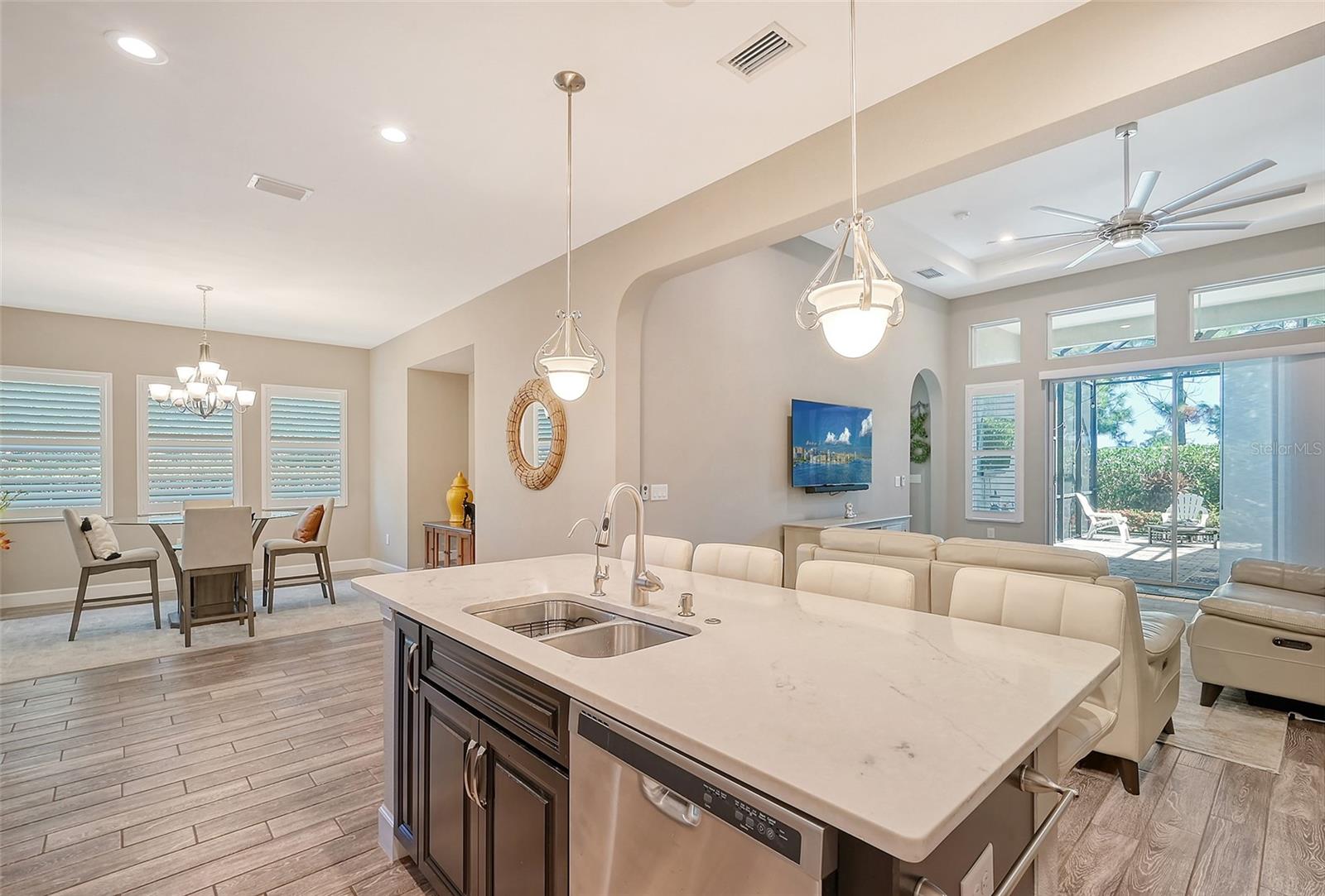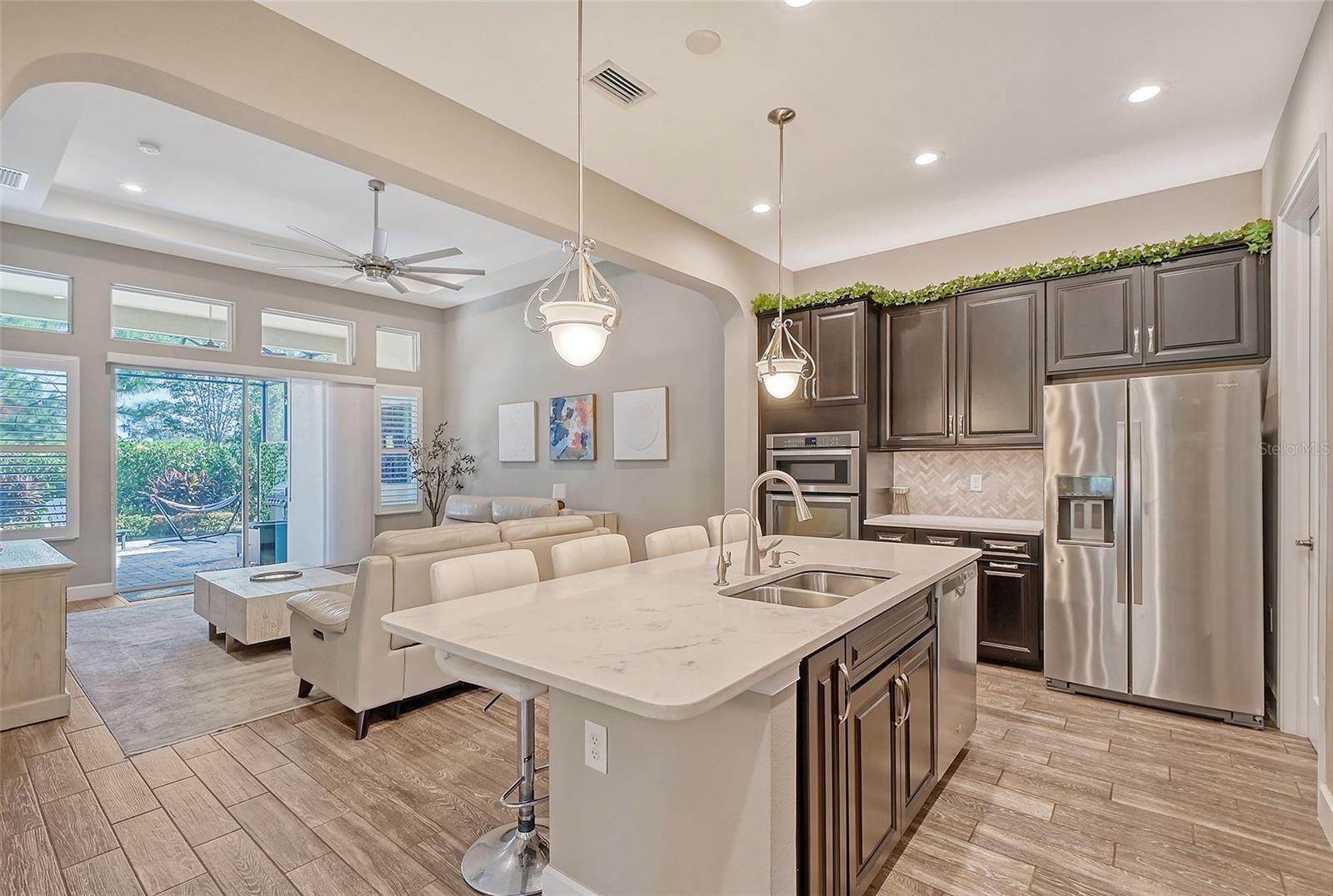 Desfrute de uma vida livre de manutenção neste condomínio fechado muito procurado em Lakewood Ranch, Arbor Grande. Esta villa espaçosa e bem equipada com mais de 2.100 pés quadrados oferece um ambiente único e privado ao lado de um lago. Esta vila de alto padrão construída pelo construtor de luxo Cal Atlantic está situada em um lote premium no final da rua, oferecendo vistas espetaculares do pôr do sol com vista para a água. Esta grande casa de 2 quartos mais arrumos possui tetos de 10' em toda a extensão, além de um teto dramático de 15' na sala de estar/grande. O coração da casa está na planta aberta que reúne a cozinha, as áreas de estar e de jantar. Este amplo layout de um andar oferece 2 suítes (quartos cada um com banheiro completo privativo) e um lavabo para servir a área de estar principal. A casa exala luxo com recursos como venezianas personalizadas, piso de porcelanato de madeira, iluminação aprimorada com dimmers, ventiladores de teto, etc. A cozinha elegantemente decorada tem uma grande ilha que oferece muitos assentos, eletrodomésticos Whirlpool de aço inoxidável, quartzo bancadas, fogão a gás, despensa grande, iluminação suave e iluminação sob o armário. O vendedor inclui muitos extras, como 3 TVs montadas na parede com tamanho perfeito para os quartos (todas com barras de som), sistema de câmera Ring (5 câmeras), móveis de exterior, 2 fogueiras (uma alimentada por propano e outra a lenha). ), um sistema de armazenamento de bicicletas e um aparelho de ar condicionado independente para a garagem. A casa também inclui venezianas personalizadas, um sistema de água por osmose reversa, bem como um sistema de purificação de água para toda a casa, sistema de controle de pragas embutido na parede e um aquecedor de água sem tanque. Arbor Grande oferece muita atividade! A apenas algumas vilas de distância, mergulhe na água salgada, na piscina e no spa em estilo resort, faça exercícios na quadra de picles ou exercite seu cachorro no parque para cães - tudo exclusivo da comunidade de vilas. Arbor Grande Village oferece comodidades adicionais, como uma academia de ginástica de primeira classe, um lindo clube comunitário, outra piscina estilo resort, quadras de bocha e vôlei. O Bob Gardner Park está localizado próximo ao Arbor Grande com 3 pontos de entrada dentro da comunidade e oferece trilhas para caminhada, um grande parque para cães com lago, playground e pavilhão de piquenique. Esta moradia também pode ser oferecida totalmente mobilada ou chave na mão para quem procura uma casa ‘pronta para habitar’.