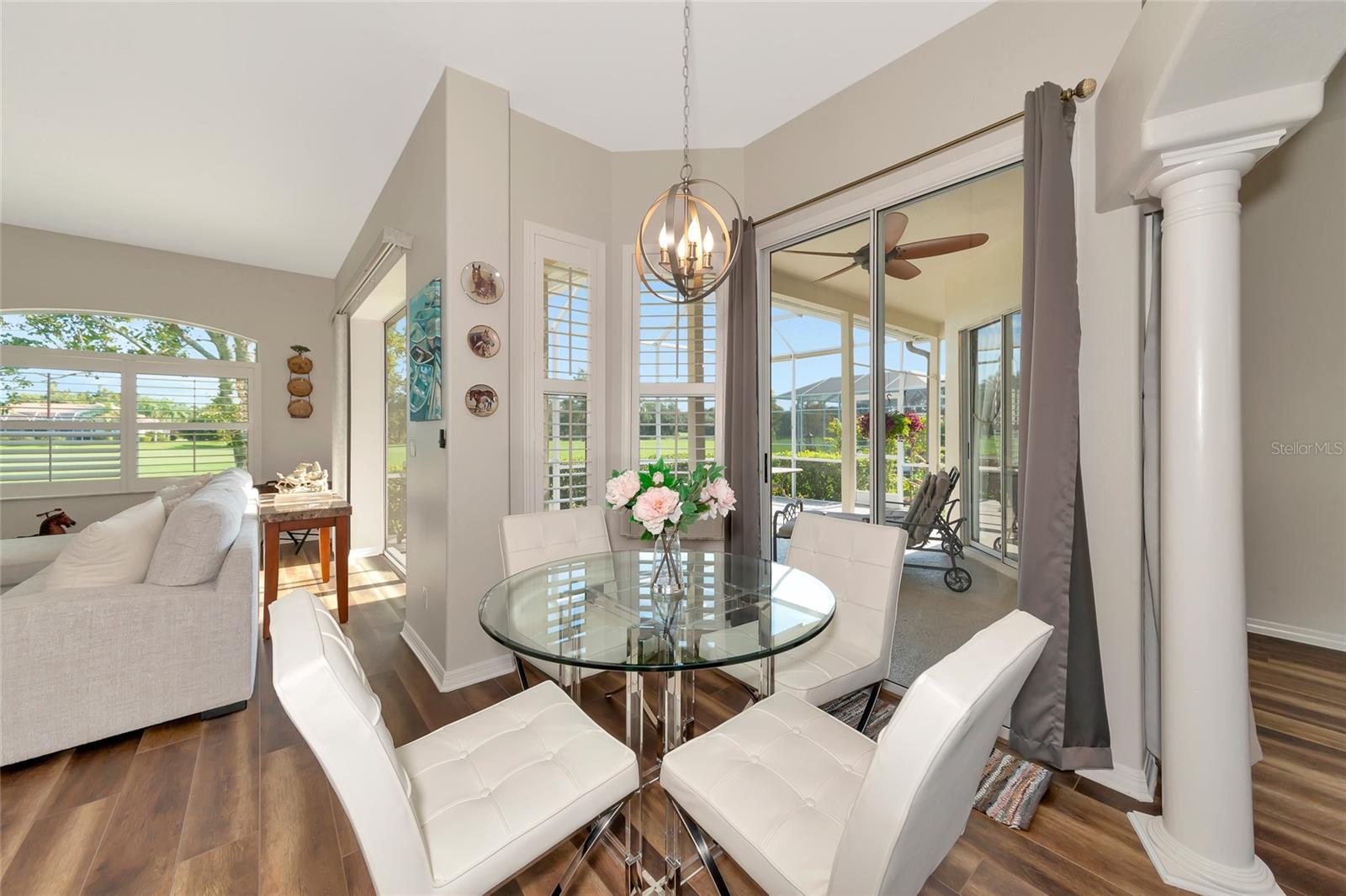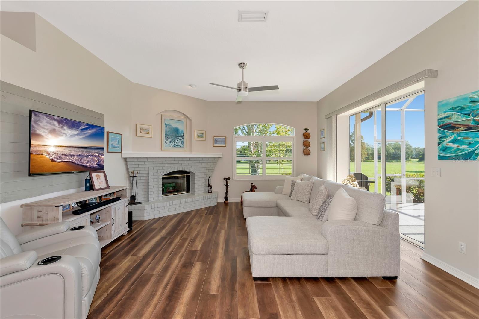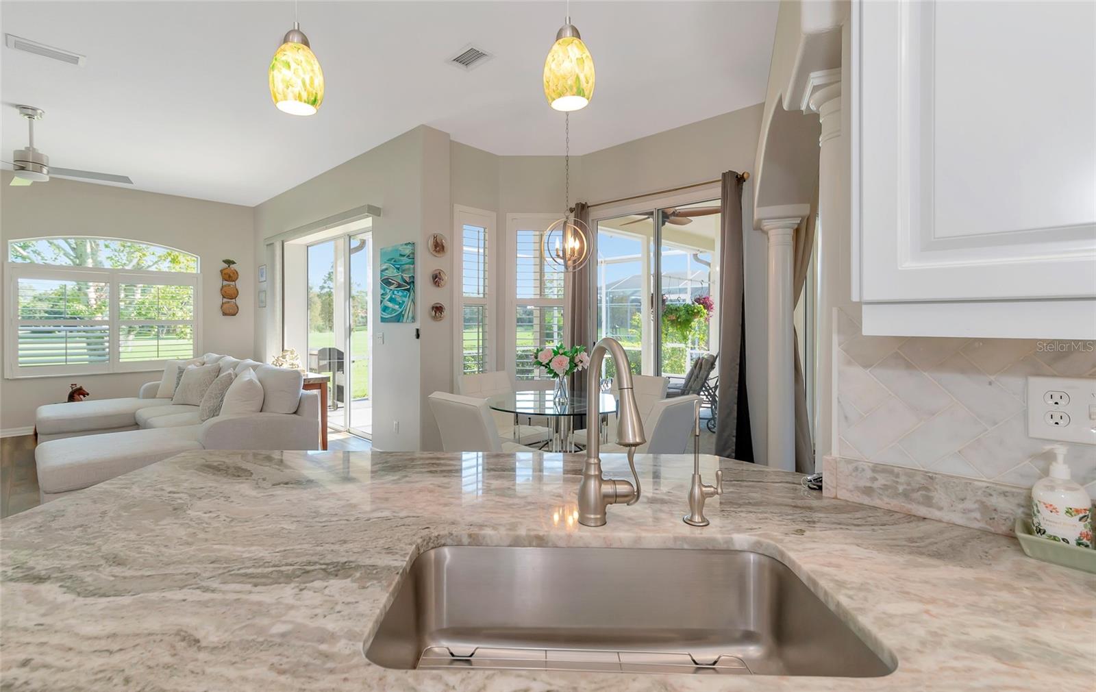 Descubra um achado raro na altamente desejável comunidade do River Club, oferecendo a você uma oportunidade única de tornar esta propriedade serena sua! Escondida num bairro tranquilo e maduro, esta encantadora residência térrea oferece uma vida tranquila com vistas deslumbrantes para o campo de golfe e uma verdadeira conexão com a natureza, onde você pode ouvir o chilrear dos pássaros ao redor. Situada em um terreno espaçoso, esta casa de 3 quartos e 2 banheiros oferece 2.000 pés quadrados de área útil, com um telhado mais novo (2019) e venezianas elegantes por toda parte. Ao entrar, você entrará em uma acolhedora área de estar e, ao passar pela cozinha, encontrará uma lareira aconchegante - ideal para relaxar em noites tranquilas. A cozinha atualizada é uma delícia para o chef, com armários com fechamento suave, amplo espaço no balcão e eletrodomésticos modernos que facilitam o preparo das refeições. O layout fluido da casa proporciona uma sensação aberta e arejada, perfeita tanto para a vida cotidiana quanto para receber convidados. A espaçosa varanda coberta oferece um local perfeito para refeições ao ar livre e relaxamento, onde você pode desfrutar da tranquilidade das vistas do campo de golfe e da vegetação exuberante. Esteja você tomando um café da manhã ou organizando um churrasco no fim de semana, este espaço ao ar livre certamente será um local favorito. Destaques adicionais incluem garagem para 3 carros com amplo espaço de arrumação e porta lateral de acesso ao exterior. A rua tranquila e o paisagismo maduro criam um ambiente privado e sereno, mantendo você perto de todas as vantagens do estilo de vida do Lakewood Ranch. No ambiente de alto custo atual, o River Club oferece a tranquilidade de taxas mínimas de HOA, sem CDDs e associações opcionais a clubes nesta comunidade de golfe projetada por Ron Garl. Além disso, você está a poucos minutos da agitação do Lakewood Ranch, incluindo restaurantes, lojas, escolas de primeira linha, locais de entretenimento e belas praias. Com fácil acesso à I-75, Waterside e ao vizinho University Town Center, o deslocamento é muito fácil e você está a apenas um passeio de bicicleta das escolas locais e do Main Street Lakewood Ranch. Não perca esta oportunidade de possuir um pedaço do paraíso neste condomínio incrível – uma vida luxuosa com a combinação perfeita de conforto, natureza e conveniência o aguarda!