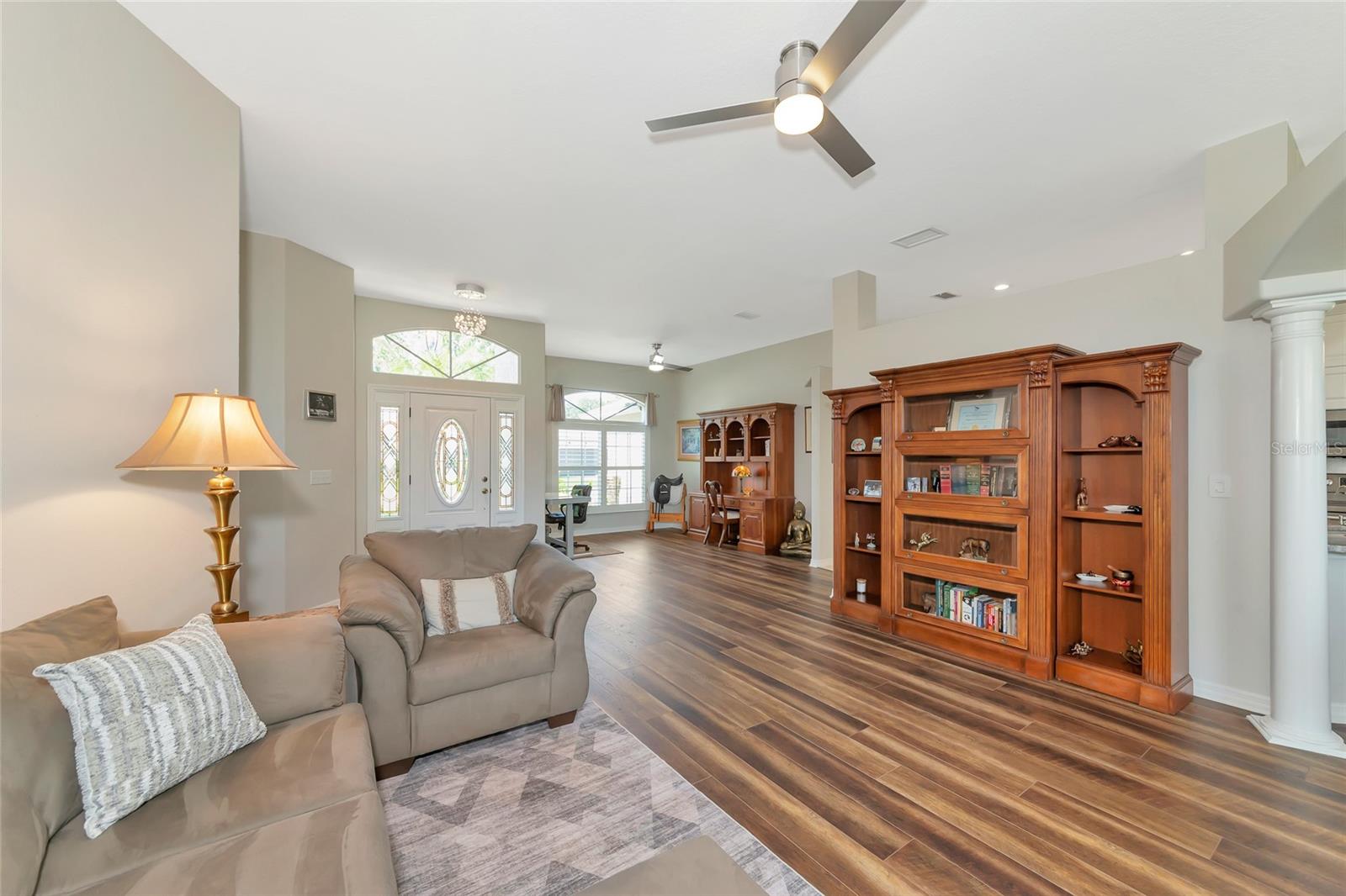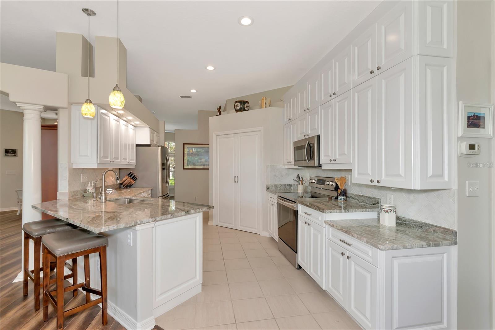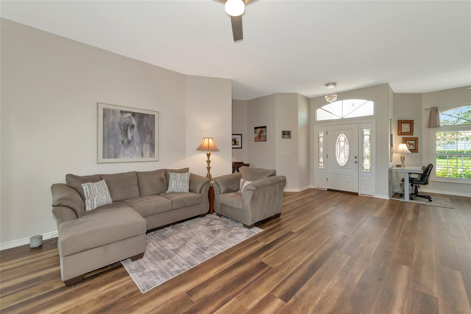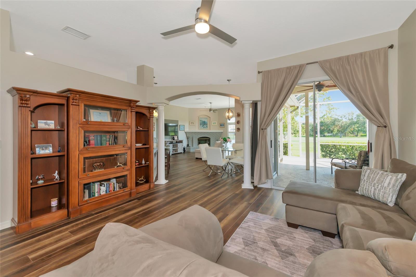 Descubra um achado raro na altamente desejável comunidade do River Club, oferecendo a você uma oportunidade única de tornar esta propriedade serena sua! Escondida num bairro tranquilo e maduro, esta encantadora residência térrea oferece uma vida tranquila com vistas deslumbrantes para o campo de golfe e uma verdadeira conexão com a natureza, onde você pode ouvir o chilrear dos pássaros ao redor. Situada em um terreno espaçoso, esta casa de 3 quartos e 2 banheiros oferece 2.000 pés quadrados de área útil, com um telhado mais novo (2019) e venezianas elegantes por toda parte. Ao entrar, você entrará em uma acolhedora área de estar e, ao passar pela cozinha, encontrará uma lareira aconchegante - ideal para relaxar em noites tranquilas. A cozinha atualizada é uma delícia para o chef, com armários com fechamento suave, amplo espaço no balcão e eletrodomésticos modernos que facilitam o preparo das refeições. O layout fluido da casa proporciona uma sensação aberta e arejada, perfeita tanto para a vida cotidiana quanto para receber convidados. A espaçosa varanda coberta oferece um local perfeito para refeições ao ar livre e relaxamento, onde você pode desfrutar da tranquilidade das vistas do campo de golfe e da vegetação exuberante. Esteja você tomando um café da manhã ou organizando um churrasco no fim de semana, este espaço ao ar livre certamente será um local favorito. Destaques adicionais incluem garagem para 3 carros com amplo espaço de arrumação e porta lateral de acesso ao exterior. A rua tranquila e o paisagismo maduro criam um ambiente privado e sereno, mantendo você perto de todas as vantagens do estilo de vida do Lakewood Ranch. No ambiente de alto custo atual, o River Club oferece a tranquilidade de taxas mínimas de HOA, sem CDDs e associações opcionais a clubes nesta comunidade de golfe projetada por Ron Garl. Além disso, você está a poucos minutos da agitação do Lakewood Ranch, incluindo restaurantes, lojas, escolas de primeira linha, locais de entretenimento e belas praias. Com fácil acesso à I-75, Waterside e ao vizinho University Town Center, o deslocamento é muito fácil e você está a apenas um passeio de bicicleta das escolas locais e do Main Street Lakewood Ranch. Não perca esta oportunidade de possuir um pedaço do paraíso neste condomínio incrível – uma vida luxuosa com a combinação perfeita de conforto, natureza e conveniência o aguarda!