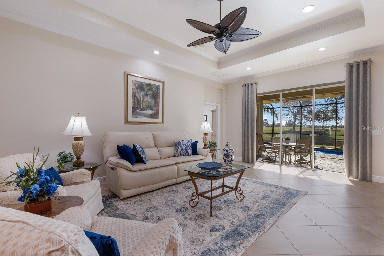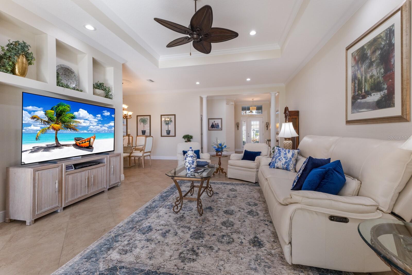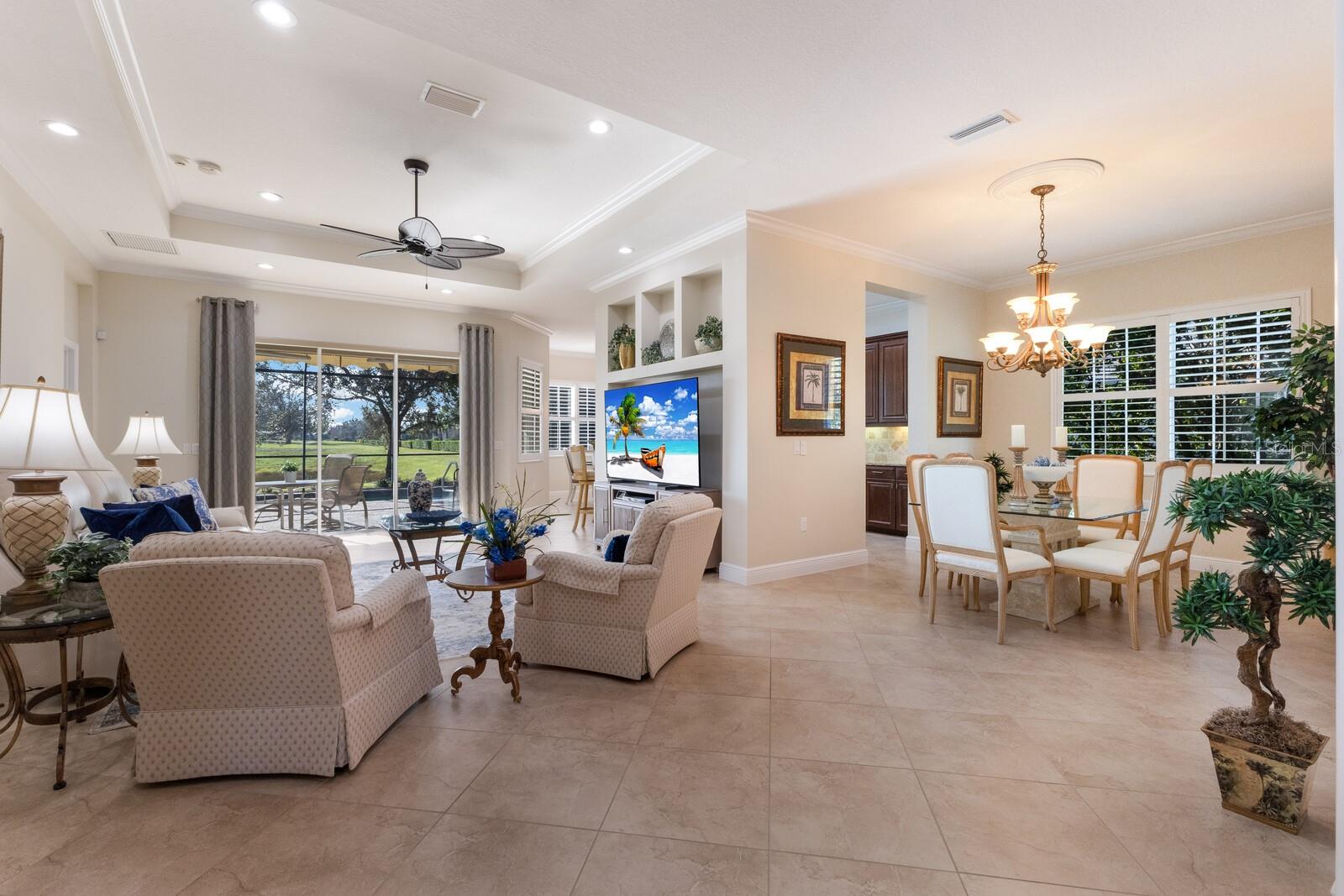 Descubra o charme do Country Club East em 14508 Stirling Drive, uma joia escondida situada na prestigiada comunidade de Lakewood Ranch. Esta residência deslumbrante, emoldurada pela beleza serena do quinto green do renomado campo Royal Lakes, convida você a um mundo de luxo e conforto. Ao passar pela elegante porta frontal de vidro com chumbo, você é recebido por um elegante hall de entrada adornado com requintados azulejos e colunas decorativas que dão o tom para esta casa meticulosamente projetada. A espaçosa sala familiar de conceito aberto possui tetos altos, sancas e nichos personalizados, criando uma atmosfera convidativa, perfeita para relaxamento e entretenimento. O coração da casa é a cozinha iluminada e arejada, com ricos armários de madeira, armários superiores com frente de vidro e elegantes bancadas de granito complementadas por um backsplash de azulejos de bom gosto. Os aparelhos de aço inoxidável garantem que cozinhar seja um prazer e uma brisa. Imagine organizar reuniões na área de entretenimento ao ar livre, completa com piscina aquecida e spa, onde tardes preguiçosas e vistas do pôr do sol se tornam a sua realidade cotidiana. Esta versátil casa de três quartos e dois banheiros também inclui uma sala que pode se adaptar facilmente ao seu estilo de vida - seja um escritório doméstico produtivo ou um recanto de leitura tranquilo. Com porcelanatos de 20 polegadas fluindo pelas principais áreas de estar e elegantes azulejos com aparência de madeira nos quartos, a elegância é evidente a cada passo. Uma garagem de grandes dimensões para dois carros oferece amplo armazenamento. A comunidade Belleisle melhora seu estilo de vida com piscina, spa, área de churrasqueira e clube próprios. Para ainda mais lazer, aproveite o acesso ao The Retreat – completo com piscina estilo resort, academia, sala de jogos e parque. Com a adesão opcional ao Lakewood Ranch Country Club, você pode desfrutar das ofertas exclusivas do The Lodge para jantares e eventos sociais. Não perca a oportunidade de experimentar esta casa excepcional - agende hoje mesmo sua exibição privada e abrace o estilo de vida que você sempre sonhou!