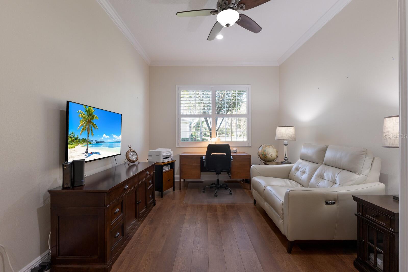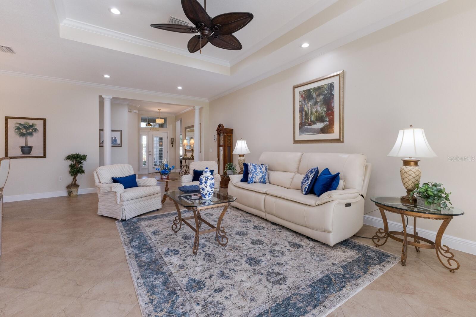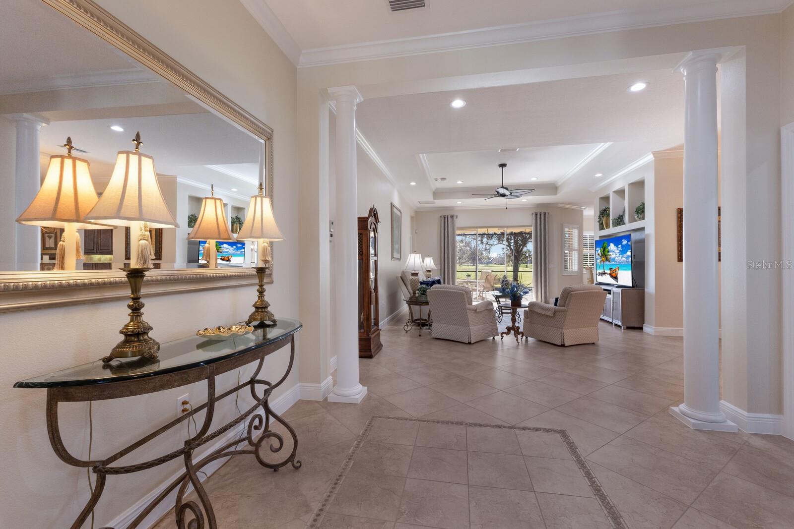 Descubra o charme do Country Club East em 14508 Stirling Drive, uma joia escondida situada na prestigiada comunidade de Lakewood Ranch. Esta residência deslumbrante, emoldurada pela beleza serena do quinto green do renomado campo Royal Lakes, convida você a um mundo de luxo e conforto. Ao passar pela elegante porta frontal de vidro com chumbo, você é recebido por um elegante hall de entrada adornado com requintados azulejos e colunas decorativas que dão o tom para esta casa meticulosamente projetada. A espaçosa sala familiar de conceito aberto possui tetos altos, sancas e nichos personalizados, criando uma atmosfera convidativa, perfeita para relaxamento e entretenimento. O coração da casa é a cozinha iluminada e arejada, com ricos armários de madeira, armários superiores com frente de vidro e elegantes bancadas de granito complementadas por um backsplash de azulejos de bom gosto. Os aparelhos de aço inoxidável garantem que cozinhar seja um prazer e uma brisa. Imagine organizar reuniões na área de entretenimento ao ar livre, completa com piscina aquecida e spa, onde tardes preguiçosas e vistas do pôr do sol se tornam a sua realidade cotidiana. Esta versátil casa de três quartos e dois banheiros também inclui uma sala que pode se adaptar facilmente ao seu estilo de vida - seja um escritório doméstico produtivo ou um recanto de leitura tranquilo. Com porcelanatos de 20 polegadas fluindo pelas principais áreas de estar e elegantes azulejos com aparência de madeira nos quartos, a elegância é evidente a cada passo. Uma garagem de grandes dimensões para dois carros oferece amplo armazenamento. A comunidade Belleisle melhora seu estilo de vida com piscina, spa, área de churrasqueira e clube próprios. Para ainda mais lazer, aproveite o acesso ao The Retreat – completo com piscina estilo resort, academia, sala de jogos e parque. Com a adesão opcional ao Lakewood Ranch Country Club, você pode desfrutar das ofertas exclusivas do The Lodge para jantares e eventos sociais. Não perca a oportunidade de experimentar esta casa excepcional - agende hoje mesmo sua exibição privada e abrace o estilo de vida que você sempre sonhou!