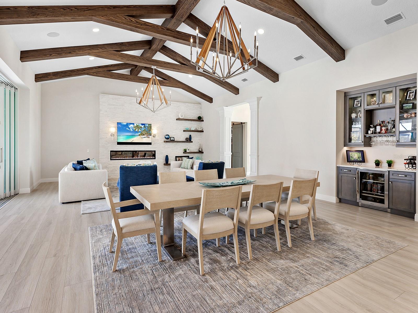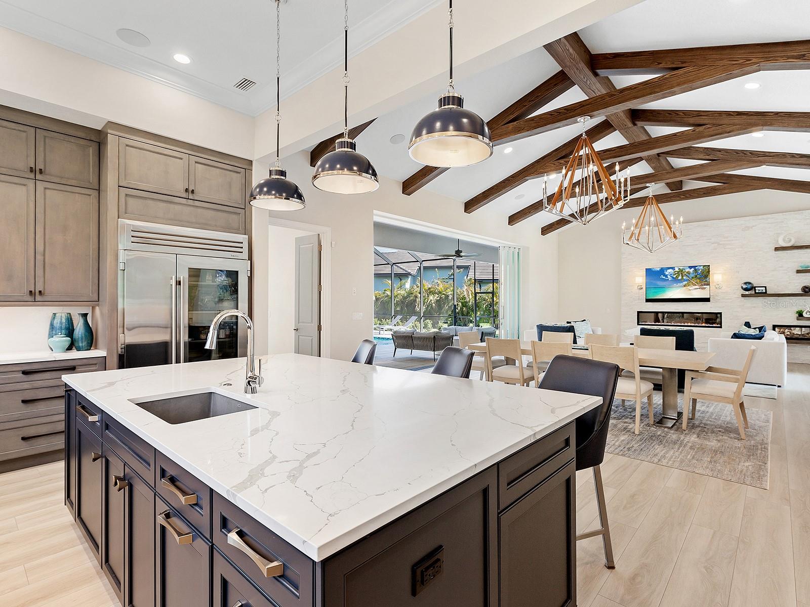 Esta casa está sendo oferecida em uma casa personalizada de 2023 totalmente mobiliada é uma das mais elegantes e luxuosas da concessão. Senta -se em um lote de grandes dimensões com uma garagem circular de pavimentadora e paisagismo atualizado com iluminação. A fachada contemporânea de pedra com iluminação cria uma entrada impressionante, levando a portas dianteiras de vidro de impacto. A grande sala possui um teto abobadado com vigas, uma parede de sotaque de pedra com prateleiras flutuantes e uma lareira linear elegante, som surround atualizado e uma parede de controles deslizantes de bolso. A área de jantar aberta possui uma barra seca com uma bancada de quartzo, armários e um refrigerador de vinho. A cozinha possui armários de altura de teto e utensílios de aço inoxidável, incluindo uma geladeira True®, a cozinha a gás Wolf® de quatro queimadores, forno de parede, microondas e um capuz de ventilação. Duas lava -louças de Cove® e uma pia da fazenda estão posicionadas sob janelas amplas. A ilha de grandes dimensões possui bancadas de quartzo, assentos, armários, pia de preparação e iluminação pendente de grife. A despensa espaçosa oferece armários de vidro de chuva, bancadas de quartzo e uma geladeira adicional. A sala de bônus versátil possui um teto personalizado com vigas, controles deslizantes de bolso com canto zero e papel de parede de grife. O escritório tem embutido e portas de celeiro. A suíte primária possui um lustre de designer, janelas grandes e uma porta de vidro que fornece acesso privado ao Lanai. Um closet de grandes dimensões e organizado personalizado completa o espaço. O maravilhoso banheiro possui um teto abobadado com vigas, um chuveiro de grandes dimensões com 4 chuveiros, ladrilhos deslumbrantes com um embutimento de seixos, enquanto a banheira de imersão independente está posicionada perto de grandes janelas. A expansiva vaidade flutuante com iluminação abaixo tem duas pias, bancadas de quartzo Zodiac® e hardware de ouro. 2 suítes convidadas têm armários e banhos de suíte com vaidades impressionantes e bancadas de quartzo Zodiac®. As portas de vidro deslizantes levam a um pátio privado. Duas suítes convidadas bem equipadas completam a residência. Um convidado espaçoso Casita oferece um banheiro completo com uma vaidade com duas pias, bancadas de quartzo, espelhos iluminados e um chuveiro de vidro com azulejo personalizado. Há também uma barra molhada com armários personalizados, bancadas de quartzo e um refrigerador de bebidas. O Lanai Lanai tem uma cozinha ao ar livre com uma grade ao ar livre, um capuz de ventilação, um refrigerador de bebidas e uma pia, bancadas em granito, um backsplash de ladrilhos e iluminação pendente. A piscina de água salgada aquecida e o spa estão completas com uma prateleira solar. A tela panorâmica oferece uma vista para o lago das áreas de jantar e descanso. O conveniente banho de piscina tem uma vaidade com bancadas de quartzo e uma parede de sotaque de shiplap. A lavanderia possui 2 arruelas e secadoras, uma pia de fazenda de aço inoxidável, uma fabricante de gelo, bancadas de quartzo, armários amplos e áreas de dobragem e suspensão. O manobrista perto da garagem possui uma área de entrega personalizada com um banco e uma parede de destaque. Esta casa é aprimorada ainda mais com os tetos alfandegários, com molduras de coroa por toda parte, tratamentos de janelas de grife, piso de tábua de vinil de luxo nas principais áreas de estar e quartos, um gerador de casa inteira, armazenamento amplo, iluminação e tons de controle remoto, isolanato de isolamento e sistema de osmose reversa inteira. Há uma garantia de empreiteiros até outubro de 2025. A concessão, o lar do Campeonato Mundial de Golfe do PGA Tour 2021 e a 2023 PGA World Champions Cup, é uma das comunidades de golfe de maior prestígio do país e fornece o cenário perfeito para quem admira um ambiente sereno e tranquilo.