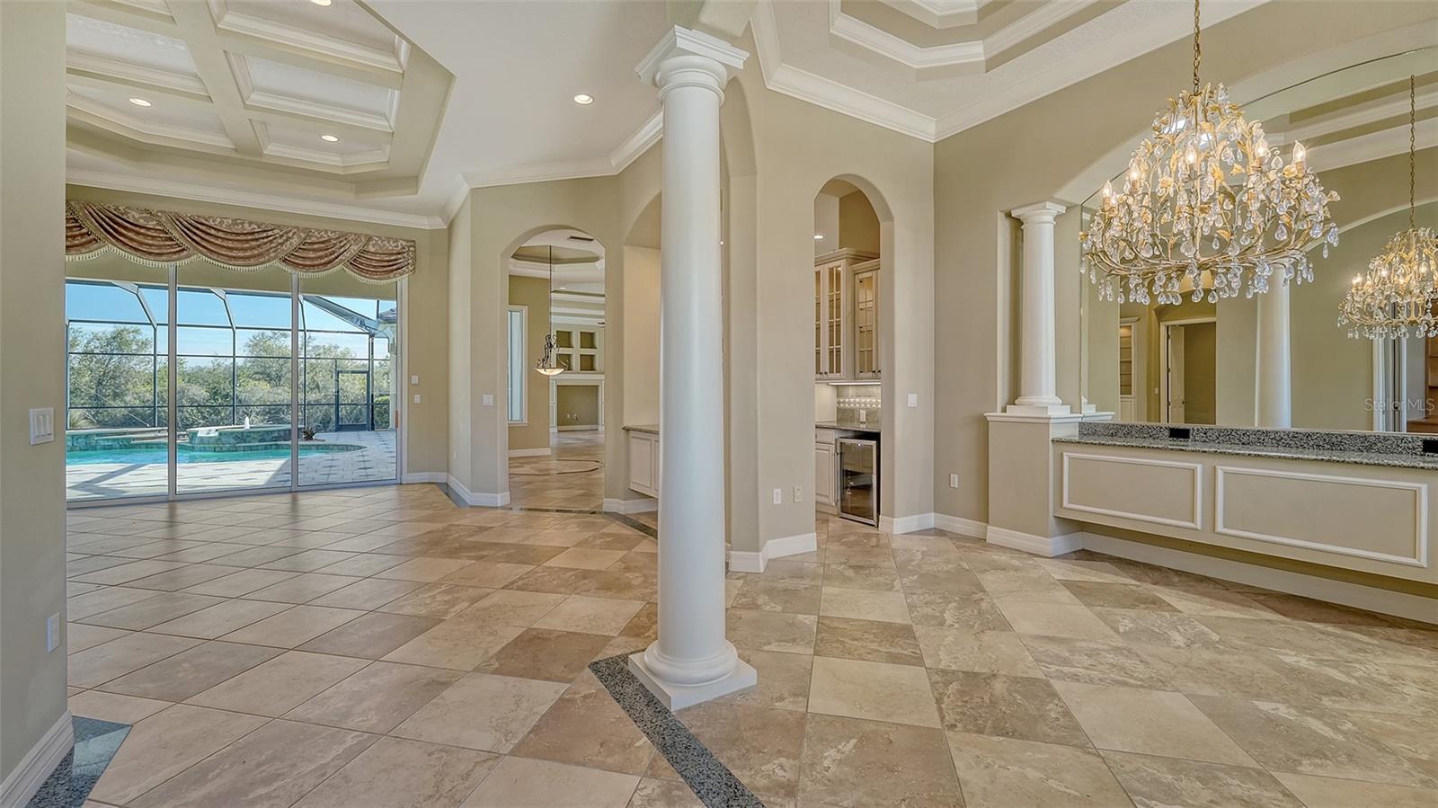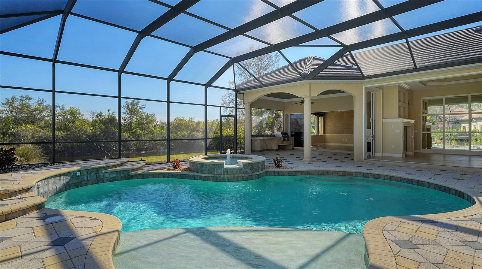 Novo lindo telhado de ladrilhos planos foi instalado! (Maio de 2025) No bairro de Legends Walk, procurado do prestigiado Lakewood Ranch Golf & Country Club, esta ex-modelo Peregrine Oferece pouco menos de 3.800 pés quadrados de elegância casual e fornece o Ideal Country Club e o Lakewood Ranch Lifestyle. A elevação do estilo neoclássico com seu paisagismo exuberante e uma entrada circular de pavimentadora de tijolos fornece um apelo acolhedor. Ao entrar em sua planta baixa, aberta e espaçosa de Hampton, com tetos altos, você é imediatamente capturado por seu charme. This gem offers three bedrooms, three full and one half bath, a three-car 23-by-28-foot garage, an office/study that boasts built-in book shelves and a desk, a bonus/flex room in the rear of the home affording serene lake and preserve views, a formal living room with a granite and stone-facing fireplace, a formal dining room, a family gathering room in the heart of the home with tall sliders opening to the pool for inside and outside blending, e a cozinha deliciosa de um chef gourmet com armários brancos em painel elevado, uma geladeira abaixo de zero de 36 polegadas e um freezer de 36 polegadas, um forno de parede dupla com convecção de vantagens, opções convencionais de cozimento em microondas, uma despensa de aço de aço e uma ilha central distintiva com bate-pau de grãos neutrais de 1,25 polegada. Os detalhes em toda a casa incluem telhas de porcelana de 20 por 20 polegadas, pisos de madeira personalizados na sala de bônus e no escritório e piso de madeira nos quartos, compromissos arquitetônicos detalhados, molduras de coroa, persianas de plantações, luminárias de grife, fãs de teto decorativo e tetos altos, com teto ainda mais altos, que fabricam os quartos. Other features include a new water heater in 2024, two air-conditioning units with one replaced in 2022, a wet bar between the kitchen and dining room with glass display cabinetry and a wine refrigerator, a fenced dog run, tall sliders which provide seamless access to the expansive outdoor private retreat that offers a heated pool and spa, a built-in GE Monogram grill, a stone fireplace, extensive open and undercover spaces all overlooking a private and lago pacífico com um cenário de reserva atrás dele. O retiro do proprietário tem sua ala privada com uma porta para o Lanai, dois armários personalizados da Califórnia, pias duplas e apresenta um luxuoso banho de spa com uma opulenta área de banheira romana com deck de mármore. A LWR Golf & CC oferece associações não obrigatórias em diferentes níveis de comodidade, incluindo quatro cursos de campeonato de 18 buracos, tênis, pickleball, refeições finas e casuais e dois restaurantes, clubhouse, fitness center e piscina. Perto de compras, restaurantes, golfe público, locais culturais de Sarasota e suas praias premiadas. Esta casa é imperdível!