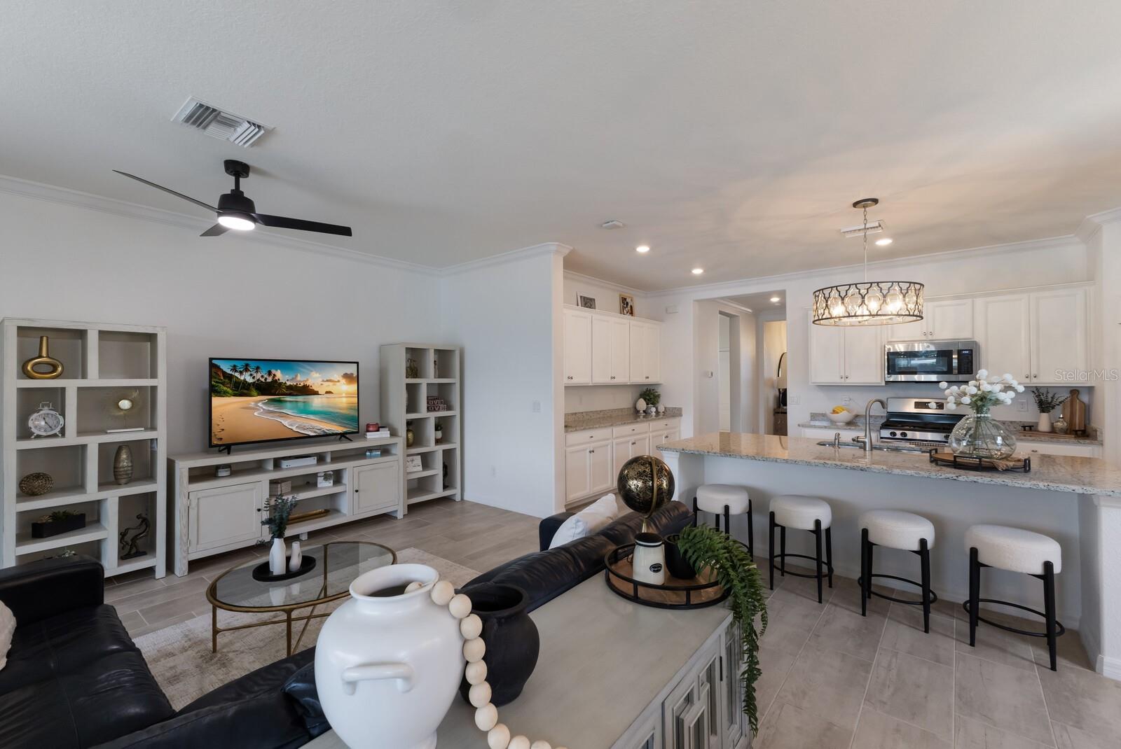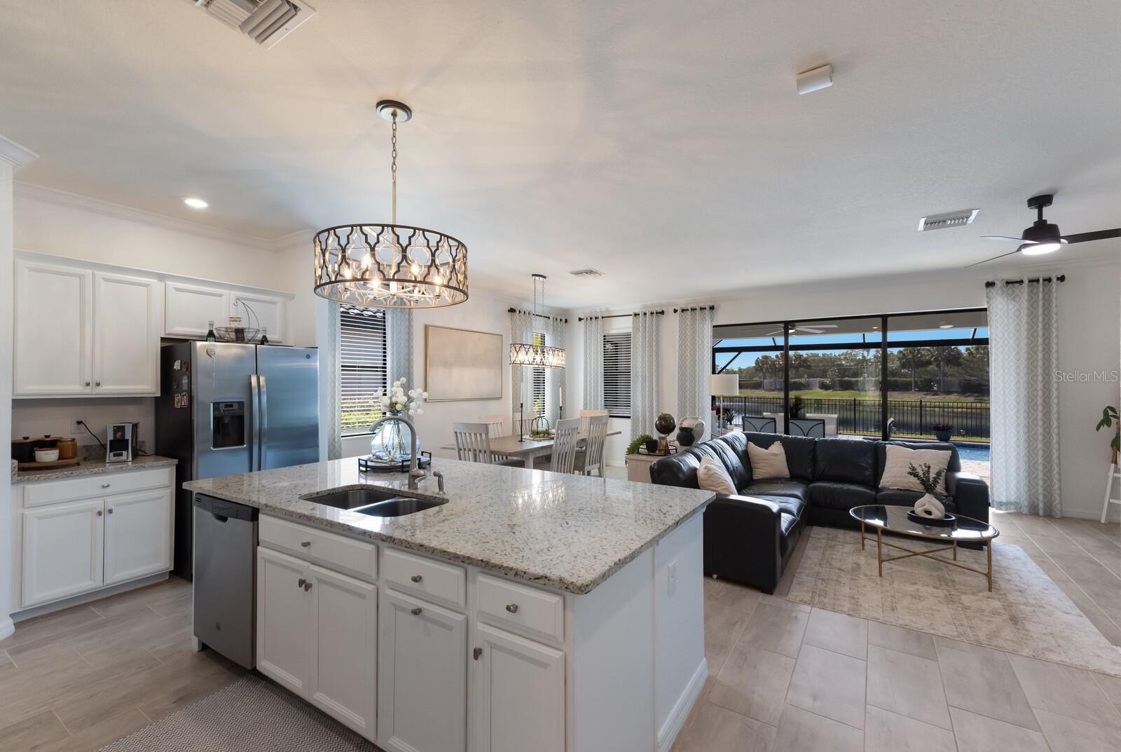 Uma ou mais fotos foram virtualmente encenadas. A casa pode ser adquirida TOTALMENTE MOBILIADA se desejar!! BEM-VINDO a este IMPRESSIONANTE condomínio Marsala de 3 quartos + arrumos e 3 banheiros da Lennar, localizado no muito procurado condomínio fechado e movido a energia solar de Polo Run em Lakewood Ranch!!! A partir do momento em que você entra, você ficará impressionado com o layout cuidadoso, os acabamentos atualizados e as vistas serenas do lago. Na frente da casa você encontrará 2 quartos de áreas generosas, cada um com seu banheiro completo, tornando-a perfeita para família ou convidados. Uma sala ESPAÇOSA com portas duplas oferece o local ideal para um escritório doméstico, sala de jogos ou sala de mídia. O coração da casa possui uma cozinha de conceito aberto com bancadas em granito, uma ILHA com pia dupla de aço inoxidável e bancada, eletrodomésticos de aço inoxidável e uma abundância de armários para bastante armazenamento. A área de jantar adjacente, que pode ser usada para refeições casuais ou formais, faz uma transição perfeita para a luminosa e espaçosa sala de estar com muitas janelas e um controle deslizante de painel triplo que se abre para o seu oásis PRIVADO no quintal. Escondida no lado oposto da casa para maior privacidade, a suíte do proprietário possui um closet e um LUXUOSO banheiro privativo completo com pias duplas, uma relaxante banheira de jardim e um box amplo de vidro. Saia para sua varanda tranquila, coberta e protegida com pavimentação PERSONALIZADA, piscina de água salgada aquecida e spa... tudo com vista para o lago tranquilo através de uma tela PANORÂMICA desobstruída. Esteja você organizando uma reunião ou relaxando com uma taça de vinho, este espaço é o refúgio definitivo. O quintal totalmente CERCADO também oferece uma área segura para animais de estimação brincarem. Atualizações adicionais incluem piso de cerâmica ELEGANTE em todas as principais áreas de estar, iluminação e ventiladores de teto atualizados e painéis solares com eficiência energética que ajudam a manter suas contas de energia elétrica baixas, ao mesmo tempo que apoiam um estilo de vida sustentável. Polo Run oferece vida em estilo resort com uma lista impressionante de comodidades, como um clube moderno, piscina em estilo resort, academia de ginástica de última geração, quadras de tênis e pickleball, basquete, bocha, parque para cães e playground, tudo incluído com uma baixa taxa HOA. Lakewood Ranch é conhecido por seu sistema escolar com classificação A+ e está perfeitamente localizado a uma curta distância de carro do centro de Sarasota, St. Pete, lojas de classe mundial, restaurantes requintados e das FAMOSAS praias do Golfo! Não perca a chance de viver em uma das comunidades movidas a energia solar do Lakewood Ranch, com luxo e conveniência sem manutenção e comece seu estilo de vida na FLÓRIDA!