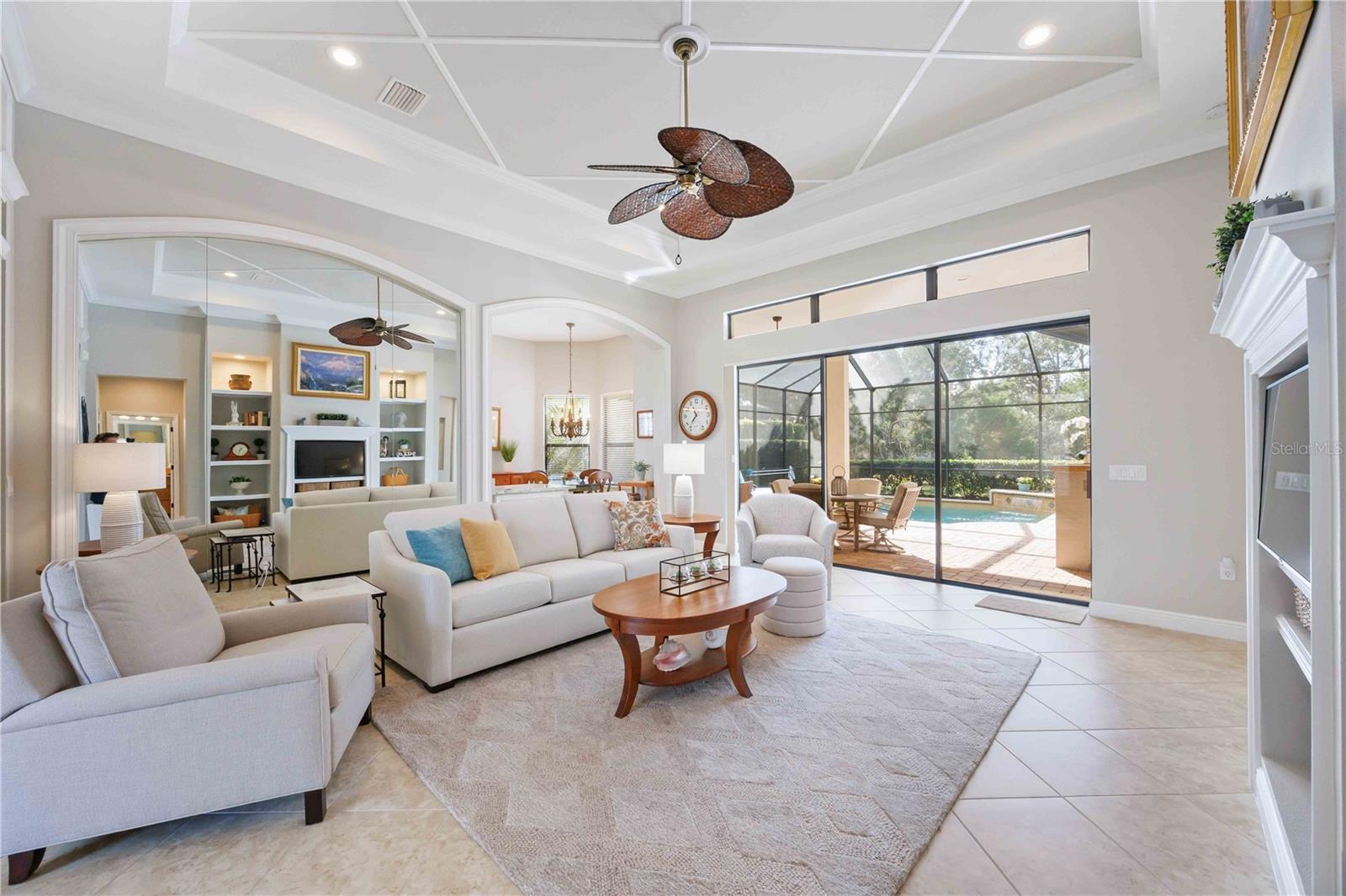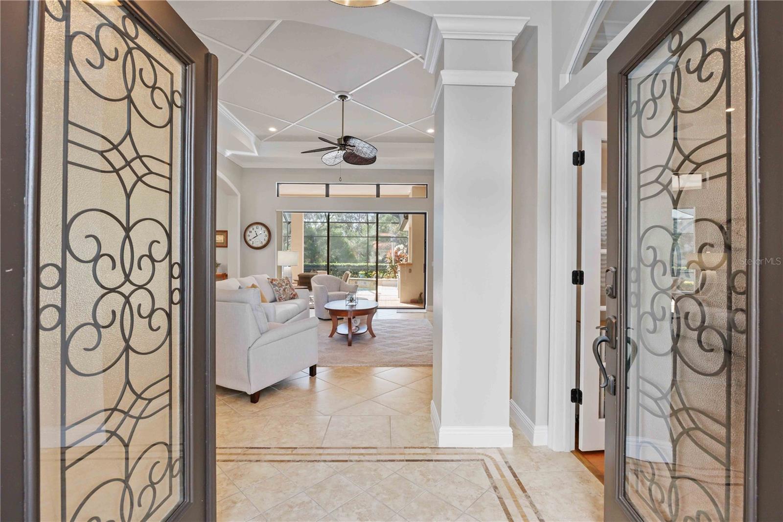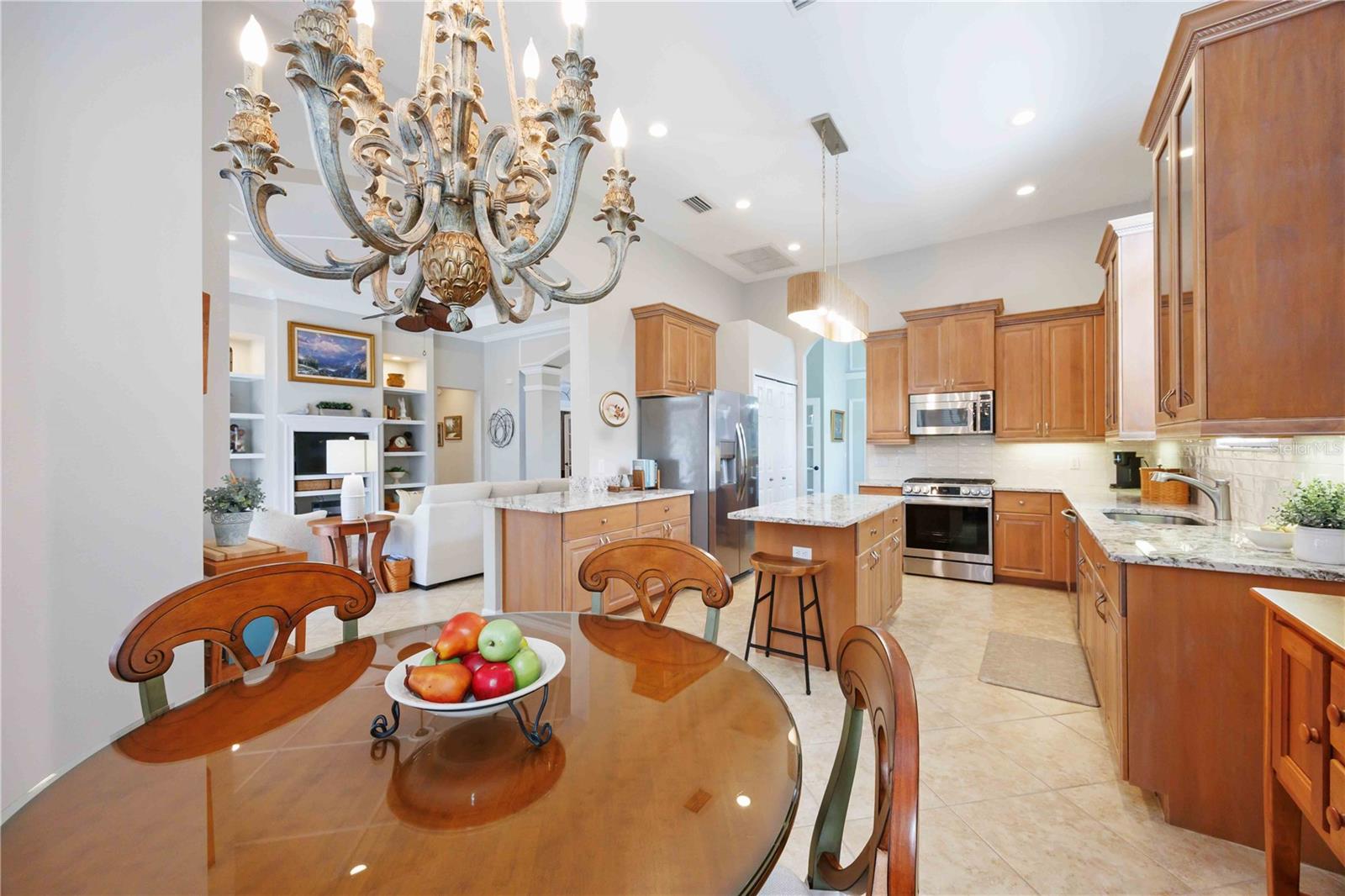 Viva requintadamente no Lakewood Ranch Country Club! Experimente uma vida elevada nesta residência de planta baixa de Tresana construída por Neal, oferecendo dois quartos mais um salão (ou terceiro quarto opcional) no conhecido Lakewood Ranch Country Club. Perfeitamente posicionada ao longo de uma vegetação exuberante, esta casa combina harmoniosamente um design atemporal com a elegância do dia a dia. Uma desejável exposição ao sul preenche a planta aberta com luz natural, destacando as vistas do sereno cinturão verde e do ambiente natural privado. Entre para encontrar quartos espaçosos, tetos abobadados e em caixotões, sancas, arcos arquitetônicos e embutidos de alta qualidade - cada detalhe criado para impressionar. Divirta-se sem esforço na sala de jantar formal com buffet embutido personalizado ou relaxe na graciosa sala de estar, onde portas deslizantes de vidro se abrem perfeitamente para a piscina cintilante e a varanda. A cozinha gourmet possui bancada em granito, uma grande ilha central, eletrodomésticos em aço inoxidável, fogão e forno a gás, despensa grande e uma charmosa copa com vista para a piscina e jardins recém-paisagísticos. A suíte principal é um retiro privado, completo com dois closets, acesso direto à varanda e um luxuoso banheiro inspirado em spa com bancadas de quartzo, pias duplas, um amplo box amplo e um vaso sanitário privativo que também funciona como um conveniente banheiro de cabana. Ao ar livre, desfrute do relaxamento em estilo resort sob a varanda protegida, cercado pela exuberante folhagem da Flórida – perfeito para tardes tranquilas ou encontros noturnos elegantes. Os recursos adicionais incluem um sistema de ar condicionado mais recente, piso de garagem com acabamento em epóxi e vida livre de manutenção, permitindo que você aproveite ao máximo o estilo de vida refinado do Lakewood Ranch. Situado em um condomínio fechado e seguro, o Lakewood Ranch Country Club é conhecido por sua beleza natural, cenário social vibrante e pelo conhecido Legacy Golf Course, projetado por Arnold Palmer.