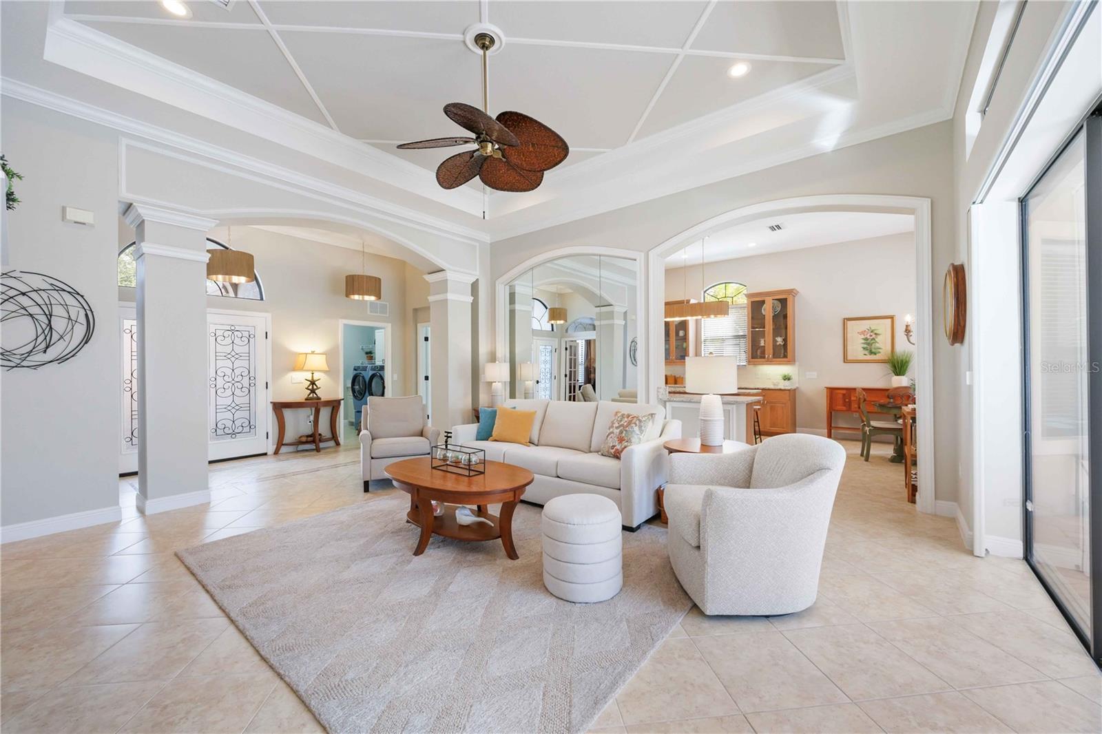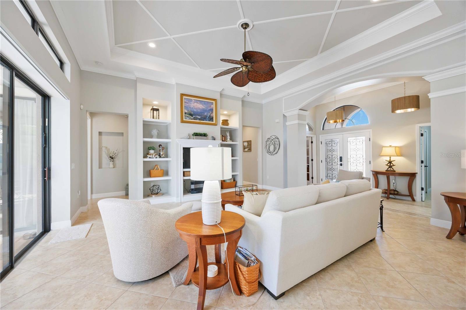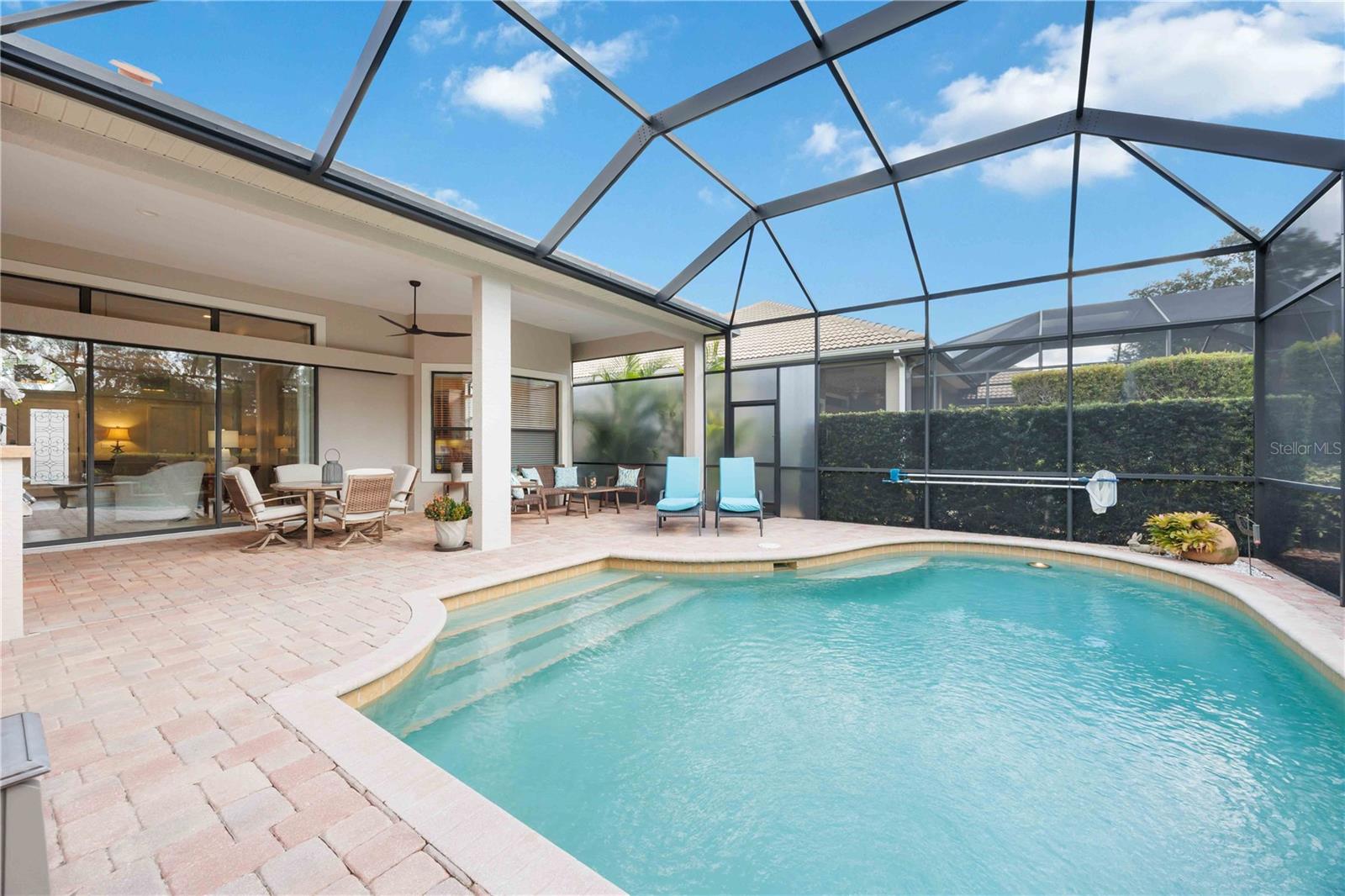 Viva requintadamente no Lakewood Ranch Country Club! Experimente uma vida elevada nesta residência de planta baixa de Tresana construída por Neal, oferecendo dois quartos mais um salão (ou terceiro quarto opcional) no conhecido Lakewood Ranch Country Club. Perfeitamente posicionada ao longo de uma vegetação exuberante, esta casa combina harmoniosamente um design atemporal com a elegância do dia a dia. Uma desejável exposição ao sul preenche a planta aberta com luz natural, destacando as vistas do sereno cinturão verde e do ambiente natural privado. Entre para encontrar quartos espaçosos, tetos abobadados e em caixotões, sancas, arcos arquitetônicos e embutidos de alta qualidade - cada detalhe criado para impressionar. Divirta-se sem esforço na sala de jantar formal com buffet embutido personalizado ou relaxe na graciosa sala de estar, onde portas deslizantes de vidro se abrem perfeitamente para a piscina cintilante e a varanda. A cozinha gourmet possui bancada em granito, uma grande ilha central, eletrodomésticos em aço inoxidável, fogão e forno a gás, despensa grande e uma charmosa copa com vista para a piscina e jardins recém-paisagísticos. A suíte principal é um retiro privado, completo com dois closets, acesso direto à varanda e um luxuoso banheiro inspirado em spa com bancadas de quartzo, pias duplas, um amplo box amplo e um vaso sanitário privativo que também funciona como um conveniente banheiro de cabana. Ao ar livre, desfrute do relaxamento em estilo resort sob a varanda protegida, cercado pela exuberante folhagem da Flórida – perfeito para tardes tranquilas ou encontros noturnos elegantes. Os recursos adicionais incluem um sistema de ar condicionado mais recente, piso de garagem com acabamento em epóxi e vida livre de manutenção, permitindo que você aproveite ao máximo o estilo de vida refinado do Lakewood Ranch. Situado em um condomínio fechado e seguro, o Lakewood Ranch Country Club é conhecido por sua beleza natural, cenário social vibrante e pelo conhecido Legacy Golf Course, projetado por Arnold Palmer.