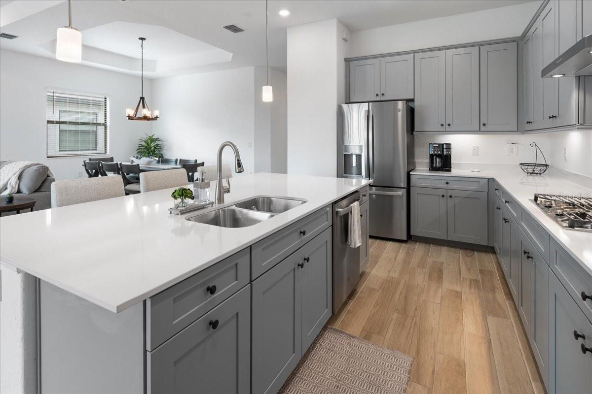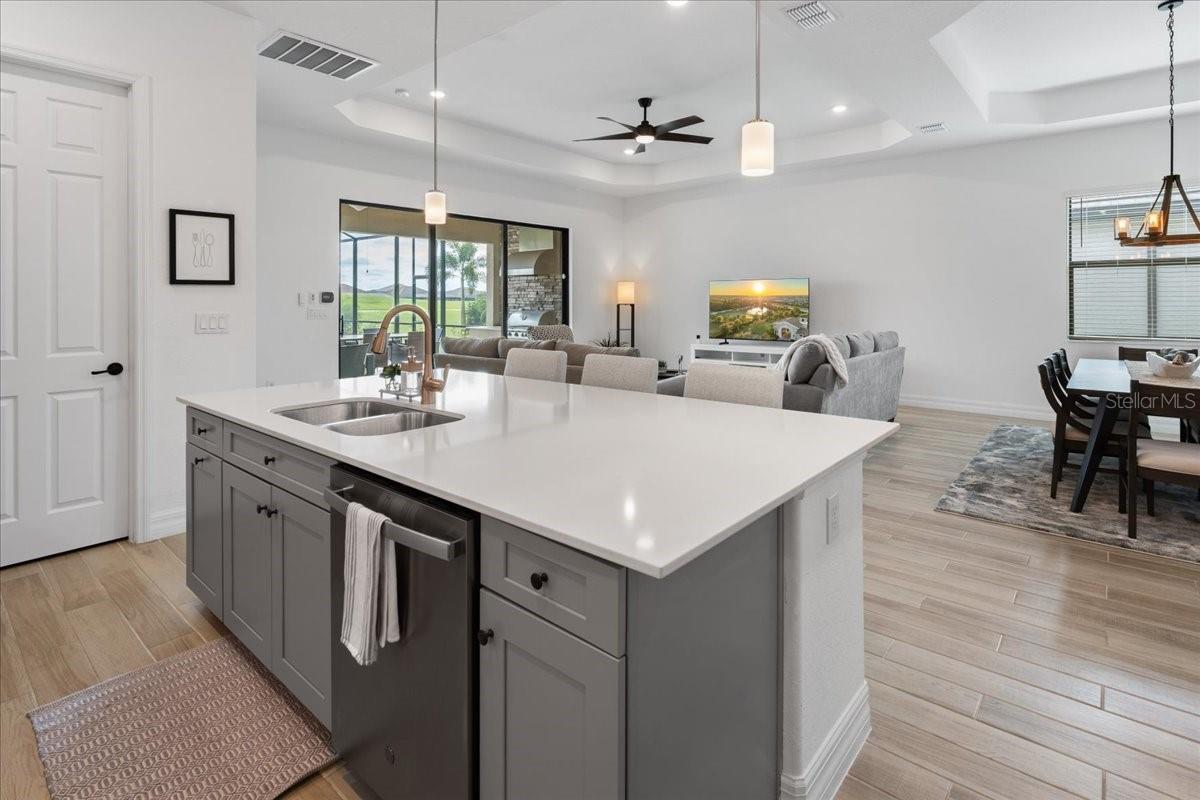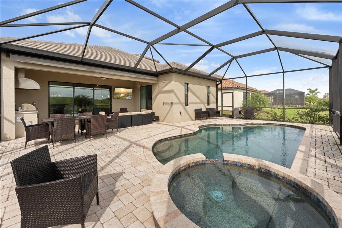 Vista para golfe, água e nascer do sol com verdadeira privacidade no quintal! Construído em 2022, este excepcional modelo Catalina em Lakewood National oferece 2.868 pés quadrados, 4 quartos, 4 banheiros completos e uma rara suíte bônus no segundo andar para maior flexibilidade. Semelhante em layout ao tão procurado Maria, o retiro no andar de cima cria o espaço perfeito para convidados, uma sala de mídia/jogos ou um escritório doméstico privado. Projetada para conforto e funcionalidade, a casa possui piso de tábuas de cerâmica em todas as principais áreas de estar, sistemas de armários personalizados em todos os quartos e uma entrada estendida de 6 pés para estacionamento adicional. Logo na entrada, dois quartos são conectados por um banheiro Jack-and-Jill, incluindo um quarto versátil atualmente usado como escritório com uma cama Murphy personalizada enfiada em estantes embutidas e piso de madeira aconchegante. Um corredor separado no lado oposto da casa leva à lavanderia com armazenamento adicional e a um terceiro quarto com banheiro privativo - ideal para hóspedes ou residências multigeracionais. No coração da casa, a cozinha aberta é feita para entreter com bancadas de quartzo, eletrodomésticos de aço inoxidável, uma grande ilha central, despensa e armários abundantes. As salas de jantar e familiares fluem perfeitamente para a varanda coberta, onde a vida na Flórida brilha: uma cozinha de verão, piscina e spa, e vistas amplas do 15º buraco do Piper Course. Um guarda-sol retrátil de 3 metros acrescenta conforto e cria diversão ao ar livre durante todo o ano. A suíte principal com localização privativa oferece acesso à varanda através de portas deslizantes, dois armários personalizados e um banheiro inspirado em spa com banheira de imersão, box amplo, pia dupla e vaso sanitário separado. No andar de cima, a suíte bônus inclui bar molhado e banheiro completo, tornando-a um refúgio ideal para visitantes ou um espaço flexível privado. Os destaques adicionais incluem janelas com proteção contra impacto e garagem para 2 carros com racks de armazenamento montados no teto. Lakewood National é o único condomínio de golfe de 36 buracos projetado por Arnold Palmer em Lakewood Ranch, onde todos os proprietários desfrutam de comodidades em estilo resort, incluindo um grande clube, restaurantes, piscina em estilo lagoa com raias e cachoeira, bar Tiki, spa de luxo e academia de ginástica, tênis, pickleball, bocha e instalações para prática de classe mundial - além de segurança fechada 24 horas. Localizado no coração do premiado Lakewood Ranch, você está perto de trilhas, parques, lojas, restaurantes, eventos e escolas de primeira linha. Agende sua exibição privada hoje mesmo!