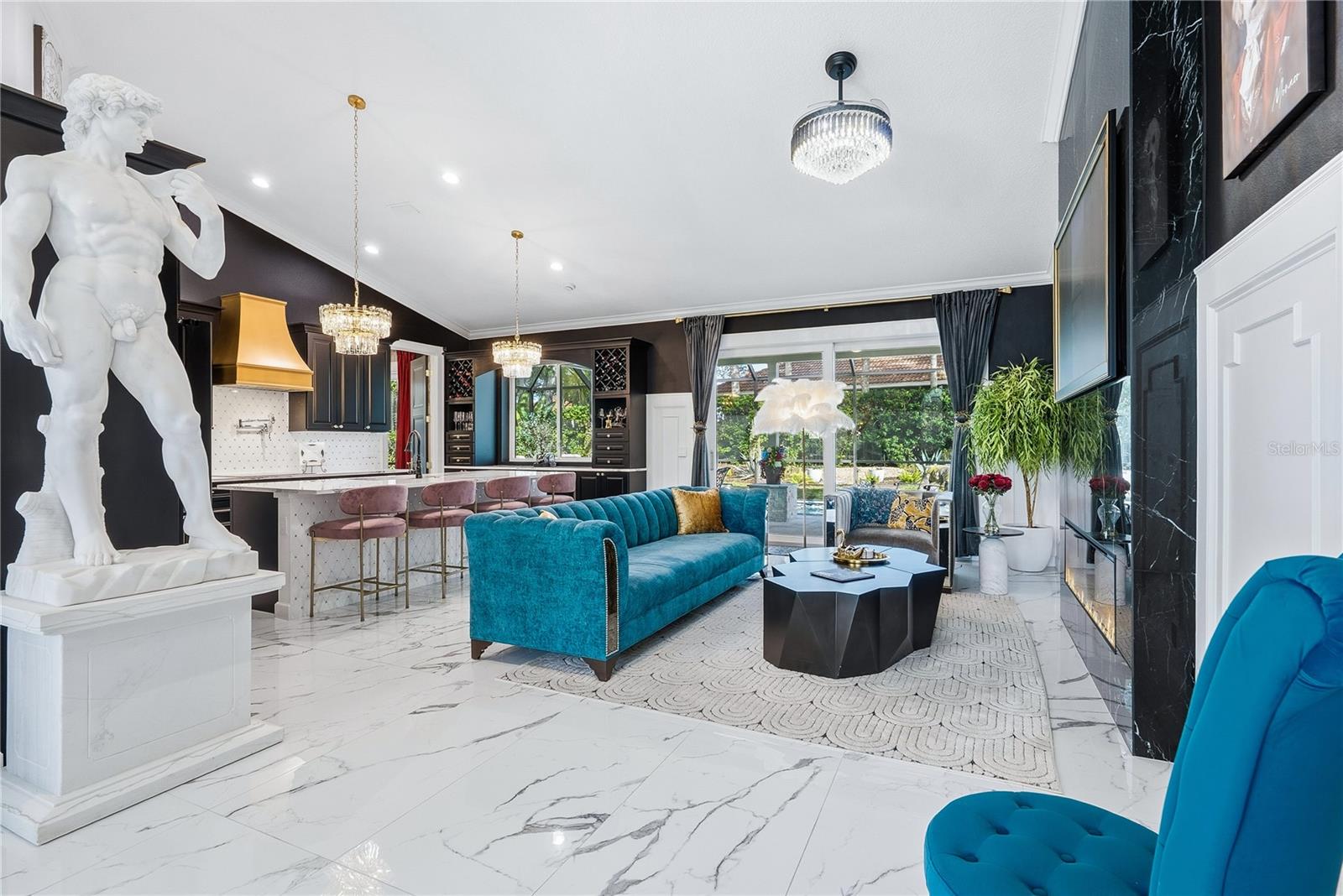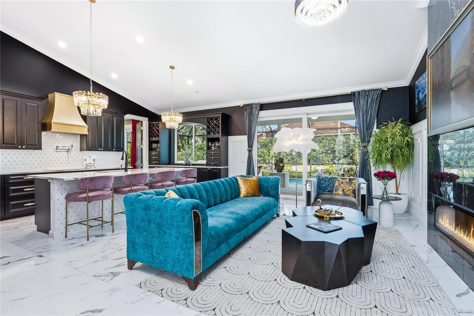 Extraordinária casa com piscina de design apresentando mais de US$ 750.000 em atualizações, esta residência de 2 quartos e 2 banheiros oferece 1.675 pés quadrados de espaço impecavelmente selecionado, onde cada detalhe foi cuidadosamente selecionado do chão ao teto. Verdadeiramente uma casa inteligente “imperdível”, que combina elegância, tecnologia e conforto. A partir do momento em que você chega, você é recebido por portas frontais em arco de ferro de design, paisagismo tropical exuberante com detalhes em pedra e iluminação elegante, além de janelas e portas com proteção contra impacto por toda parte. No interior, pisos de porcelanato de 24" x 48", tetos abobadados, entradas com acabamento em madeira, portas de núcleo sólido de 8', sancas e rodapés de 5¼" dão o tom para uma vida refinada. A deslumbrante cozinha de conceito aberto é uma peça de exibição, com ricos armários de madeira maciça com ferragens de design, bancadas de quartzo, uma ilha na altura da cadeira, backsplash de azulejos personalizados que se estende até a frente da ilha, armários de buffet, despensa com estação de café embutida e linha de água encanada, enchimento de panelas, elevador de eletrodomésticos, pia de aço inoxidável tipo açougueiro, gavetas com fechamento suave e eletrodomésticos de aço inoxidável, incluindo um exaustor de latão personalizado. A grande sala impressiona com uma parede de TV com detalhes em mármore, detalhes de parede personalizados e controles deslizantes que levam à varanda. Um embutido lindamente trabalhado destaca a área de jantar, enquanto a sala apresenta uma janela em estilo saliente com assentos e armazenamento, além de detalhes de teto personalizados. A suíte principal é um retiro privado com controles deslizantes para a varanda, teto em caixotões, molduras de parede aplicadas com papel de parede de designer, closets personalizados e uma banheira tipo spa com pias duplas de quartzo, espelhos decorativos, torre de linho, banheira de imersão com nicho e um luxuoso chuveiro com controles manuais compatíveis com Alexa. Uma porta “secreta” espelhada leva diretamente à lavanderia da suíte principal. A vida ao ar livre é excepcional, com uma piscina retangular de água salgada aquecida, deck de mármore, colunas de pedra e paisagismo exuberante, criando um ambiente privado em estilo resort. As características adicionais incluem isolamento de espuma em spray no sótão, pisos de garagem pintados, racks de armazenamento suspensos, escadas rebatíveis no sótão, geladeira de garagem, armário de armazenamento de sapatos, quatro TVs (sala grande, quarto principal, escritório e varanda), cofre no armário principal e uma estátua de David esculpida à mão na entrada que transmite com a casa. Esta joia é um “Uau” do chão ao teto!