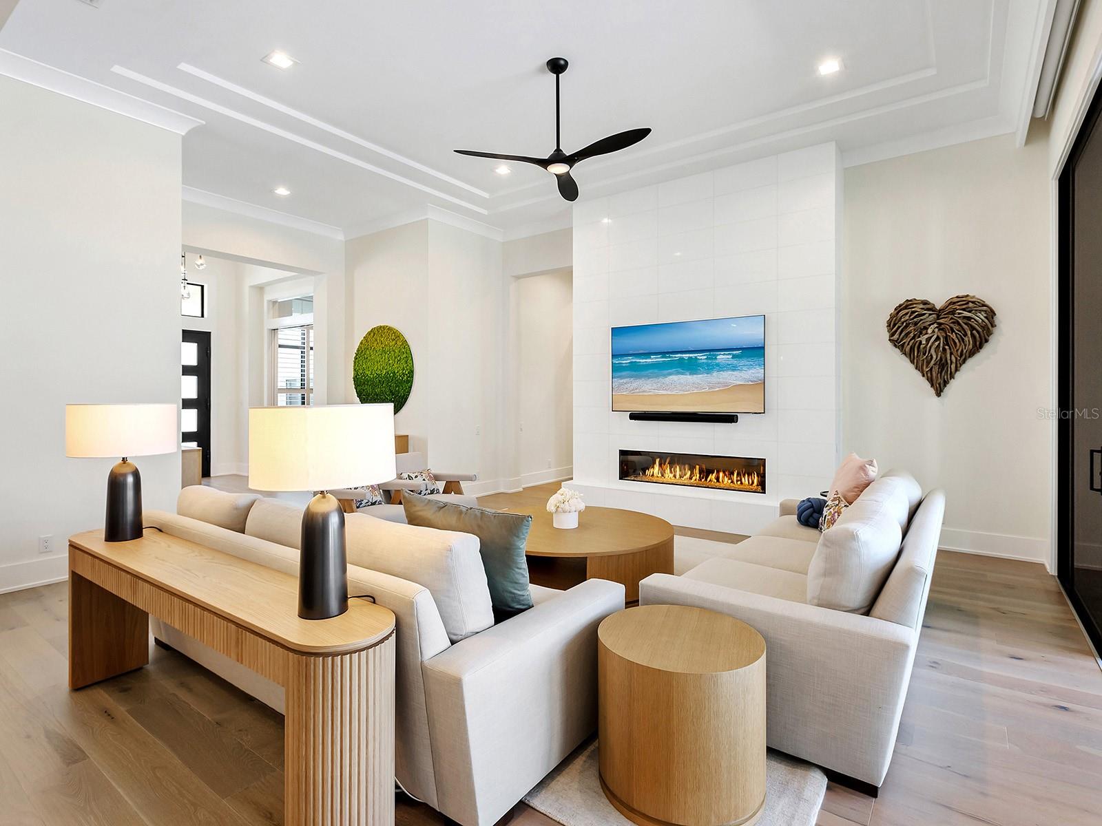 Posicionado em uma área generosa dentro de Star Farms, 4218 Butte Trail é uma residência Arthur Rutenberg de 2024 totalmente personalizada com vistas deslumbrantes do pôr do sol, do lago e da preservação. Abrangendo aproximadamente 6.488 pés quadrados sob o ar, oferecendo 4 quartos, 5 banheiros completos e 2 lavabos, cuidadosamente projetados para a vida cotidiana e para entretenimento em grande escala. Grandes portas de entrada dupla de ferro com vidro fosco e janelas altas de popa abrem para um hall de entrada cheio de luz, fluindo perfeitamente para a grande sala, escritório e sala de jantar formal. A grande sala apresenta um teto duplo, iluminação embutida, uma impressionante parede de mídia com azulejos brancos modernos e uma lareira linear, e paredes deslizantes que se abrem para a piscina e a água além, enquanto uma academia dedicada com sauna, banheiro privativo e janelas grandes criam um retiro de bem-estar privado. No coração da casa, a cozinha do chef possui vigas de teto expresso, uma grande ilha central, armários KitchenCraft®, ladrilhos de vidro azul-claro até o teto e eletrodomésticos premium, incluindo refrigeração Sub-Zero, fornos de parede dupla Wolf, fogão e exaustor de indução Wolf, lava-louças Cove e micro-ondas Wolf, junto com uma torneira Moen e uma pia subterrânea Blanco. Uma espaçosa despensa oferece prateleiras personalizadas, balcões generosos e uma geladeira secundária para café, enquanto a osmose reversa está convenientemente localizada na pia principal da cozinha. Perto dali, a copa abre através de controles deslizantes de canto zero para refeições ao ar livre. A sala de jantar formal se conecta a uma sala de vinhos envidraçada e a uma despensa com refrigerador de vinho e armários com painéis de vidro, enquanto o escritório privativo impressiona com tetos altos, lustres elegantes, janelas com venezianas e controles deslizantes foscos. A suíte principal é um retiro tranquilo com teto triplo, cinco janelas iluminadas pelo sol, closets personalizados (um com ilha central) e um banheiro inspirado em spa com banheira de imersão Kallista independente, pias duplas com área de maquiagem, chuveiro de vidro grande com recurso de chuva, capacidade de vapor e vaso sanitário privativo. No andar de cima, uma ampla escadaria leva a duas suítes de hóspedes com banheiros privativos e uma grande sala de bônus com bar molhado, gavetas refrigeradas, teto de bandeja, controles deslizantes de canto zero e vistas deslumbrantes do lago e da preservação, abrindo para um terraço coberto com teto macho e fêmea e piso de cerâmica com aparência de madeira. A vida ao ar livre rivaliza com um resort privado com uma varanda com tetos macho e fêmea, iluminação embutida, ventiladores de teto duplos, áreas de jantar e de estar, uma lareira linear externa, um balcão aquático e uma cozinha externa totalmente equipada com churrasqueira Wolf, pia e geladeira. A piscina de borda infinita e o spa são cercados por amplos decks de pavimentação com várias áreas de estar, uma discreta pista de corrida para cães e armazenamento dedicado na piscina com vista tranquila para o mar. Os destaques adicionais incluem persianas de plantação, persianas remotas Hunter Douglas, armazenamento abundante, um gerador para toda a casa, um sistema de filtragem e condicionamento de água para toda a casa, câmeras de segurança, um aquecedor de água sem tanque, garagens com acabamento em epóxi com baias separadas para dois carros, iluminação superior e fiação para quatro estações de carregamento de EV. Os residentes desfrutam dos centros de comodidades em estilo resort da Star Farms, com piscinas, instalações de ginástica, quadras de pickleball e tênis, parques para cães e trilhas panorâmicas para caminhada. Star Farms está idealmente localizado perto de praias de classe mundial, campos de golfe, instalações médicas de primeira linha e uma variedade de lojas e restaurantes.
