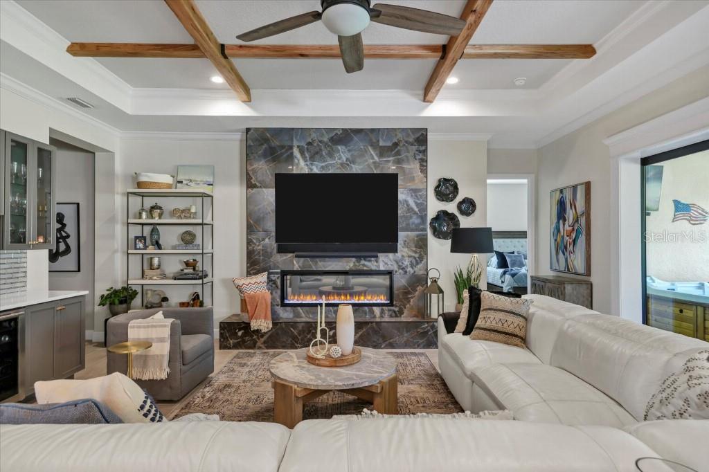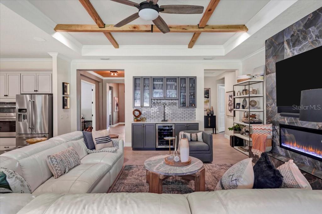 Imagem perfeita, você não quer perder esta casa! Este belo modelo de Silver Sky 2 construído no Silver 2 hospeda quatro quartos e um covil. Ele também tem uma garagem para três carros. Esta não é uma casa de cortador de biscoitos, muitas atualizações foram adicionadas. Indigo, é uma comunidade livre de manutenção. A manutenção do quintal da capa de baixa taxa de HOA, uma piscina de estilo resort, além de uma academia e um clube. Ao entrar na casa, você é recebido por um lindo hall de entrada que inclui tetos de língua e bosque, além de um olho de parede de destaque espelhado. A cozinha do chef possui uma linha de gás comercial da KitchenAid atualizada, além de uma unidade de forno de parede/microondas. A geladeira e a máquina de lavar louça são appliances KitchenAid recentemente atualizados. Espaçoso grande quarto tem um bar seco que inclui uma geladeira de vinho e uma parede de recursos com uma lareira. O teto dividido possui vigas lindas. O espaçoso quarto primário é um verdadeiro retiro que oferece dois espaçosos armários personalizados. O banheiro primário inclui uma grande caminhada no chuveiro com um piso de seixos, além de duplas vaidades. O quarto de hóspedes é um ótimo suíte para sogros ou mais. Inclui um chuveiro. A moldagem da coroa está na área principal da casa. As persianas de plantações estão na frente e na traseira da casa. Esta casa possui portas de 8 pés e tetos de 10 pés por toda parte. Todas as janelas são resistentes ao impacto e eficientes em termos energéticos. Lavanderia de grandes dimensões, incluindo respingo de ladrilho novo, contador dobrável e armários superiores. O espaçoso Lanai hospeda um controle deslizante de bolso triplo e uma nova banheira de hidromassagem incluída na casa.