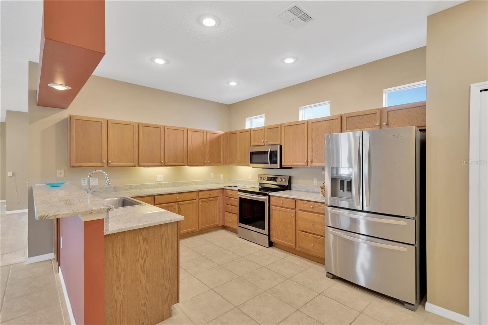 Uma ou mais fotos foram praticamente encenadas. Novo Ajuste de Preço ... Mudança pronta, espaçosa 3BR/2BA Clueard Home, construído pelas comunidades dos sonhos da Flórida. Plano de quarto dividido, cozinha para comer, barra de café da manhã, grande sala grande pode ser áreas de estar/jantar. Esta casa tem a garagem 2.5 com o espaço extra para carrinho de golfe ou uma oficina. Esta casa no pátio é destacada e inclui pintura externa, substituição do telhado e corte. A taxa de manutenção trimestral razoável também inclui todas as comodidades e internet da comunidade. A Home está localizada na comunidade de golfe popular, fechada e com mais de 55 anos, os bosques onde você pode desfrutar do campo de golfe projetado por Gary Koch, de 18 buracos, e do driving range separado. Não está no golfe? Há muito mais. Este é um ótimo lugar para caminhar, andar de bicicleta ou um carrinho de golfe. As grandes características da cozinha, as bancadas de granito mais recentes, pia grande, profunda e única inoxidável e torneira; Gabinetes inferiores mais recentes com puxar com prateleiras; Iluminação embutida, microondas embutidas, lindas geléias com estilo de porta francesa, gaveta do meio e freezer e lava-louças inoxidáveis Bosch. Dentro da sala de serviços públicos com lavador e secador mais recente e ventiladores de teto durante toda a casa. O quarto principal apresenta a janela de sacada opcional de frente para o quintal traseiro, grande closet. O banho mestre tem uma vaidade longa com pias duplas, chuveiro grande, piso de azulejos de cerâmica. O BR2 possui carpete, ventilador de teto e o BR3 foi usado como um escritório apresentando ventilador de teto, iluminação de pista e piso laminado mais recente. Desfrute da varanda traseira fechada da tela sob o telhado com vista para o quintal privado. Além disso, há muito armazenamento extra na garagem e uma tela de garagem com controle remoto (veja fotos). A área para estacionamento do carrinho de golfe também é uma ótima área de artesanato e o proprietário deixou a unidade portátil de A/C para esse espaço. Esta casa fica a uma curta distância das comodidades que fazem parte da experiência do Groves, incluindo clubhouse com restaurante, biblioteca, salão de cartas, salão de baile, compra profissional, equipamento de fitness e depois para o exterior é uma grande piscina de água salgada e spa, bocha, tênis/picles, falhas, parques de cães, jardim de borboletas, trilhas e golfe. Esta é uma ótima comunidade para desfrutar de um estilo de vida confortável e acessível de aposentadoria da Flórida