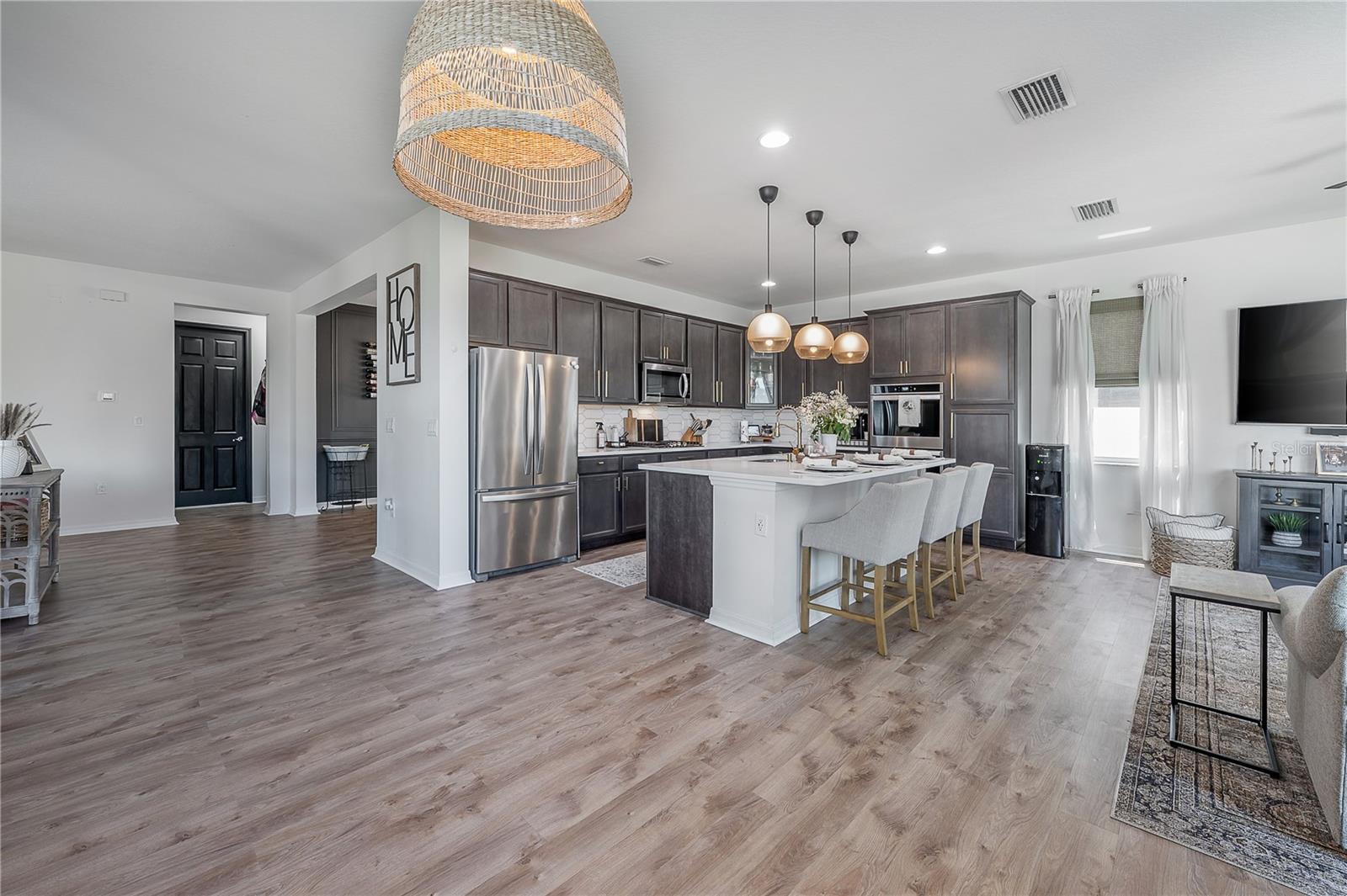 De volta ao mercado com novos pisos vinílicos de luxo!!! Bem-vindo ao seu retiro luxuoso no condomínio fechado de Lakeshore Ranch, onde cada detalhe foi cuidadosamente selecionado para seu conforto e conveniência. Esta deslumbrante casa de 6 quartos e 4 banheiros oferece amplo espaço para uma vida confortável. A cozinha do chef é uma delícia culinária, enquanto o design de conceito aberto conecta perfeitamente a sala de estar e a sala de família, ideal para receber convidados. Com quarto e banheiro no andar principal, a comodidade é priorizada. No andar de cima, um loft oferece espaço adicional para relaxamento ou entretenimento, oferecendo versatilidade para se adequar ao seu estilo de vida. A ampla varanda oferece um espaço tranquilo para relaxar e apreciar as vistas pitorescas das lagoas serenas, tornando-a o local perfeito para o café da manhã ou coquetéis à noite. O amplo quarto principal apresenta tetos em caixotões, adicionando um toque de elegância ao espaço. Dois closets oferecem amplo armazenamento para os itens essenciais do seu guarda-roupa. Relaxe no banheiro privativo equipado com chuveiro e banheira espaçosos, oferecendo a melhor experiência de relaxamento. A propriedade dispõe de gás natural, com fornecimento de gás e canalização no exterior para uma futura configuração de cozinha exterior. Como residente desta comunidade exclusiva, você terá acesso a uma variedade de comodidades, incluindo três piscinas em estilo resort para nadar e relaxar, quadras de tênis e basquete para se manter ativo, um playground para os mais pequenos, uma academia para manutenção sua rotina de bem-estar, clube e parque cercado para cães. Com uma garagem para três carros completando esta oferta excepcional, uma vida de luxo espera por você aqui. Agende seu passeio hoje mesmo!
