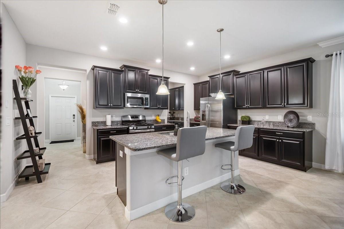 Esta casa em Land O Lakes é verdadeiramente uma joia, com 5 quartos espaçosos e uma encantadora área de loft, perfeita para diversas atividades, como uma noite de jogos ou uma maratona de filmes. Ao entrar, você é saudado por espaços luminosos adornados com pisos de cerâmica diagonais, adicionando um toque de elegância à casa. A sala de jantar formal prepara o cenário para reuniões memoráveis ao redor da mesa de jantar, enquanto a ampla sala Great oferece uma transição perfeita para a varanda com tela, criando um fluxo interno-externo ideal. A cozinha é o sonho de qualquer chef, com comodidades elegantes e funcionais, como fogão a gás, eletrodomésticos de aço inoxidável, balcões de pedra, despensa e uma conveniente despensa de mordomo. A suíte principal do primeiro andar é um santuário em si, oferecendo tetos falsos, um espaçoso closet e um luxuoso banheiro privativo completo com pias duplas, chuveiro e banheira de imersão para o máximo relaxamento. Além disso, há um lavabo no térreo para conveniência dos hóspedes. No andar de cima, você encontrará um generoso loft, proporcionando mais uma área de relaxamento ou entretenimento. Cada um dos quatro quartos secundários possui amplo espaço e closets, com um quarto convenientemente localizado próximo a um banheiro completo, perfeito para uma suíte de hóspedes. Lavatórios duplos nos banheiros secundários garantem que as manhãs corram tranquilamente, enquanto a inclusão de lavanderias em ambos os andares acrescenta comodidade extra às rotinas diárias. No exterior, a varanda estendida convida você a desfrutar do ambiente sereno, complementado por um pátio de bom tamanho para atividades ao ar livre e lazer. Belo quintal com espaço para adicionar uma piscina no futuro. MAIS A garagem Tandem para 3 carros oferece espaço extra para estacionamento e armazenamento. Esta casa é verdadeiramente um refúgio de conforto, conveniência e elegância moderna, convidando você a se apaixonar por suas características abundantes e design atencioso. Localização de Land O Lakes a poucos minutos de rodovias para seus deslocamentos. Desfrute de fácil acesso a opções de restaurantes e compras perto de Tampa Prime Outlets, The Grove e Krate! Este é o lugar para ligar para casa!