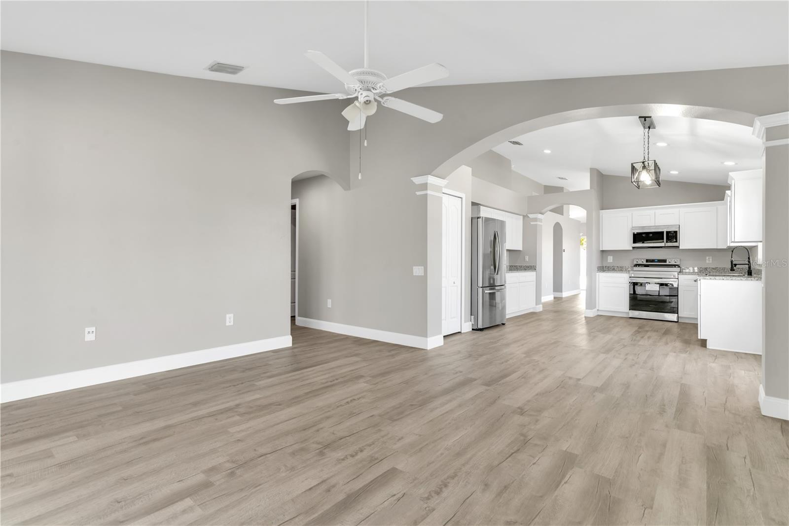 Uma ou mais fotos foram virtualmente encenadas. Preço para vender! De volta ao mercado devido ao fracasso do financiamento com o comprador anterior. Esta casa de 4 quartos e 2 banheiros na comunidade Landings at Bell Lake parece uma joia absoluta! Desde o paisagismo meticulosamente mantido até o interior convidativo repleto de características encantadoras, é evidente que esta casa foi cuidadosamente cuidada. Uma casa totalmente remodelada com telhado novo e AC de 2023 agrega ainda mais valor e tranquilidade para potenciais compradores. Não só mostra o cuidado e a atenção aos detalhes colocados na propriedade, mas também garante que os componentes principais, como o telhado e o ar condicionado, estejam em excelentes condições, reduzindo a probabilidade de despesas inesperadas num futuro próximo. Este nível de renovação e manutenção realça verdadeiramente o apelo da casa e torna-a uma opção ainda mais atractiva para quem procura um imóvel pronto a habitar. O interior dispõe de uma espaçosa sala de estar com muita luz natural, uma acolhedora área de jantar com uma acessório elegante e uma cozinha que qualquer chef adoraria, completa com bancadas de granito e eletrodomésticos de aço inoxidável de última geração. O quarto familiar oferece um espaço acolhedor para receber os hóspedes, com tetos altos e luxuoso piso de madeira laminada aumentando o charme. O quarto principal oferece piso laminado de madeira, ventilador de teto e closet de tamanho generoso, enquanto o banheiro principal adjacente é uma visão de elegância com penteadeiras separadas, banheira de jardim e chuveiro com azulejos deslumbrantes. Os quartos 2, 3 e 4 mantêm o ambiente convidativo, cada um oferecendo muita luz natural e armários de bom tamanho. Saindo para o espaçoso pátio com tela, você se depara com uma transição perfeita para a vida ao ar livre, perfeita para reuniões com a família e amigos. O quintal cercado oferece amplo espaço para companheiros peludos brincarem livremente. Localizada nos desejáveis Landings at Bell Lake Community, esta casa não só oferece características excepcionais, mas também oferece a combinação perfeita de conforto e estilo. Sem CDD e baixas taxas de HOA, além de sua localização conveniente perto das principais rodovias e shopping centers, esta residência realmente tem tudo. Não perca a oportunidade de personalizar esta linda casa!