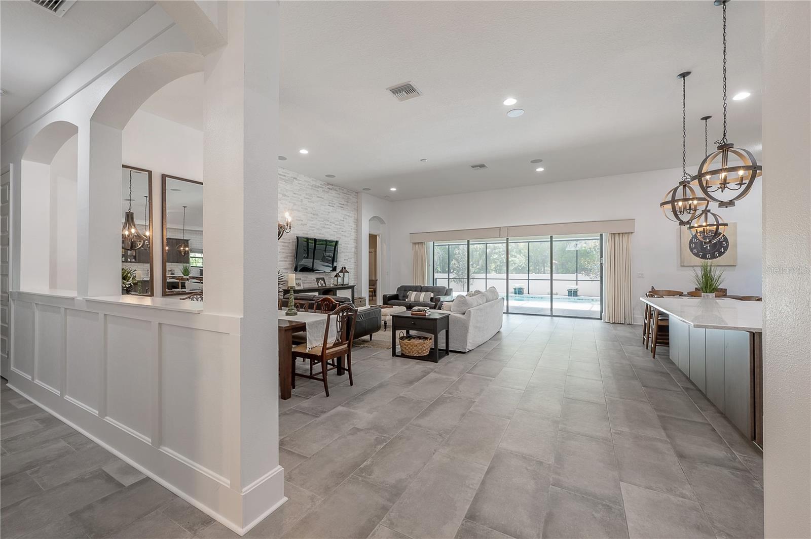 Bem-vindo a esta deslumbrante casa com vista para o lago construída por West Bay, situada em um terreno de esquina em um belo condomínio fechado. A localização desta casa é privilegiada dentro da comunidade, pois fica em uma esquina sem saída e do outro lado da rua do cais comunitário, tornando-a ideal para famílias e estacionamento extra! A palavra e tema comum para esta CASA é PERSONALIZADO; Acabamentos personalizados, azulejos, molduras e soluções de armazenamento; Todos os detalhes do Pinterest que farão seu coração cantar. Ao entrar, você é recebido por tetos altos e acabamentos personalizados que criam uma sensação imediata de grandeza. À direita da entrada, um corredor dá acesso a uma casa de banho e a um quarto confortável, perfeito para hóspedes ou para quem anseia por privacidade. Continuando para dentro da casa, você encontrará um grande espaço de escritório/sala de bônus adornado com duas impressionantes portas deslizantes de celeiro, oferecendo funcionalidade e charme. A partir daqui, entre na enorme planta aberta que conecta perfeitamente a cozinha, a área de jantar formal, a sala de estar e a copa. Embora este espaço certamente deixe você sem fôlego, deixe-nos entrar nos detalhes que certamente farão você se apaixonar perdidamente! A cozinha possui armários de madeira de 42" com sancas personalizadas, cercados por backsplash de azulejos do balcão ao teto, destinados a chamar a atenção e expandir o espaço visual! Os eletrodomésticos de aço inoxidável são complementados pelas lindas bancadas de quartzo em toda a cozinha, incluindo a mesa -espaço de alimentação anexo à ilha (Genius)! A despensa de canto completa a cozinha dos sonhos Passando para a robusta combinação de sala de estar/jantar (com uma parede personalizada com painéis de madeira atrás do espaço de entretenimento), a área é. banhado por luz natural, graças às amplas portas de vidro deslizantes que se abrem completamente, permitindo uma experiência requintada de vida interior e exterior. Estas portas de bolso revelam uma grande área de piscina com um deck refrescante e fontes de água, todas protegidas por uma cobertura totalmente blindada. Como há conservação atrás da casa, nenhuma casa (lote de esquina) a oeste e palmeiras de privacidade Areca a leste, você tem PRIVACIDADE. Este oásis ao ar livre é perfeito para entretenimento ou relaxamento, completo com uma conveniente banheira de piscina. Paralelamente à zona de refeições, um corredor com belas molduras personalizadas conduz a uma prática lavandaria, completa com armários extra para maximizar a arrumação e o acesso à garagem. A garagem é grande para 3 carros com piso de epóxi e espaço suficiente para todas as ferramentas, equipamentos de ginástica ou brinquedos! Neste espaço você também encontrará o sistema de amaciante de água, uma grande vantagem para uma casa na Flórida. Deste lado da casa, você também encontrará um quarto e banheiro adicionais, proporcionando maior comodidade e privacidade para moradores e hóspedes. Fora da sala de estar, descubra o luxuoso quarto principal. Este espaço generoso oferece uma vista tranquila para a piscina através de janelas com venezianas, agregando elegância e privacidade. A suíte principal possui um closet espaçoso e um closet secundário personalizado, uma grande banheira de imersão, um grande chuveiro, uma penteadeira e um armário de banheiro privativo, garantindo uma experiência de vida confortável e indulgente. Dentro da garagem Esta casa combina luxo, funcionalidade e estilo, tornando-a um santuário ideal em um condomínio de prestígio. Com seu design cuidadoso e características requintadas, esta propriedade oferece um estilo de vida de elegância e conveniência incomparáveis. Não perca a oportunidade de personalizar esta casa excepcional.