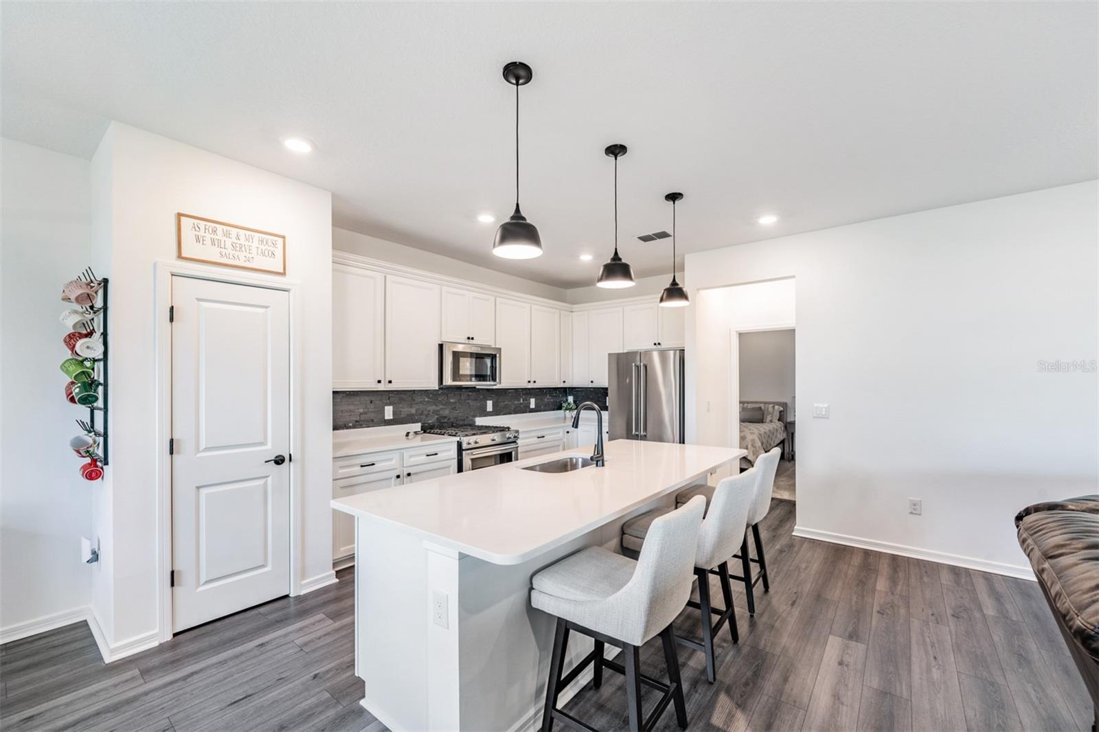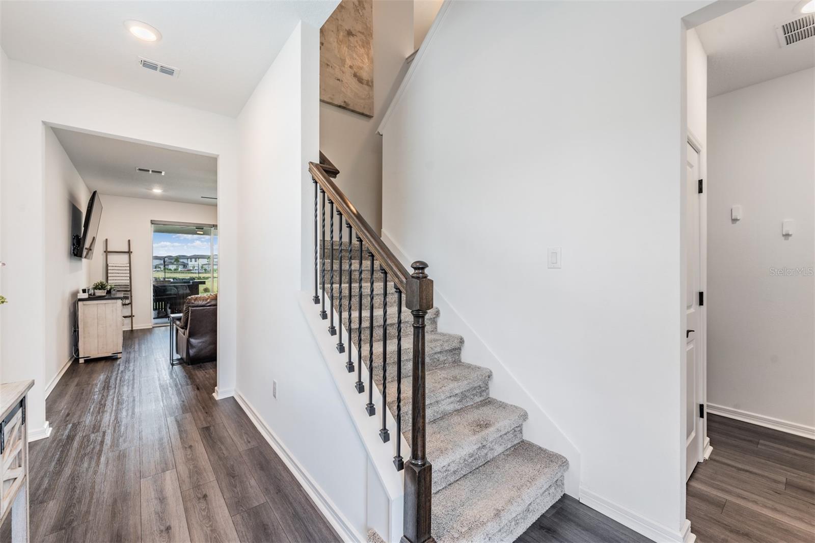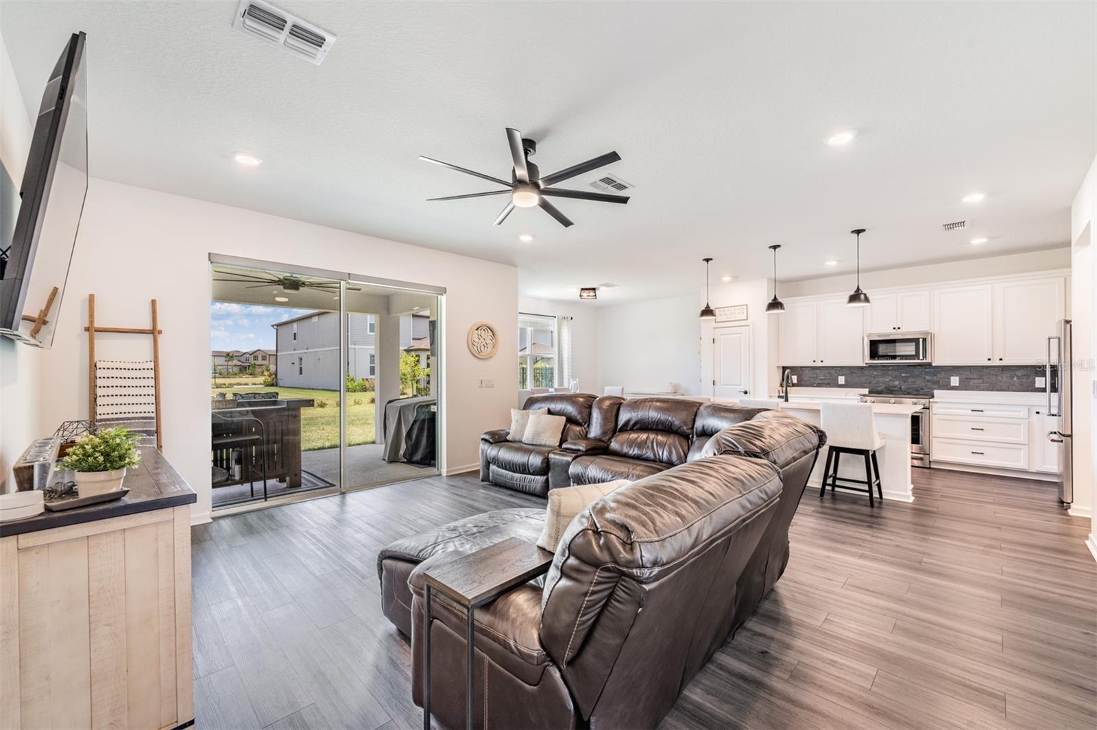 Impecavelmente conservada, como uma nova casa de 5 BR 3 banheiros na comunidade altamente desejável de Bexley. Esta casa Pulte tem uma planta baixa de conceito aberto com áreas combinadas de estar, jantar e cozinha - tons neutros em toda a casa com piso de vinil luxuoso e durável no primeiro andar. A cozinha tem uma grande ilha central, backsplash personalizado, armários de 42", fogão a gás, balcões de quartzo e eletrodomésticos de aço inoxidável. Há um quarto com banheiro convenientemente localizado no primeiro andar. No andar de cima fica a suíte master com amplo closet. no chuveiro, pias duplas e um closet Os 3 quartos restantes são de tamanho generoso. Uma espaçosa área de loft no centro é ótima para um espaço de escritório ou para momentos em família. Desfrute de cozinhar sob a varanda coberta com vista para um dos parques comunitários. Este bairro tem muitas comodidades, como várias piscinas, uma academia, um café, um parque infantil, um parque para cães, um parque de BMX, trilhas, campos esportivos e o novo. Bexley Hub. Venha conhecer uma das comunidades mais procuradas de Tampa!