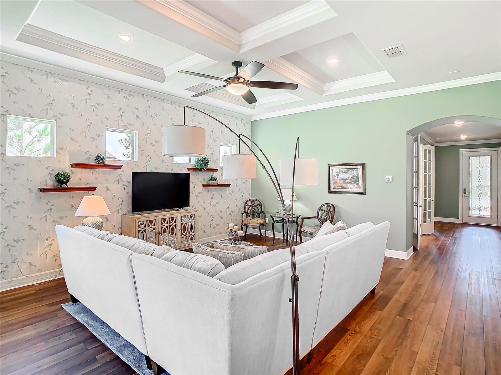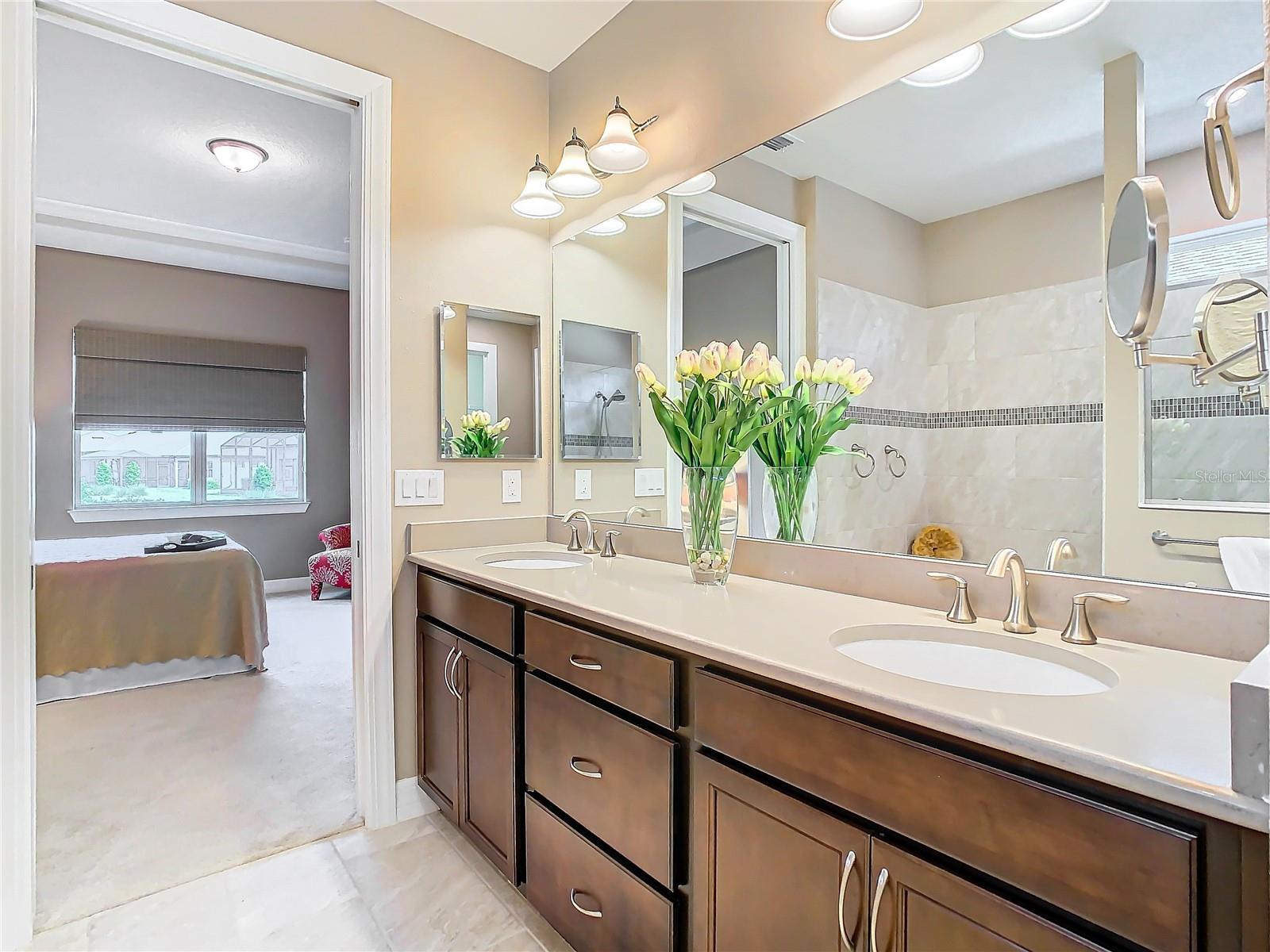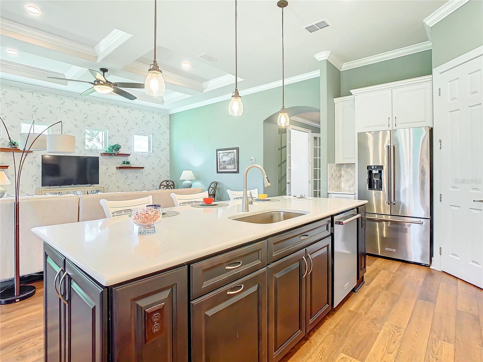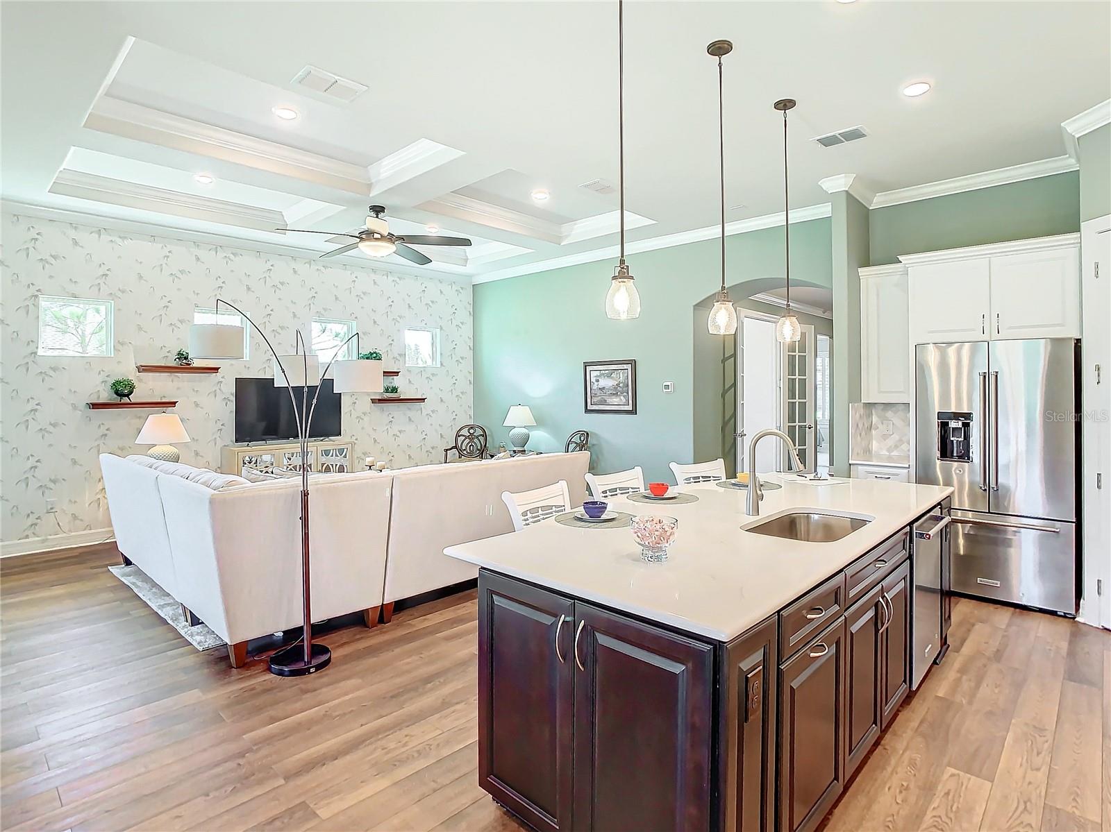 Bem-vindo à casa dos seus sonhos! Esta deslumbrante residência de 3 QUARTOS e 2 banheiros tem um escritório/espaço flexível e fica em um cobiçado LOTE DE CANTO na cobiçada comunidade de mais de 55 anos Del Webb Bexley. Você vai se apaixonar por esta casa lindamente projetada, SEM MANUTENÇÃO e com uma pitoresca VISTA PARA A ÁGUA. Observe a entrada pavimentada, o gramado exuberante e bem cuidado profissionalmente e a bela folhagem. A porta decorativa de vidro dá as boas-vindas ao grande hall de entrada. Os TETOS elevados de quase 11 PÉS atraem seus olhos para a área da sala de estar, adornada com sancas. O interior foi cuidadosamente projetado com acabamentos elegantes, incluindo luxuoso piso de pranchas de vinil, portas internas de 2,5 metros que melhoram a sensação de espaço, quatro janelas de clerestório que trazem luz natural e um alto teto em caixotões. A cozinha gourmet é equipada com eletrodomésticos Kitchen Aid de aço inoxidável, com forno e micro-ondas embutidos, armários escalonados, ilha estendida e bancadas de quartzo reluzentes. Esta cozinha foi projetada para estilo e funcionalidade. O backsplash atualizado e o luxuoso piso de vinil completam o visual moderno. Aproveite a serena VISTA DO LAGO em sua área de jantar ou passe pelas portas deslizantes até a varanda com tela - perfeita para relaxar ou se divertir. A suíte principal é um verdadeiro retiro, com banheiro privativo com SUPER CHUVEIRO DE ENTRADA ZERO, pias duplas com bancada de quartzo e vaso sanitário privativo. Dois quartos adicionais compartilham um banheiro secundário lindamente decorado com piso de cerâmica, uma penteadeira espelhada e uma combinação de banheira/chuveiro. Não perca o ESCRITÓRIO com portas francesas perto da frente da casa! A funcionalidade encontra a elegância na lavanderia extragrande, equipada com amplos armários, pia e piso cerâmico. Outras atualizações incluem o pacote de energia com bloco cheio de espuma, barreira radiante e sensor/filtro de luz azul AC, sistema de filtragem de água para toda a casa e aquecedor de água a gás sem tanque. Existe uma garantia ativa contra cupins que é transferível. Esta casa não é apenas um lugar para morar, é uma tela para o seu novo e vibrante estilo de vida! As comodidades da comunidade são incomparáveis, com piscina estilo resort, piscina de resistência, piscina olímpica, banheira de hidromassagem e cabanas. O clube de última geração de 19.000 pés quadrados inclui um bar de cerveja e vinho, um café/bistrô e um lounge com lareira ao ar livre. Os residentes ativos desfrutam de quadras de tênis e pickleball, academia, salas de clube/artesanato e um parque para cães para seus amigos peludos. Esta é uma comunidade vibrante que oferece uma ampla gama de atividades sociais e recreativas, organizadas por um diretor de atividades em tempo integral. Confira as fotos! Tudo isso próximo a serviços de saúde, lojas, restaurantes e ao aeroporto internacional de Tampa. Agende uma visita hoje e torne esta casa excepcional sua.