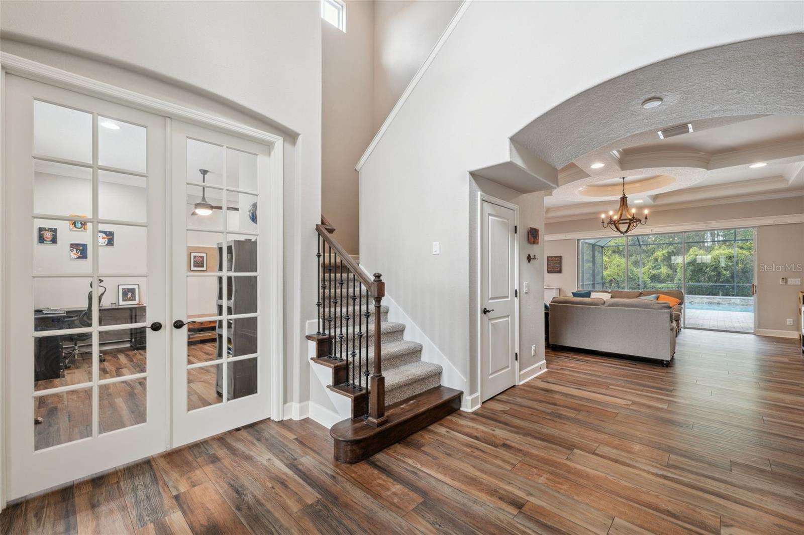 A vida em estilo resort encontra o luxo do dia a dia, e esta deslumbrante casa da Taylor Morrison oferece a combinação perfeita de espaço e elegância. Com 4 quartos, 3 banheiros e meio e um escritório, esta casa de conceito aberto é o estilo de vida da Flórida que você está procurando. Seu próprio oásis particular: uma piscina aquecida de água salgada com cascatas, um banco de areia e um spa borbulhante. Lindo porcelanato italiano em toda a casa. A cozinha gourmet a gás natural possui eletrodomésticos de última geração, muitos armários e uma enorme ilha de granito, criando um paraíso para os chefs. Janelas circundam a sala de jantar. A grande sala é iluminada e arejada, com tetos em caixotões de 10 pés de altura, som surround e portas de vidro deslizantes que levam à piscina de ladrilhos. Refugiar-se em sua tranquila suíte primária é uma alegria. A luz solar é filtrada pelas janelas em arco. Espaço para todo o seu guarda-roupa nos dois closets. Deleite-se na banheira de imersão ou desfrute de uma chuva relaxante no chuveiro de azulejos. Esta casa oferece um bônus raro: a sala polivalente no andar de cima. Aqui estão algumas idéias: um centro de mídia, sala de jogos ou escritório. Além disso, no segundo andar, você tem mais uma suíte, mais dois quartos e a terceira casa de banho completa. Vamos sair e caminhar pelo terreno cercado. A espaçosa varanda coberta é pré-instalada e conectada para uma cozinha ao ar livre. Um deck pavimentado circunda a piscina mais luxuosa. Um banco de areia para se refrescar ao tomar sol, uma cachoeira e uma fonte que emana do spa, água salgada para reduzir a necessidade de produtos químicos agressivos e é aquecido para que você fique confortável o ano todo. Esta casa foi meticulosamente mantida, com ambos os sistemas AC recentemente substituídos por unidades atualizadas; o exterior foi totalmente repintado e vem com garantia total, e carpetes de grife foram instalados recentemente. A propriedade está situada em um lote de conservação premium (sem vizinhos traseiros) dentro do condomínio fechado de Gardenia Glen, adicionando uma camada extra de privacidade e segurança à sua experiência de vida. O HOA fornece manutenção paisagística/gramado. Além dos limites do seu belo oásis, Connerton Village convida você a desfrutar de um estilo de vida comunitário vibrante. Mergulhe nas águas refrescantes da piscina comunitária, explore o exuberante parque com jardins ou passeie pelas diversas trilhas. Connerton Village também oferece lagos multiuso onde você pode praticar atividades não motorizadas, promovendo um sentimento de conexão com a natureza. Você merece viver no paraíso!