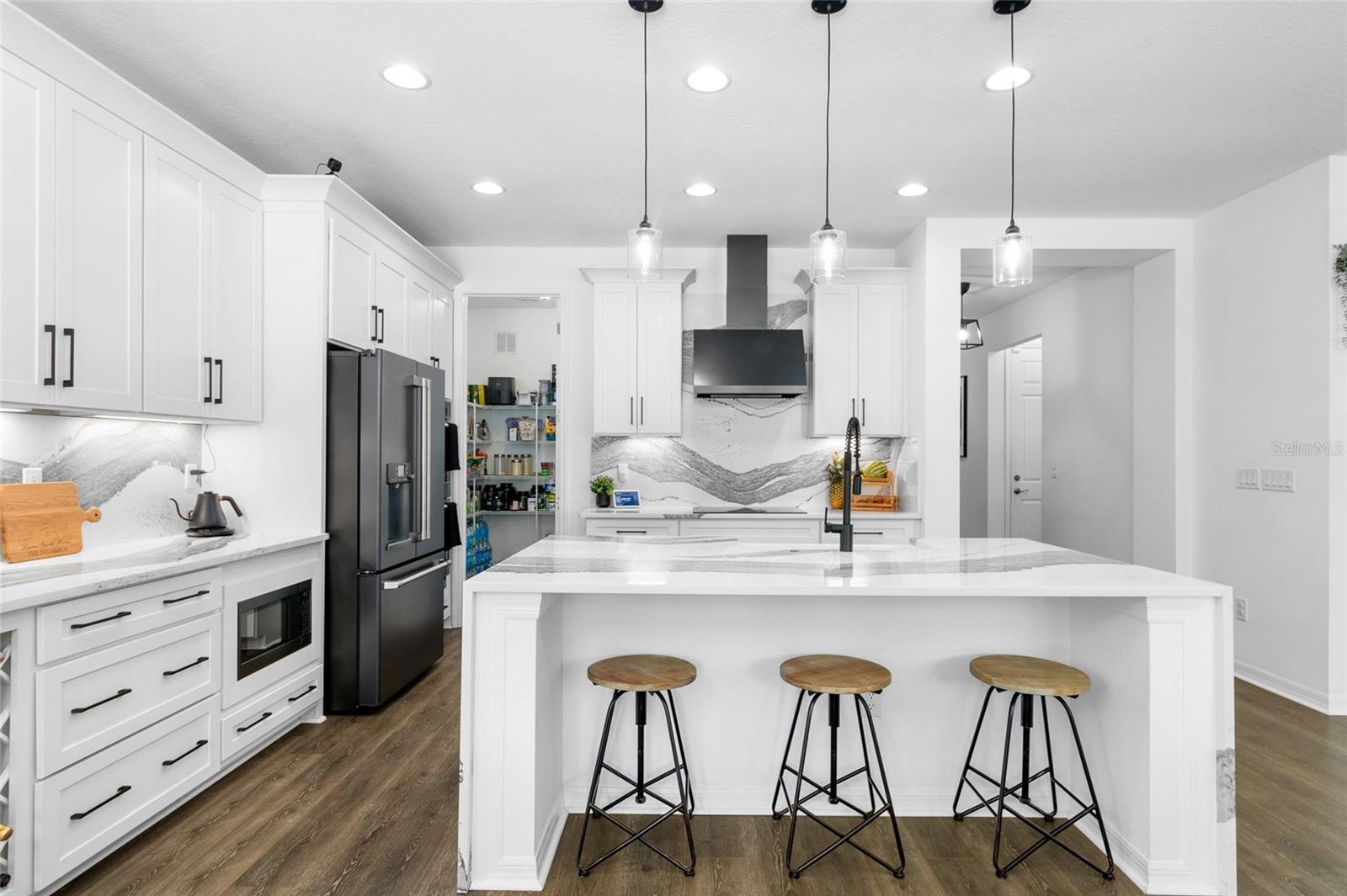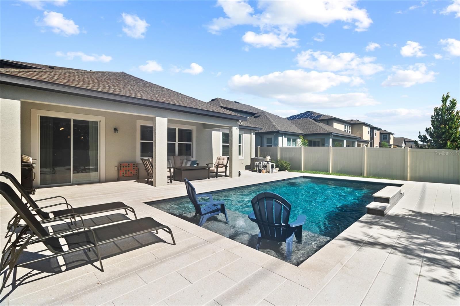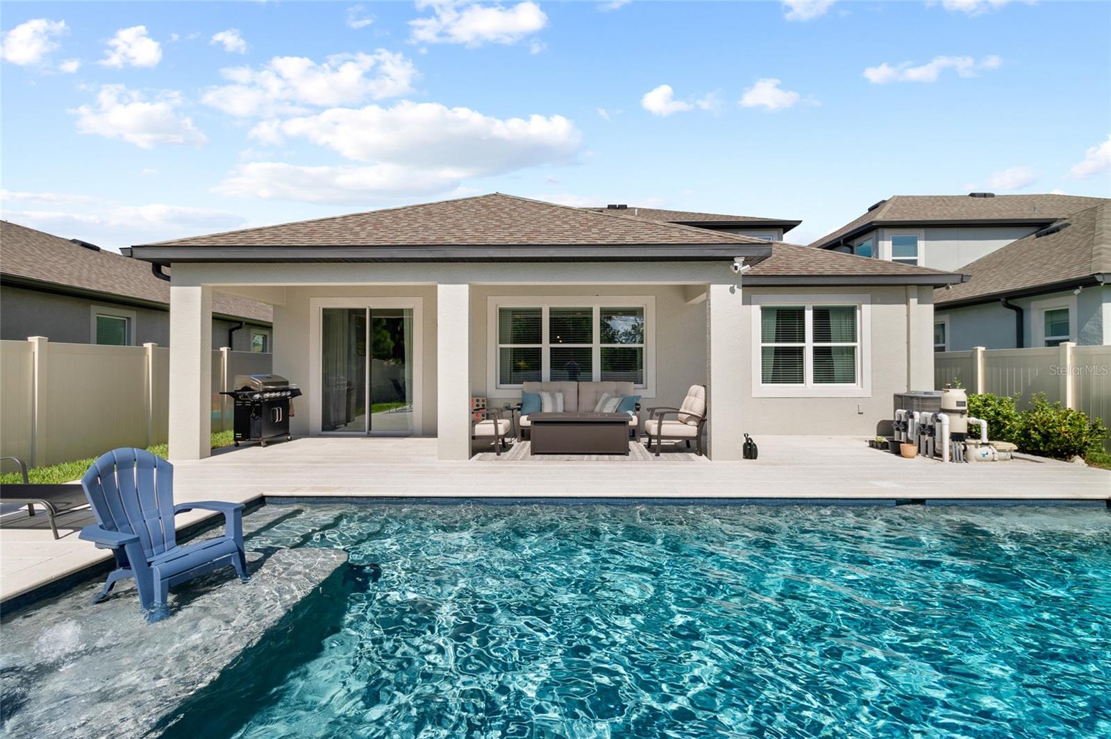 Bem-vindo à Avenida Gulf Cypress, 7026! Casa moderna de 4 quartos com piscina e recursos inteligentes em Land O' Lakes. Experimente sofisticação incomparável e luxo moderno nesta magnífica residência de 2 andares, meticulosamente construída em 2022. Situada na cobiçada comunidade de Land O' Lakes, esta casa de 4 quartos e 2,5 banheiros abrange 2.854 pés quadrados de espaço refinado projetado para elevar seu estilo de vida. A ampla planta baixa é complementada por um grande hall de entrada, áreas de estar formais e informais e um espaço de escritório versátil - tudo elaborado com extrema atenção aos detalhes. A grande área do loft proporciona um cenário ideal para relaxamento ou entretenimento. A cozinha dos sonhos do chef! Este paraíso culinário apresenta elegantes aparelhos inteligentes Cafe GE de aço inoxidável com carvão fosco, incluindo lava-louças, geladeira, forno duplo e micro-ondas. A cozinha é adornada com elegantes bancadas de quartzo e um impressionante backsplash de quartzo em toda a parede, enquanto a ilha, com uma dramática borda de quartzo em cascata, é uma peça central de estilo e funcionalidade. Retire-se para o banheiro principal, um santuário sereno com pias duplas e um chuveiro vertical acompanhado por um chuveiro com cascata e um chuveiro removível, adornado com um suntuoso piso de pedra. Aproveite a tecnologia de ponta com um amaciante de água totalmente novo e eletrodomésticos inteligentes em toda a casa, incluindo lavadora e secadora LG na lavanderia dedicada. Saia para descobrir uma piscina recém-instalada, ideal para relaxamento e entretenimento. O espaço ao ar livre é aprimorado pela opção de incluir móveis de exterior elegantes por um adicional de US$ 1.500, garantindo uma transição perfeita da vida interna para a externa. Esta casa é uma mistura harmoniosa de comodidades modernas e elegância clássica, perfeitamente projetada para proprietários exigentes que buscam luxo e praticidade. Existem também câmeras de segurança ADT na cabeceira e também na parte traseira da propriedade que acompanham esta bela casa.